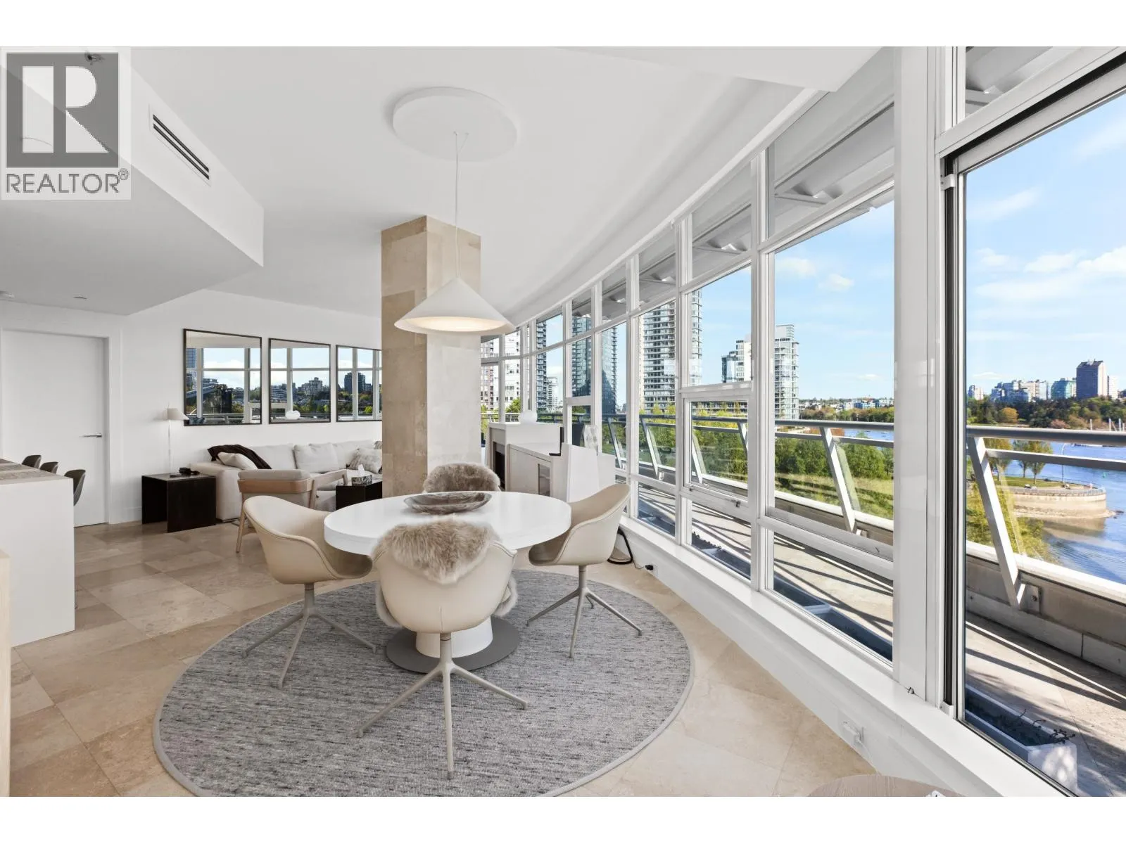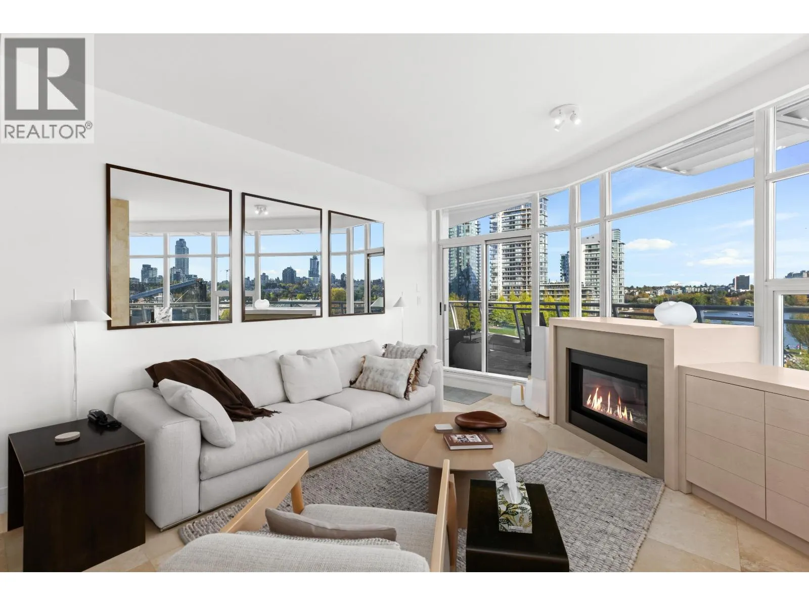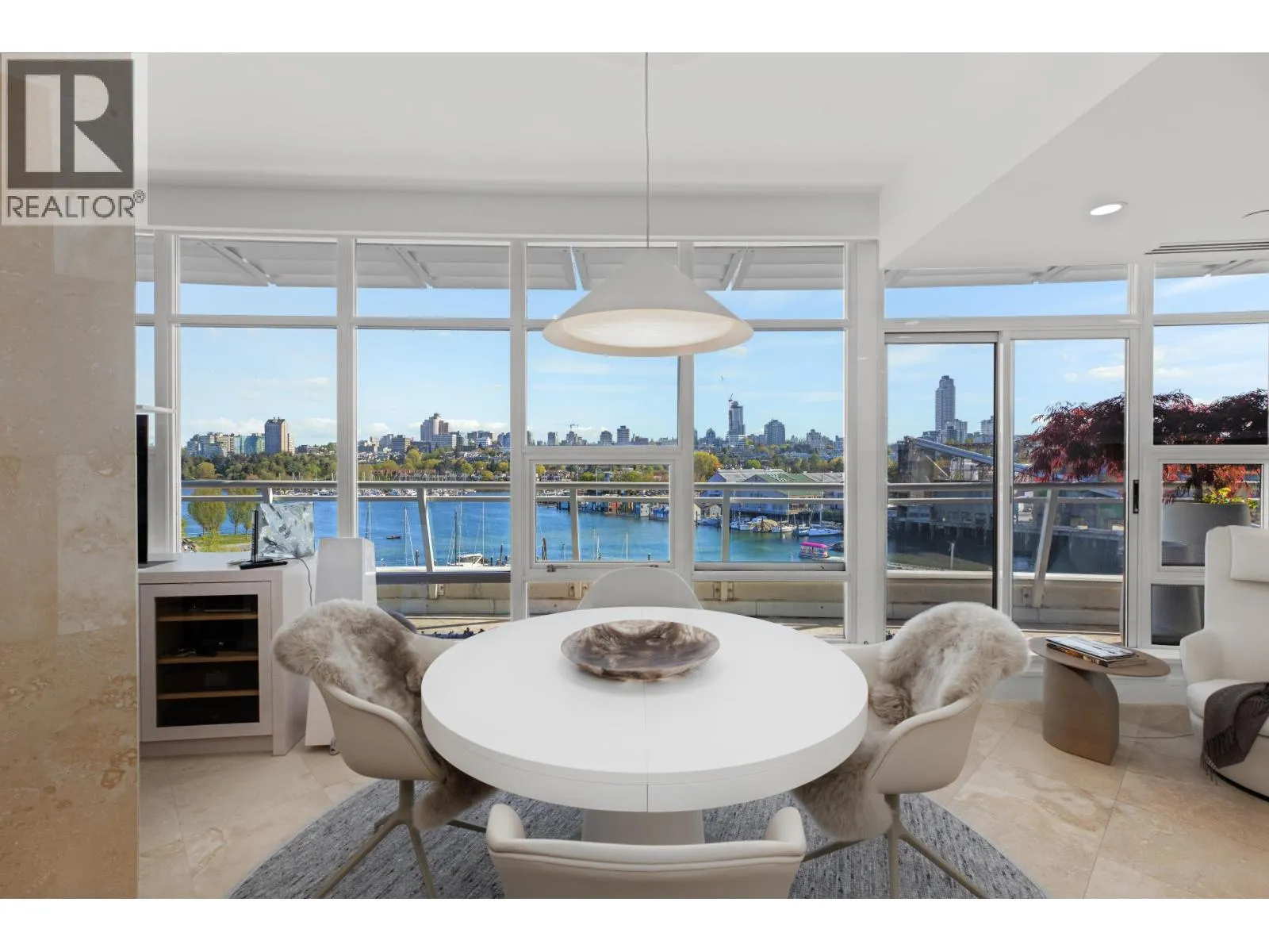 Exclusive waterfront residence at The Silver Sea, a boutique concrete building with only 31 private homes. This almost 1800 sq.ft. corner suite offers 3 bedrooms, 3 bathrooms, and panoramic views of the ocean, marina, Granville Island, and False Creek. Extensively customized with limestone floors, Lutron lighting, gas fireplace with powered TV lift beside, and powered blinds. The newly renovated kitchen features Caesarstone counters, top tier Miele appliances, walk-in pantry, and a 5-burner gas cooktop. Enjoy a spacious terrace with built-in fire pit. With private elevator access, 2 parking with EV, locker and amazing amenities all add to make this the down-sizers dream. A truly rare opportunity for serene urban waterfront living steps from the seawall and all that Yaletown offers. (id:27476)
