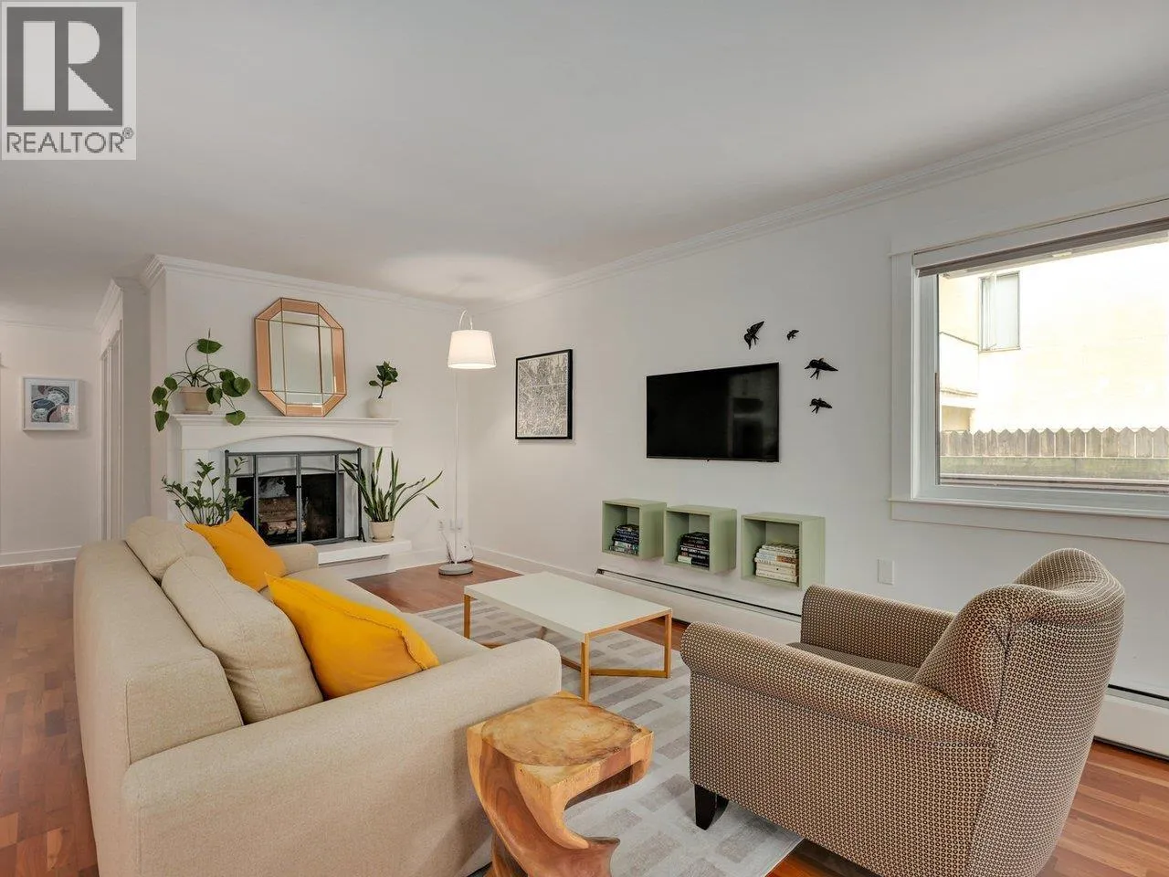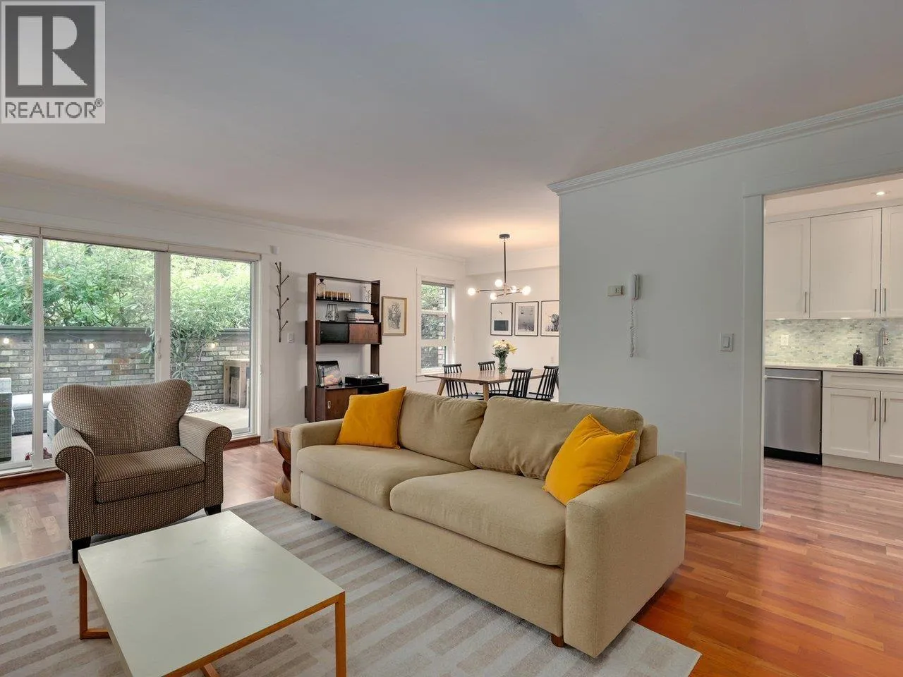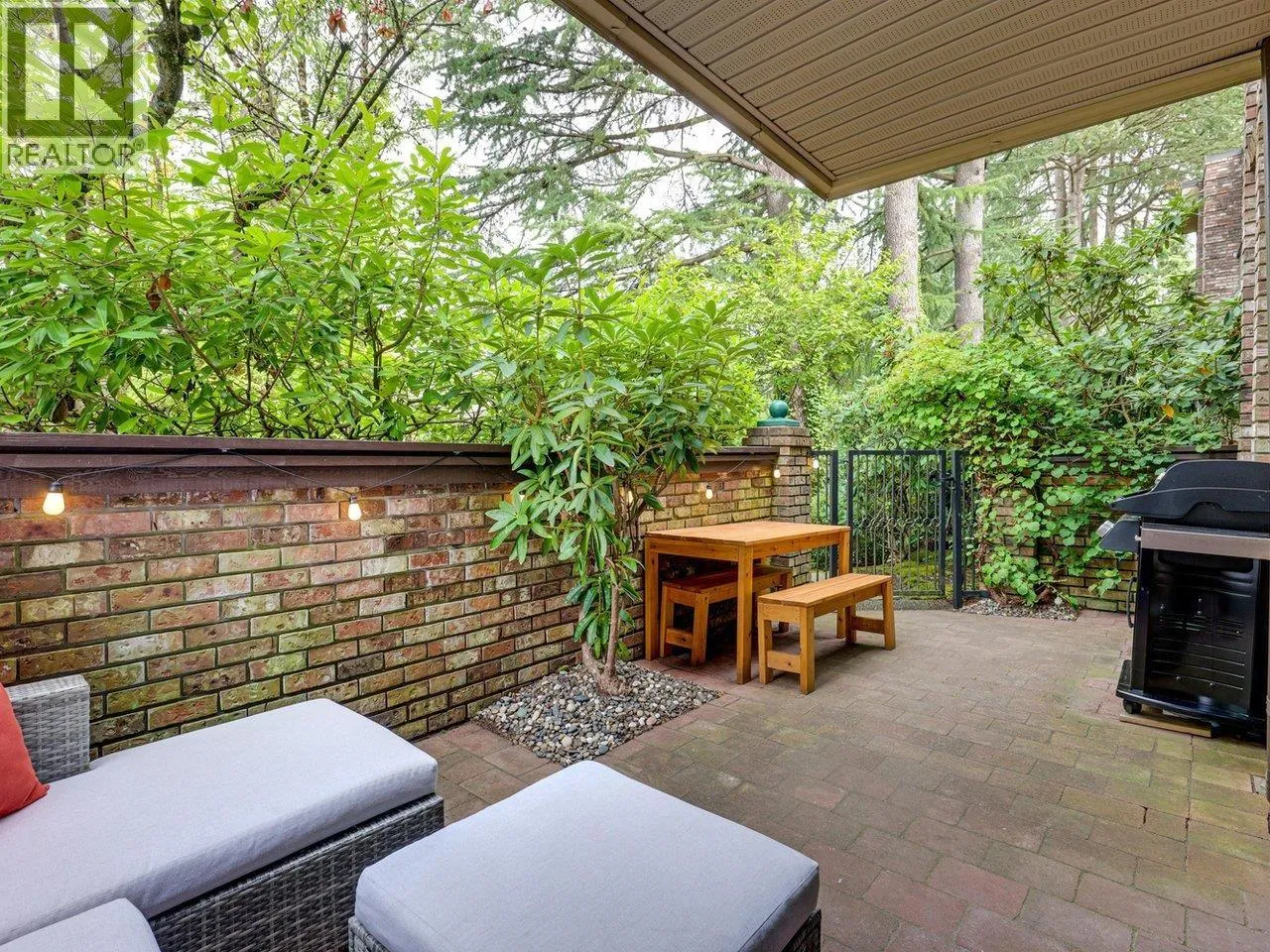 Private garden-level corner unit at the Landmark Shaughnessy. Renovated 2-bed, 2-bath home offers 1,132 sq.ft. of functional living space and a rare huge private patio with gated entry. Spacious living and dining area anchored by a wood-burning fireplace. Kitchen and bathrooms have been fully renovated. New hardwood flooring in both bedrooms (2024). Primary bedroom is exceptionally large-ideal as a serene retreat or a combined bedroom/home office. Custom closets throughout provide exceptional storage. Well-managed building with extensive updates: new windows (2024), re-piping (2021), and membrane projects (2017/2020). Set on a quiet, tree-lined street, you´re just a 5-minute walk to Granville's shops and restaurants, and a 10-minute walk to the upcoming Broadway Line Skytrain. School catchments: Emily Carr Elementary & Eric Hamber Secondary. Comes with secured parking and storage. This spectacular home is perfect for down-sizers, families, or anyone seeking a blend of space, style, and convenience. (id:27476)