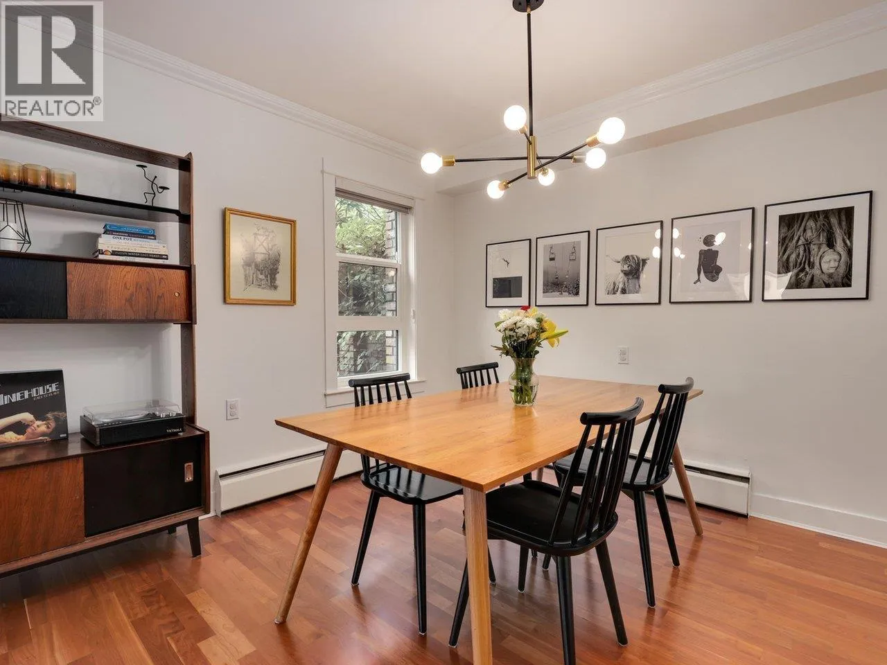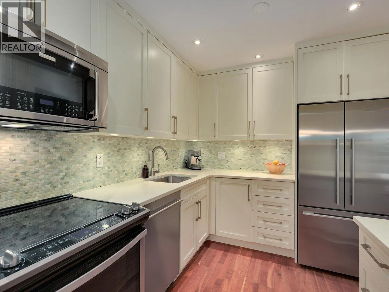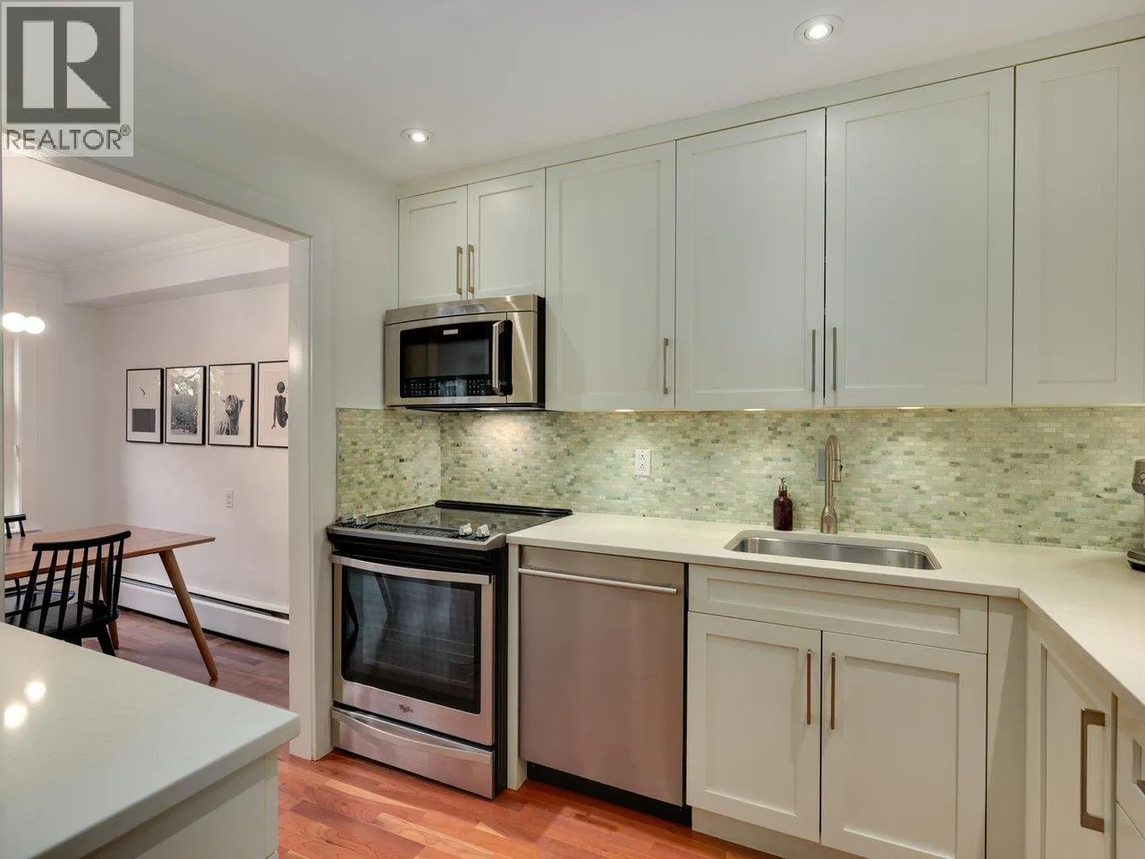 Private garden-level corner unit at the Landmark Shaughnessy. Renovated 2-bed, 2-bath home offers 1,132 sq.ft. of functional living space and a rare huge private patio with gated entry. Spacious living and dining area anchored by a wood-burning fireplace. Kitchen and bathrooms have been fully renovated. New hardwood flooring in both bedrooms (2024). Primary bedroom is exceptionally large-ideal as a serene retreat or a combined bedroom/home office. Custom closets throughout provide exceptional storage. Well-managed building with extensive updates: new windows (2024), re-piping (2021), and membrane projects (2017/2020). Set on a quiet, tree-lined street, you´re just a 5-minute walk to Granville's shops and restaurants, and a 10-minute walk to the upcoming Broadway Line Skytrain. School catchments: Emily Carr Elementary & Eric Hamber Secondary. Comes with secured parking and storage. This spectacular home is perfect for down-sizers, families, or anyone seeking a blend of space, style, and convenience. (id:27476)