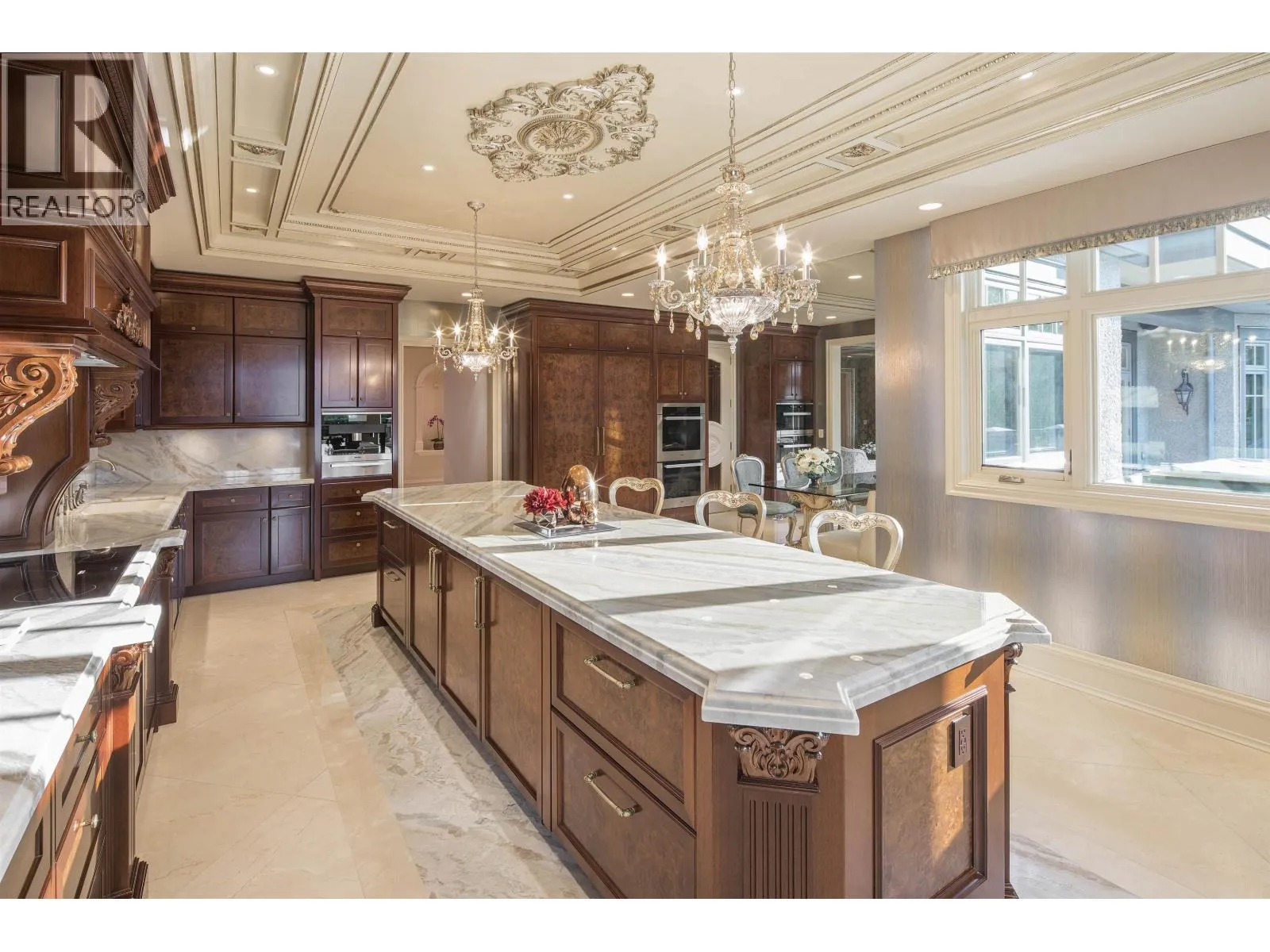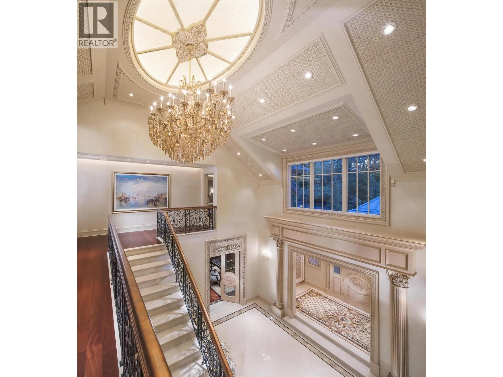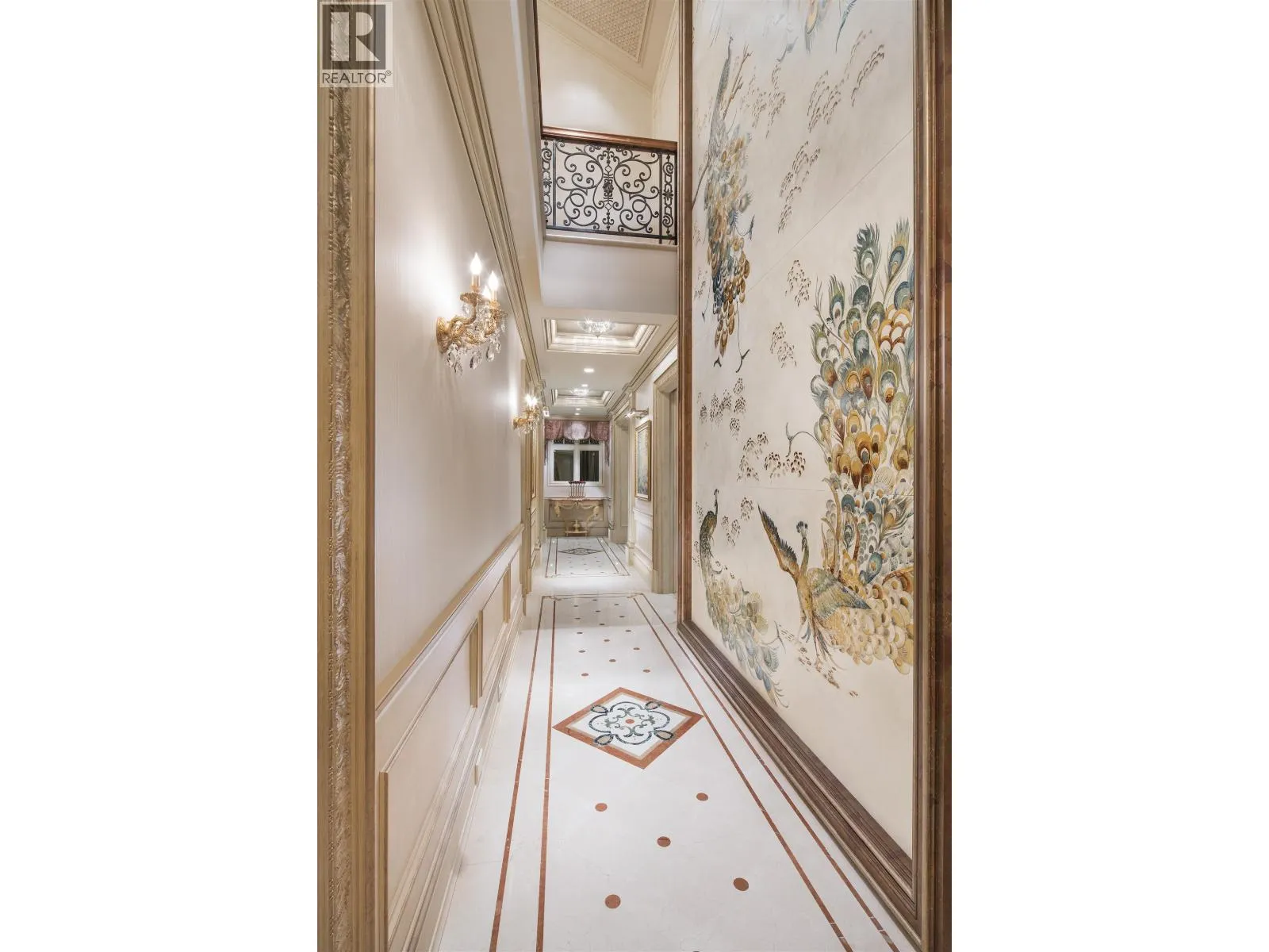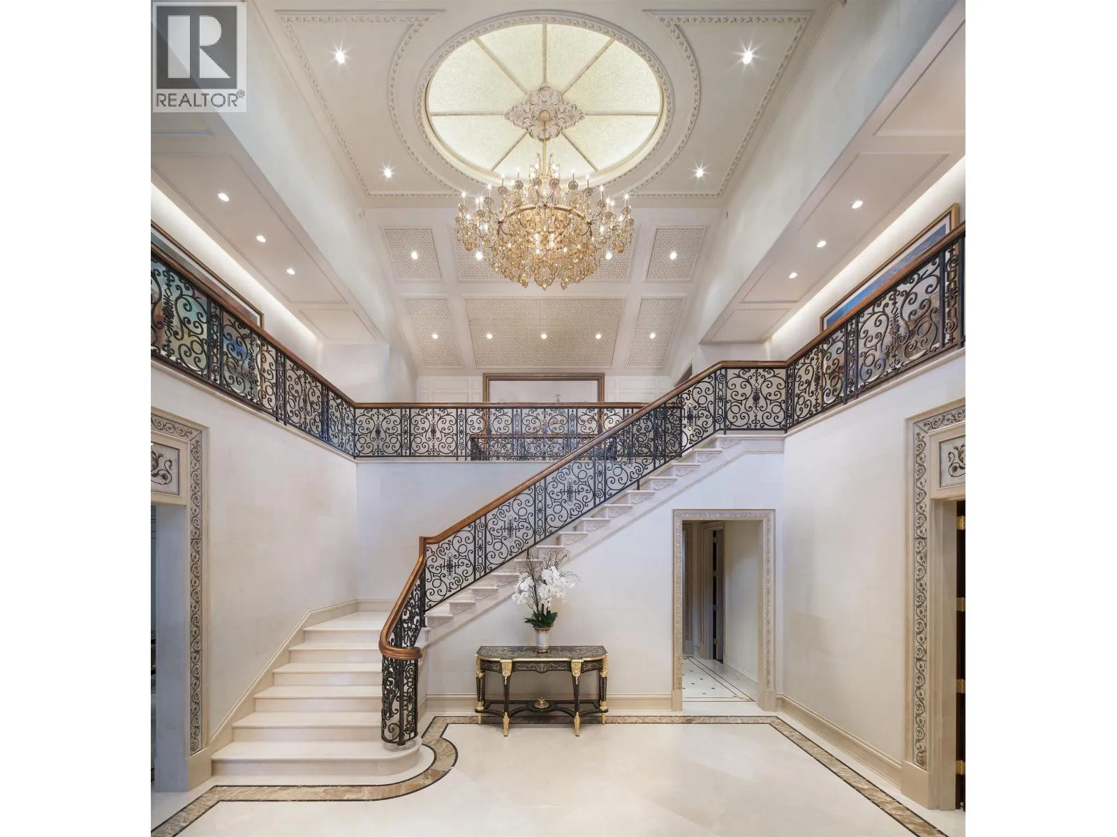 Le Château Versaille d'Angus. Epitome WOW-factor 11670sf 7yr PALACE on 100x264=26400sf VIEW lot on best street in 1st Shaughnessy. Awe-inspiring 2x-height foyer with majestic marble stairs. Award winning opulent grand classic masterpiece intricately carved by Bela Constr & Carol Fann Int'rs. Extensive use of elegant marble floors with inlay accents, dramatic Birds-Eye walnut burl, beautiful mural paintings, back-painted glass panels, gold-leaf wainscotting accents, impeccable workmanship by only the best master finishers. Well-appointed chef kitchen opens to 1500sf concrete terrace & covered porch perfectly positioned to enjoy fireworks & scenic mt. views. 4 bdrms up, master suite boasts mtn views & Roman-Spa. 400sf movie theatre plus indoor 50' lap pool. Elevator. World class trophy prpty. (id:27476)