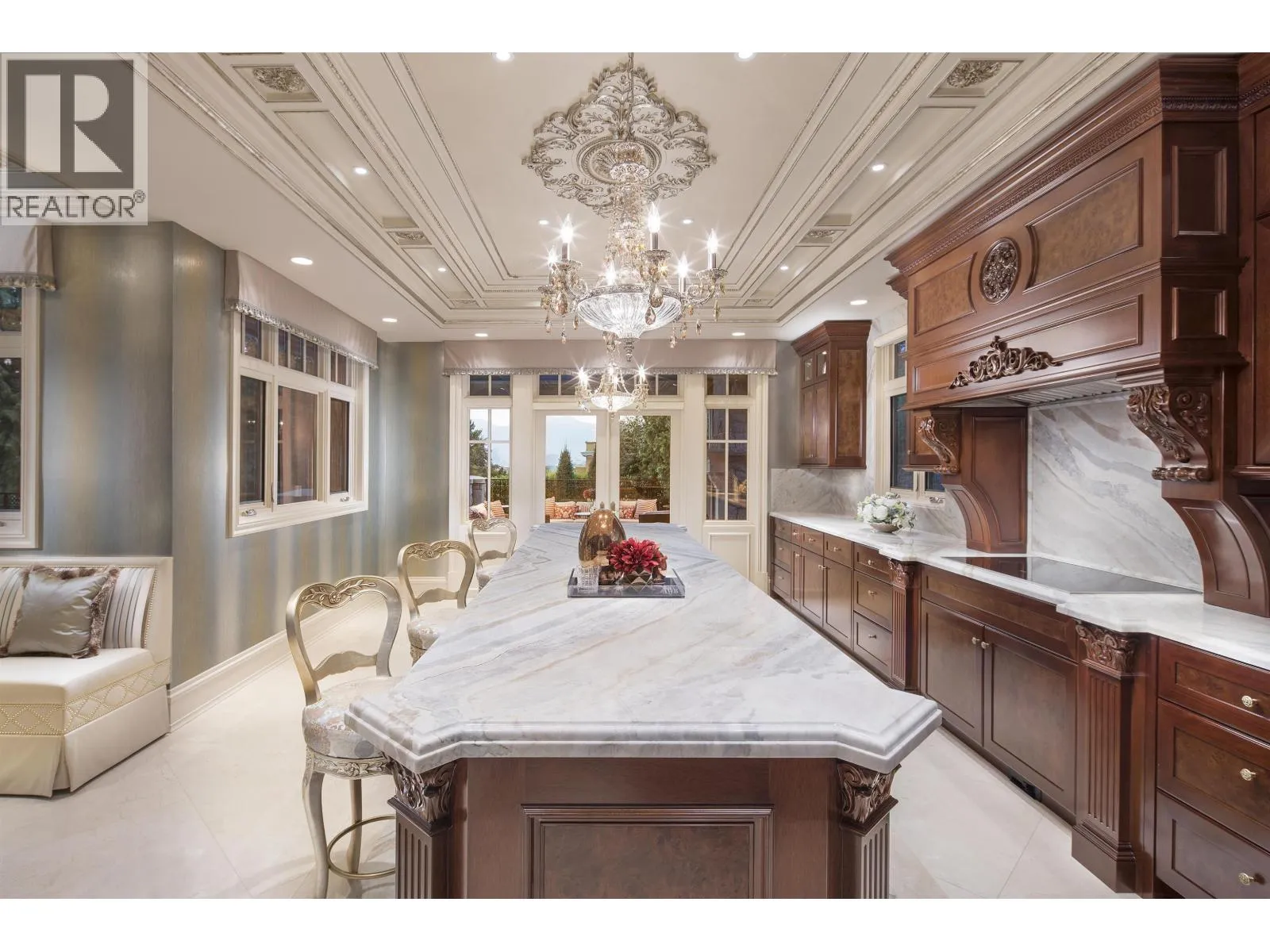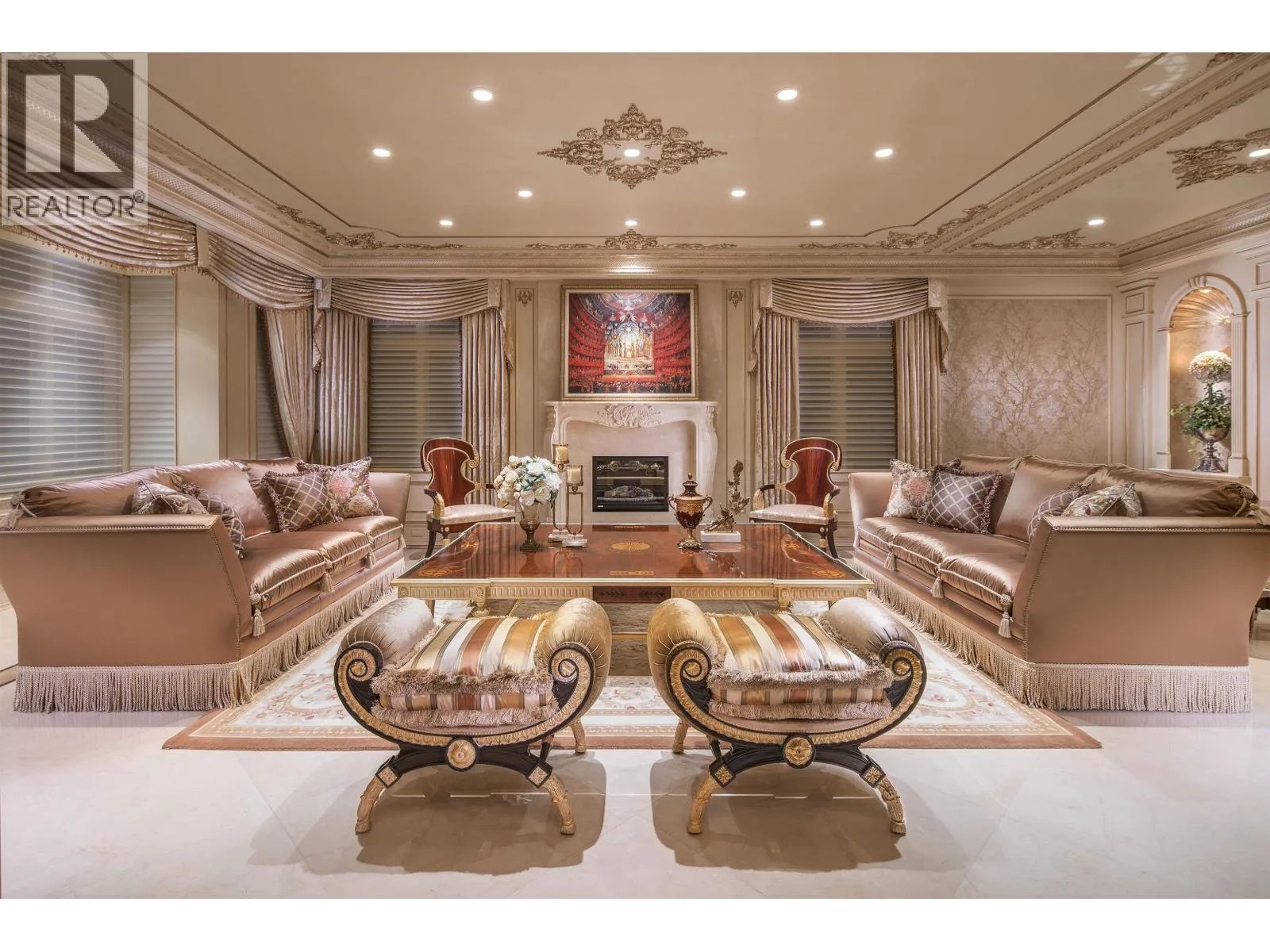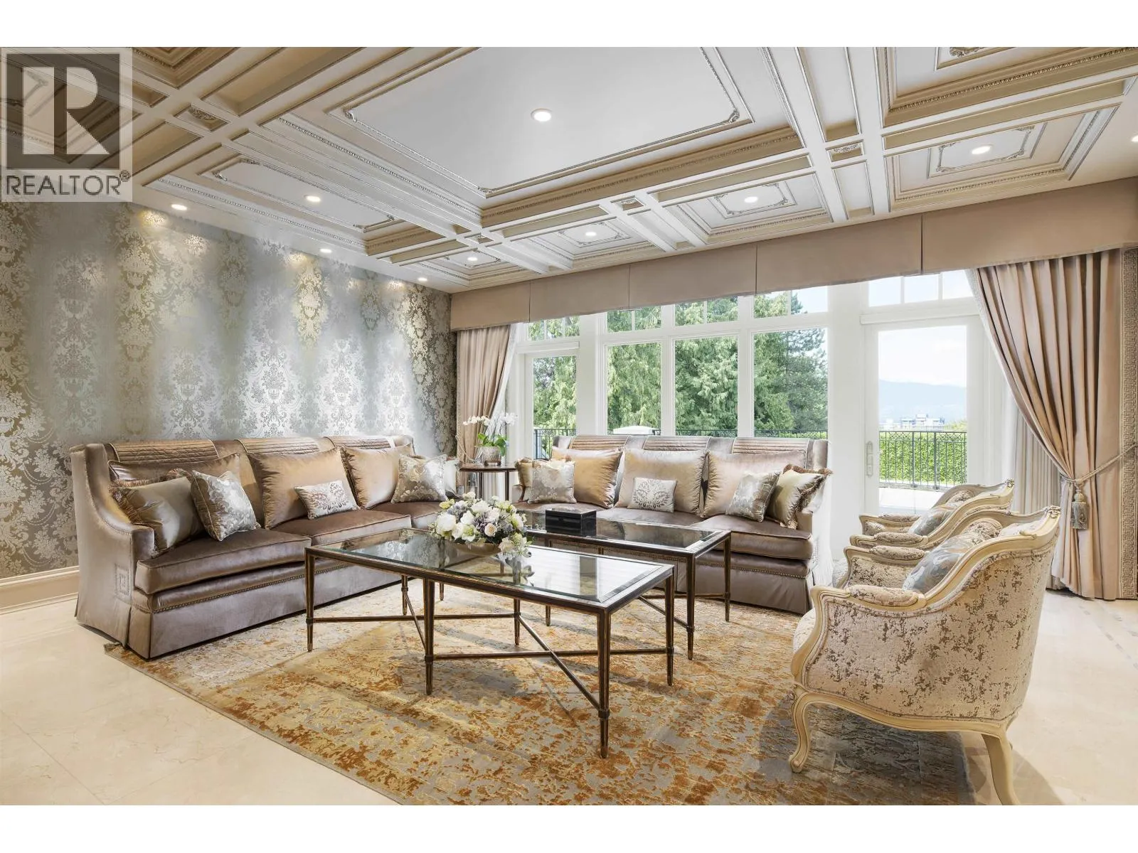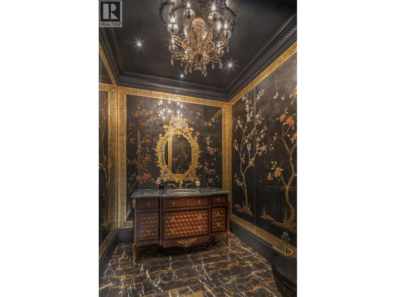 Le Château Versaille d'Angus. Epitome WOW-factor 11670sf 7yr PALACE on 100x264=26400sf VIEW lot on best street in 1st Shaughnessy. Awe-inspiring 2x-height foyer with majestic marble stairs. Award winning opulent grand classic masterpiece intricately carved by Bela Constr & Carol Fann Int'rs. Extensive use of elegant marble floors with inlay accents, dramatic Birds-Eye walnut burl, beautiful mural paintings, back-painted glass panels, gold-leaf wainscotting accents, impeccable workmanship by only the best master finishers. Well-appointed chef kitchen opens to 1500sf concrete terrace & covered porch perfectly positioned to enjoy fireworks & scenic mt. views. 4 bdrms up, master suite boasts mtn views & Roman-Spa. 400sf movie theatre plus indoor 50' lap pool. Elevator. World class trophy prpty. (id:27476)