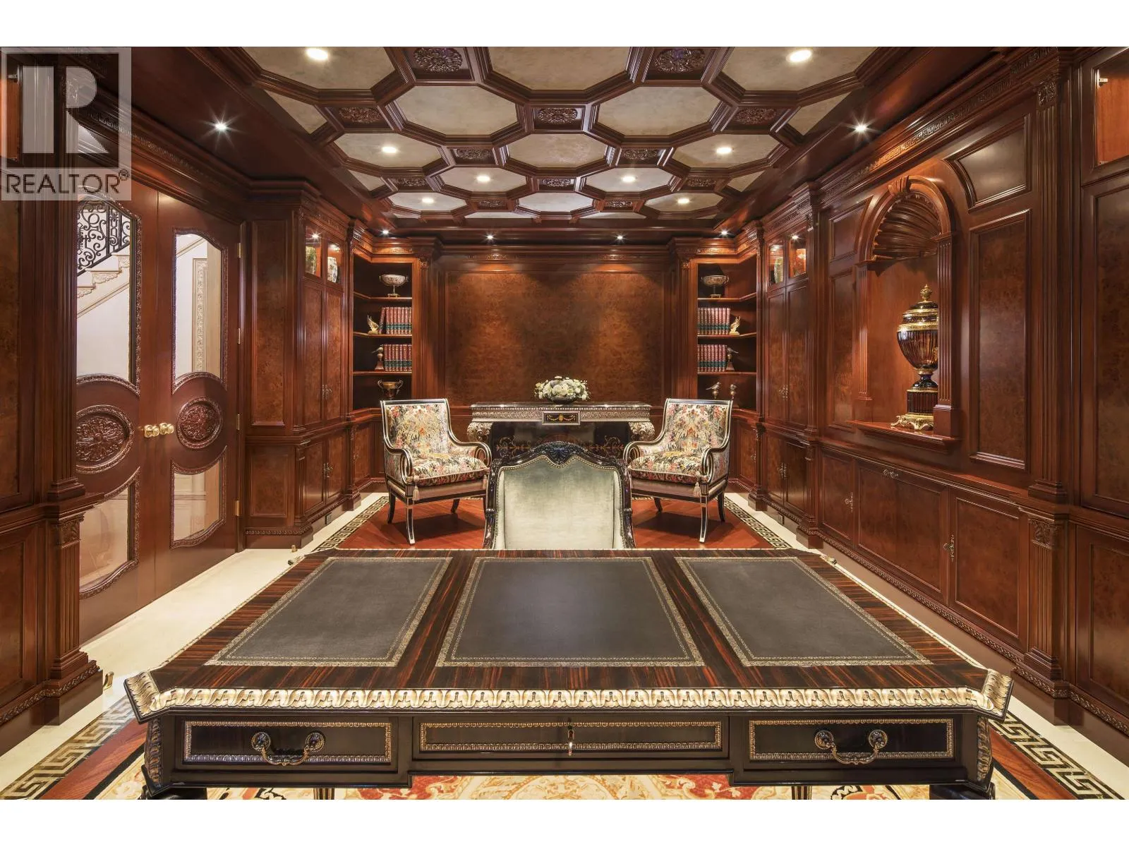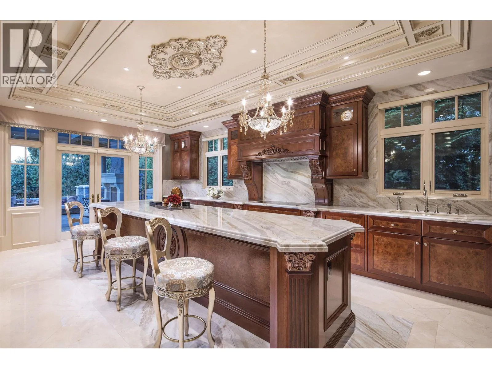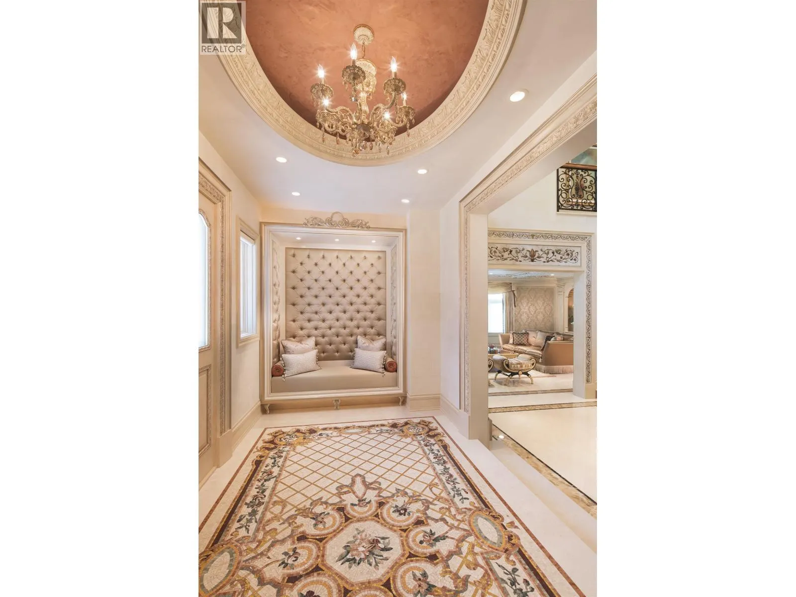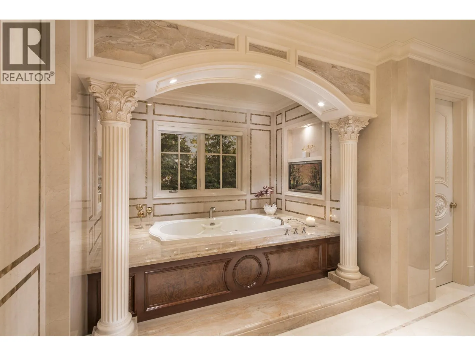 Le Château Versaille d'Angus. Epitome WOW-factor 11670sf 7yr PALACE on 100x264=26400sf VIEW lot on best street in 1st Shaughnessy. Awe-inspiring 2x-height foyer with majestic marble stairs. Award winning opulent grand classic masterpiece intricately carved by Bela Constr & Carol Fann Int'rs. Extensive use of elegant marble floors with inlay accents, dramatic Birds-Eye walnut burl, beautiful mural paintings, back-painted glass panels, gold-leaf wainscotting accents, impeccable workmanship by only the best master finishers. Well-appointed chef kitchen opens to 1500sf concrete terrace & covered porch perfectly positioned to enjoy fireworks & scenic mt. views. 4 bdrms up, master suite boasts mtn views & Roman-Spa. 400sf movie theatre plus indoor 50' lap pool. Elevator. World class trophy prpty. (id:27476)
