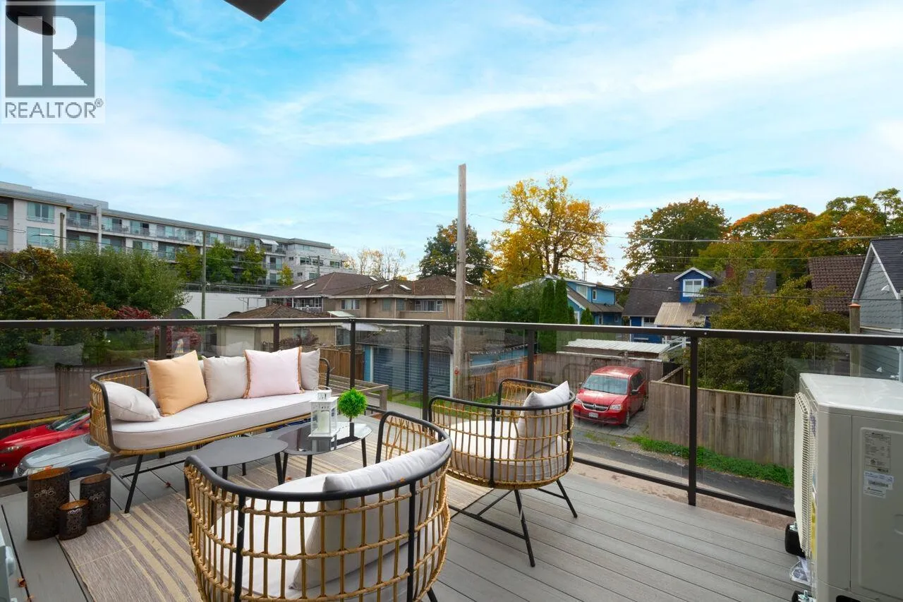 The Christie Residences at 17th & Quebec. Designed by WNDR Architecture and quality-built by Solaris Properties, this is the final remaining home in this boutique collection. Offering 1,636 sq.ft. of contemporary living across two levels, this spacious 3-bedroom + open den, 2.5-bath residence combines thoughtful design with modern comfort. Set on a 55-foot-wide property, the home features an expansive open-concept layout with generous living and dining areas-ideal for entertaining. Highlights include air conditioning, high-end modern finishes, and a beautiful private south-facing patio off the second level, complemented by a large outdoor yard. Located in one of Vancouver´s most sought-after neighbourhoods, you´re steps from shops, cafes, parks, and vibrant Main Street. 1 EV-ready parking stall and 3 bike spaces included. Move-in ready. (id:27476)