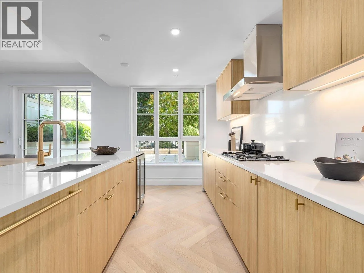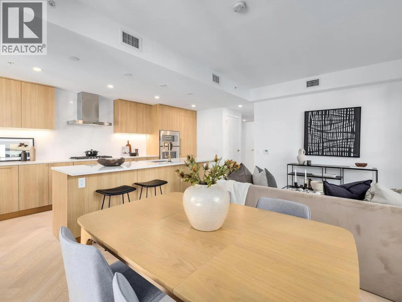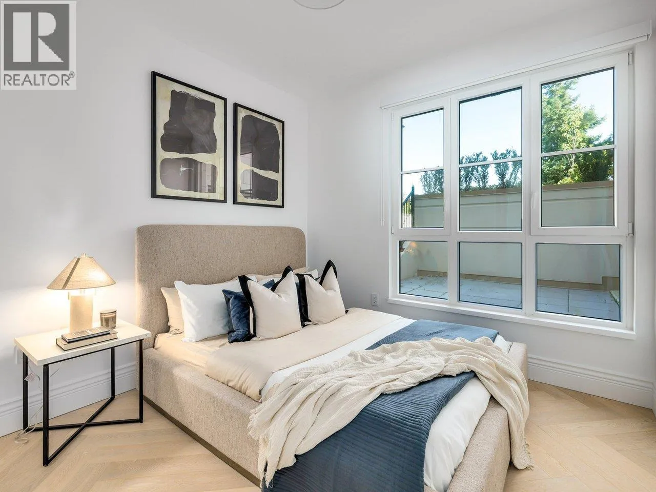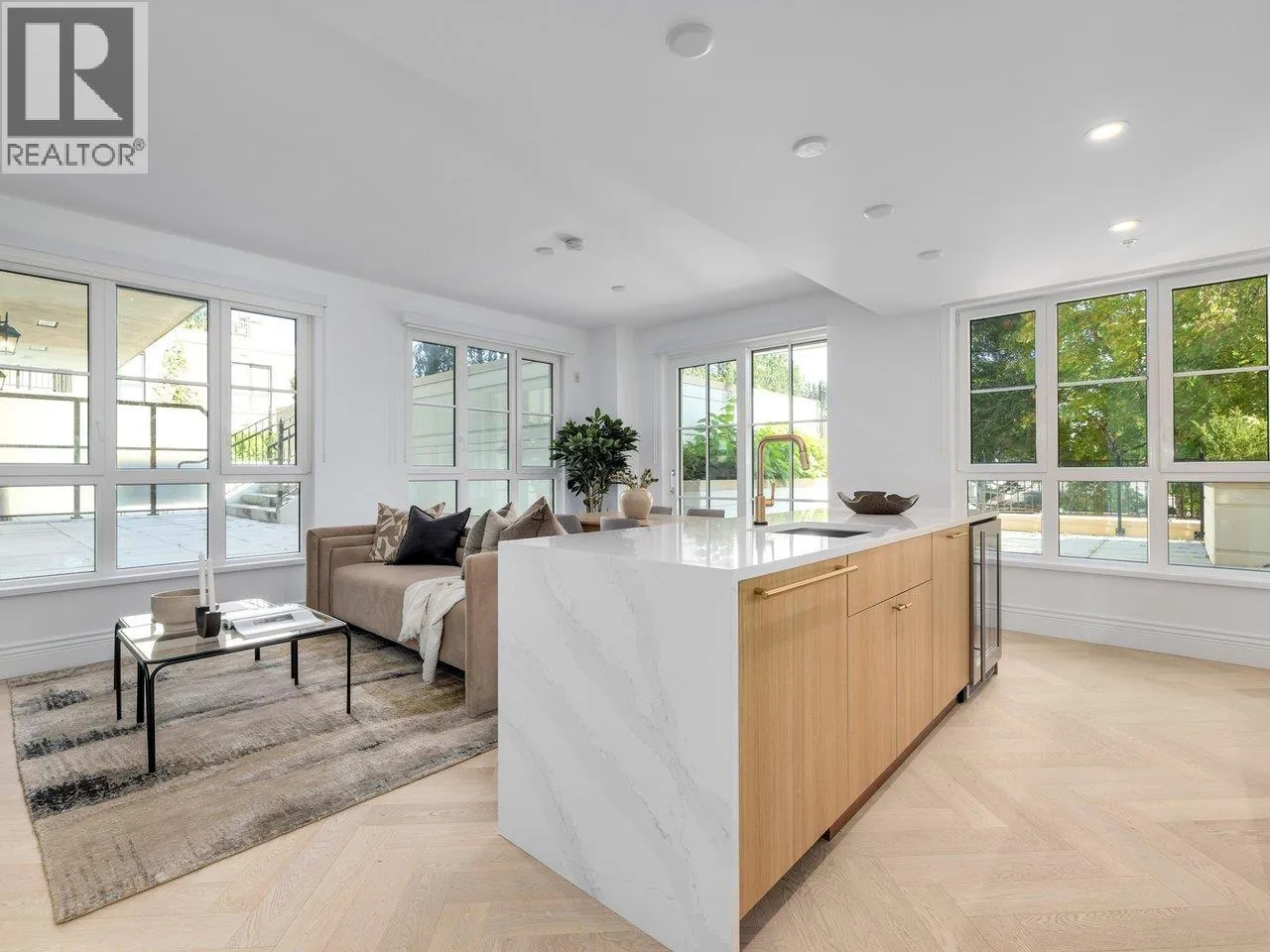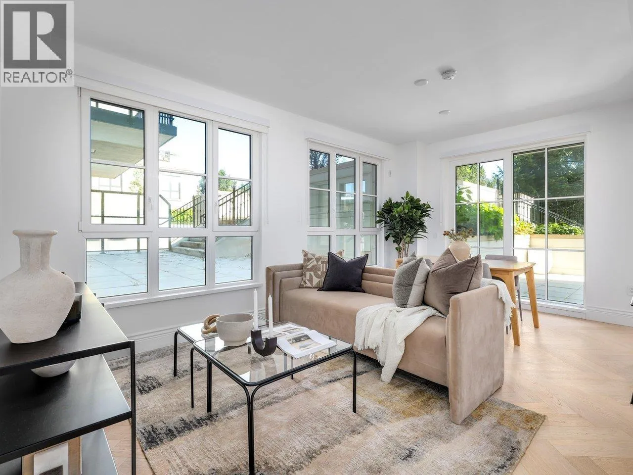 Discover Chloé in the prestigious heart of Kerrisdale. This nearly 1,200 SF 2-bedroom, 2-bath + den home is a rare find, featuring over 1,700 SF of private terrace space-perfect for outdoor living, gardening, and entertaining. Parisian-inspired interiors by CHIL Interior Design include overheight ceilings, herringbone engineered hardwood floors, Italian porcelain tile, and Gaggenau appliances. Baths boast quartz counters, Kohler sinks and fixtures, plus Nu Heat in-floor heating. Air conditioning included. NOTE THAT 2 PARKING IS INCLUDED. Quality concrete construction ensures durability, complemented by a 2-5-10 year warranty. Residents enjoy concierge, lounge, fitness studio, music room landscaped courtyard, rooftop terrace. Steps from boutique shops, cafés, parks, and top schools, offering effortless city living in a serene, historic neighborhood. (id:27476)