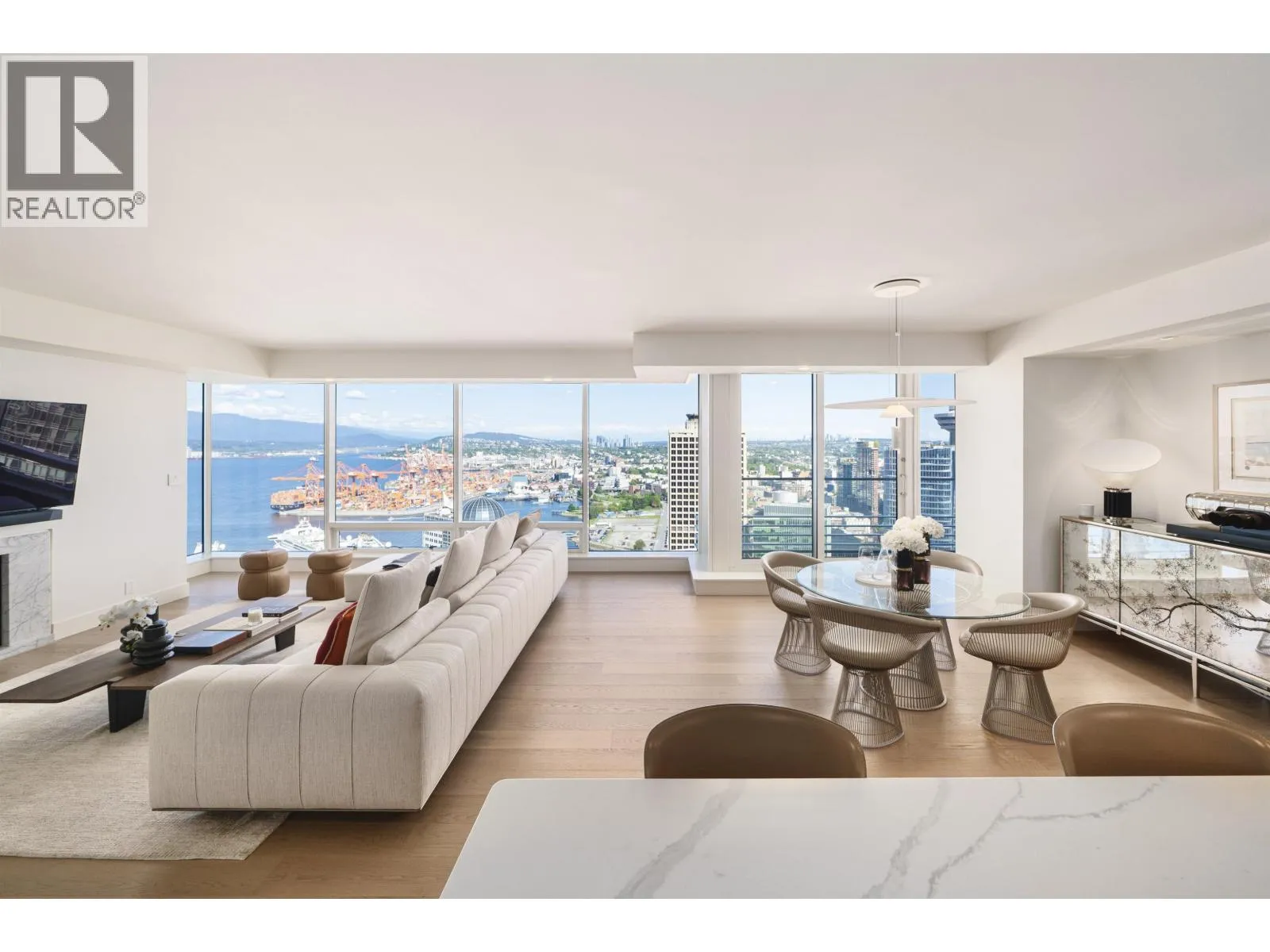Rarely available, exquisite 02 home in the prestigious Fairmont Pacific Rim. Unobstructed, stunning views of ocean, harbour & northshore mountain from the 5th highest 02 plan. A remarkably expansive, light-filled living room that welcomes the morning sun and flows seamlessly into breathtaking panoramic views. Boasting luxury upgrades in 2020: solid hardwood floor, motorized blinds & blackout shades, marble countertop, the entire laundry room (Miele washer & dryer, countertop, cabinets, sink, faucet), Nest thermostats, all lighting fixtures, water filter, painting; dishwasher & hood fan upgraded in 2024. Boffi Italian kitchen, Miele & Sub-Zero appliances, spa ensuites. Meticulously maintained. Ready to move in. 2 parking. Open House: Sat, Sept 13: 2:15-4:15; Sun, Sept 14, 1:30-3:30. (id:27476)