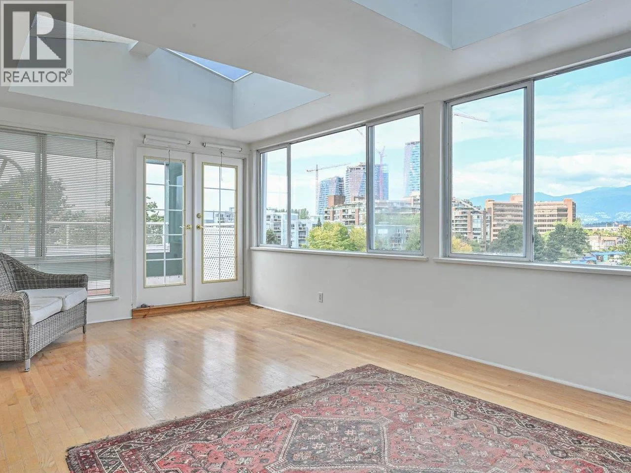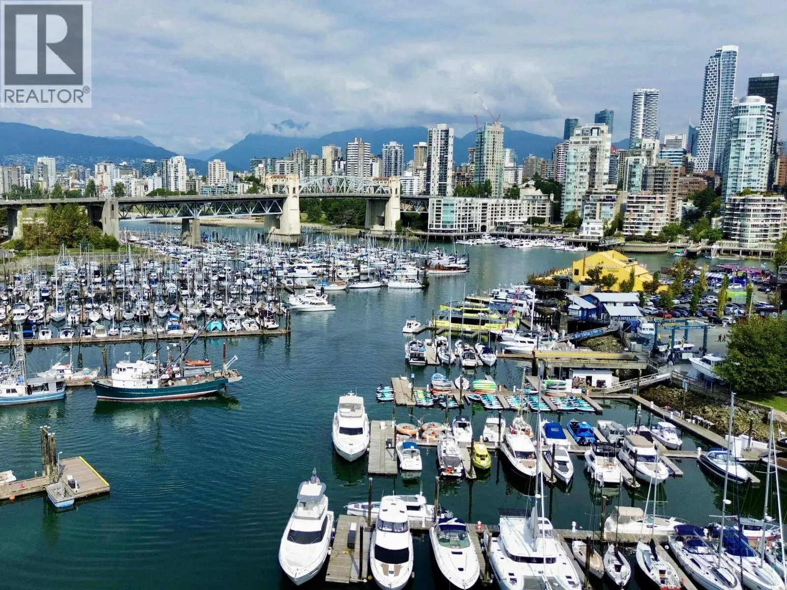 Perched on the 6th floor in the premier position of Mariner Point, this 2-bedroom, 2-bathroom 1346 sq.ft. corner suite offers the very best views and outlook in the entire complex. From your private balcony and enclosed sunroom, take in sweeping vistas of the city, mountains, water, and iconic Burrard Bridge. The interior of the suite is well laid out with 2 bedrooms and 2 bathrooms including a primary en-suite. Living and dining rooms connect to a well-appointed kitchen. The enclosed sunroom (with permits) is 268 sq.ft. in addition to the 1,078 sq.ft. of interior living space. Strata plan (1,075 sq.ft.) In-suite storage and laundry. Generous in-suite storage and laundry. The building has been well maintained by a proactive strata. This sought-after community welcomes pets and rentals, and the City of Vancouver pre-paid lease can be extended 20 years to 2066 by the purchaser. Secure parking stall in the underground. Steps to the Seawall, Granville Island, cafés, and restaurants. Some photos digitally staged. (id:27476)