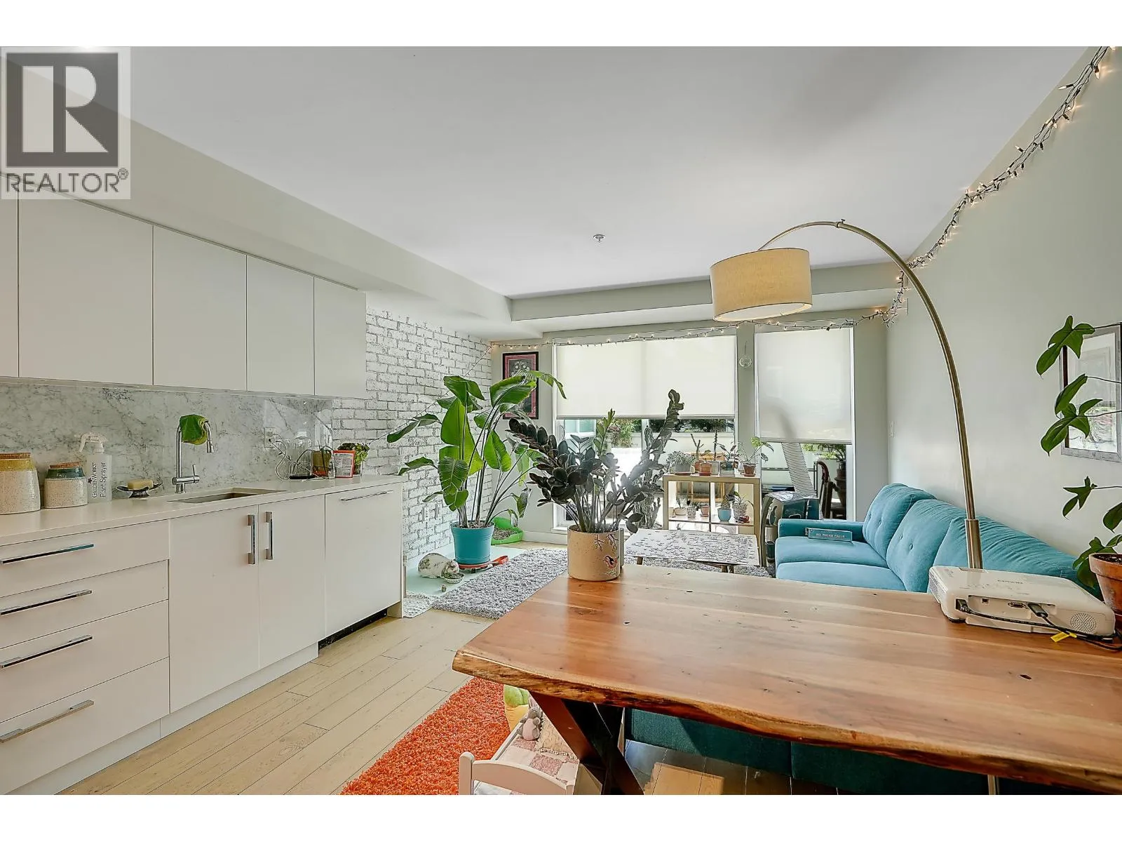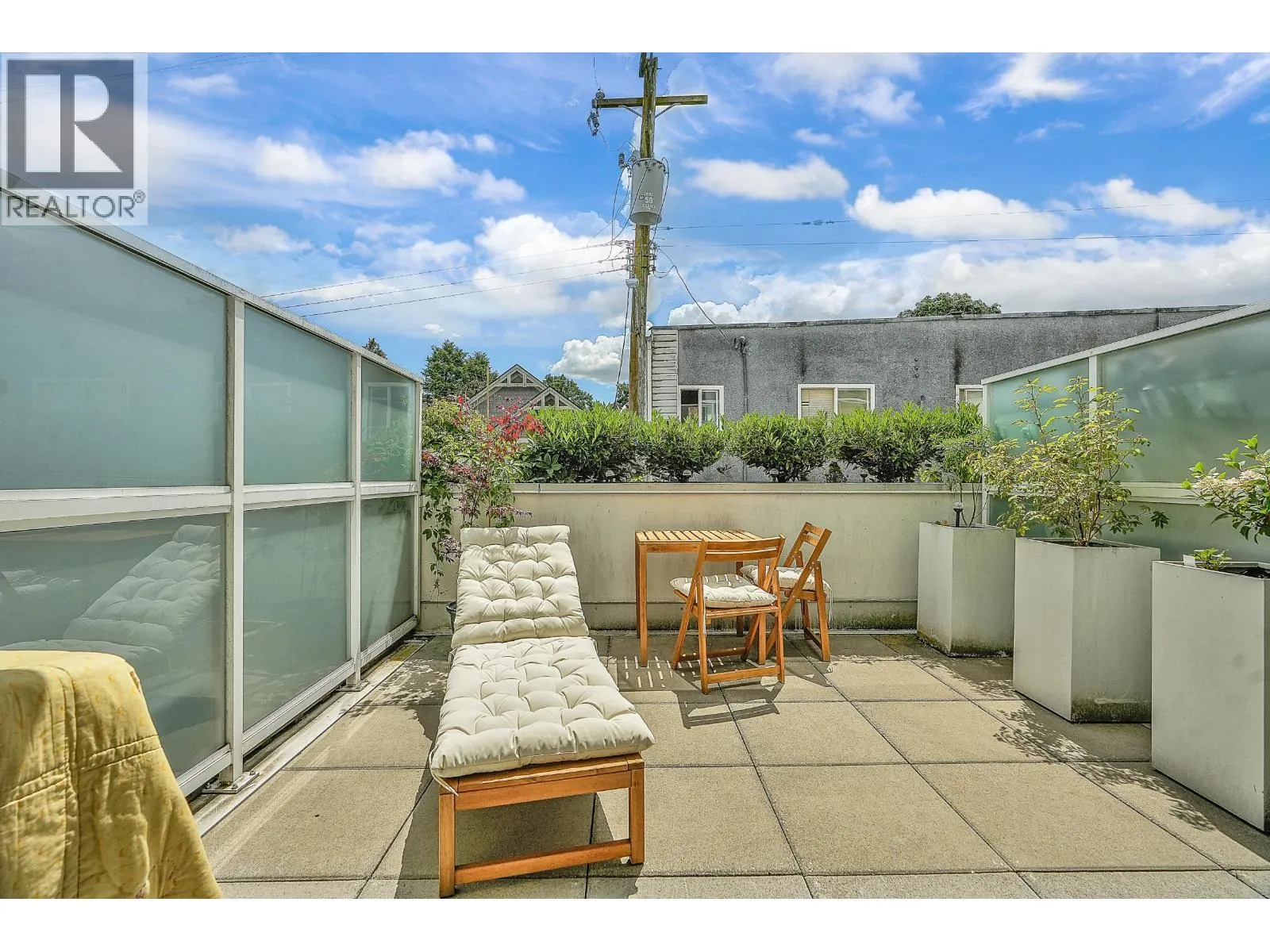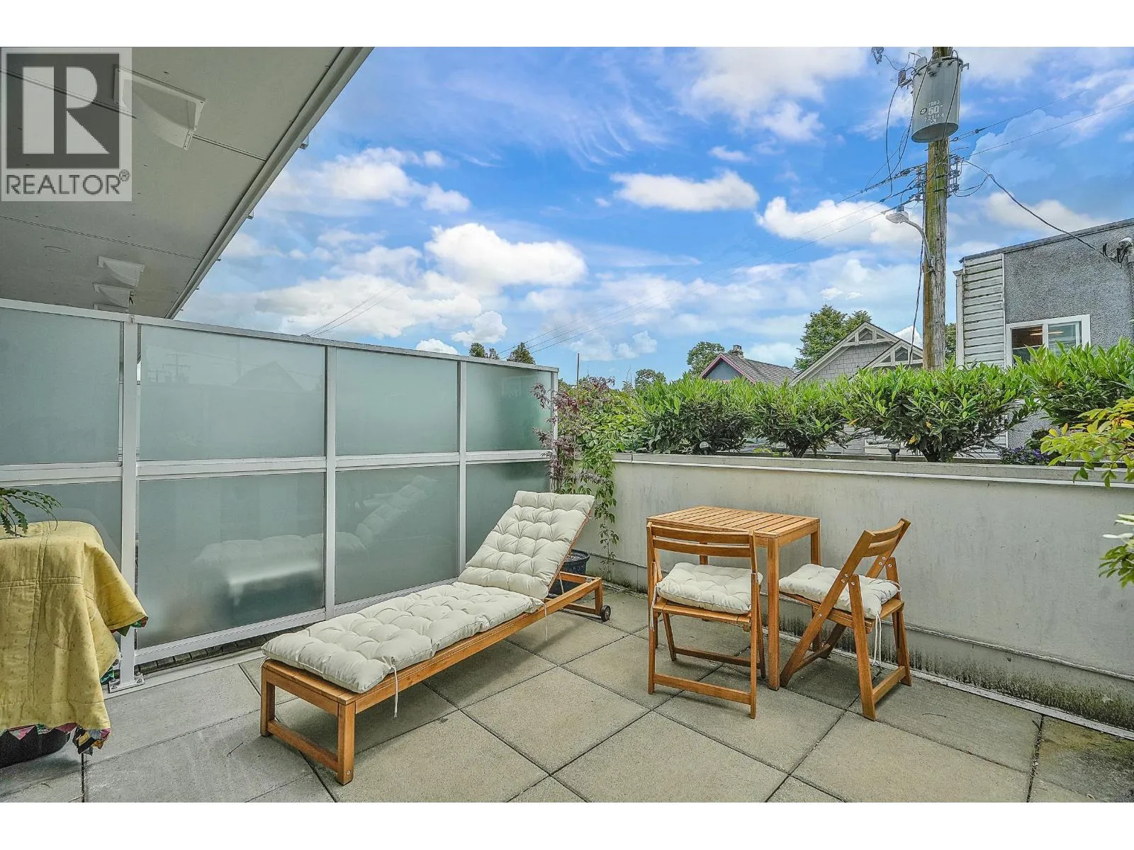 Welcome to Midtown Central by the Peterson Group/PortLiving (Studio Living).This boutique 33-unit building is perfectly located along the Broadway Corridor & Fraser Street. Situated on the quiet side of the complex features a spacious 208 square ft patio, unobstructed. Enjoy high-end finishes throughout, including oak engineered hardwood floors, integrated appliances with induction cooktop, Carrera marble backsplash, and a luxurious bathroom with in-floor heated herringbone tile and a rain shower. The large walk-in closet doubles as a home office or flex space. Steps to shopping, restaurants, and the future Broadway Subway Station, this home is perfect for first-time buyers or investors looking for a move-in-ready property. Comes with parking, locker & bike locker. (id:27476)