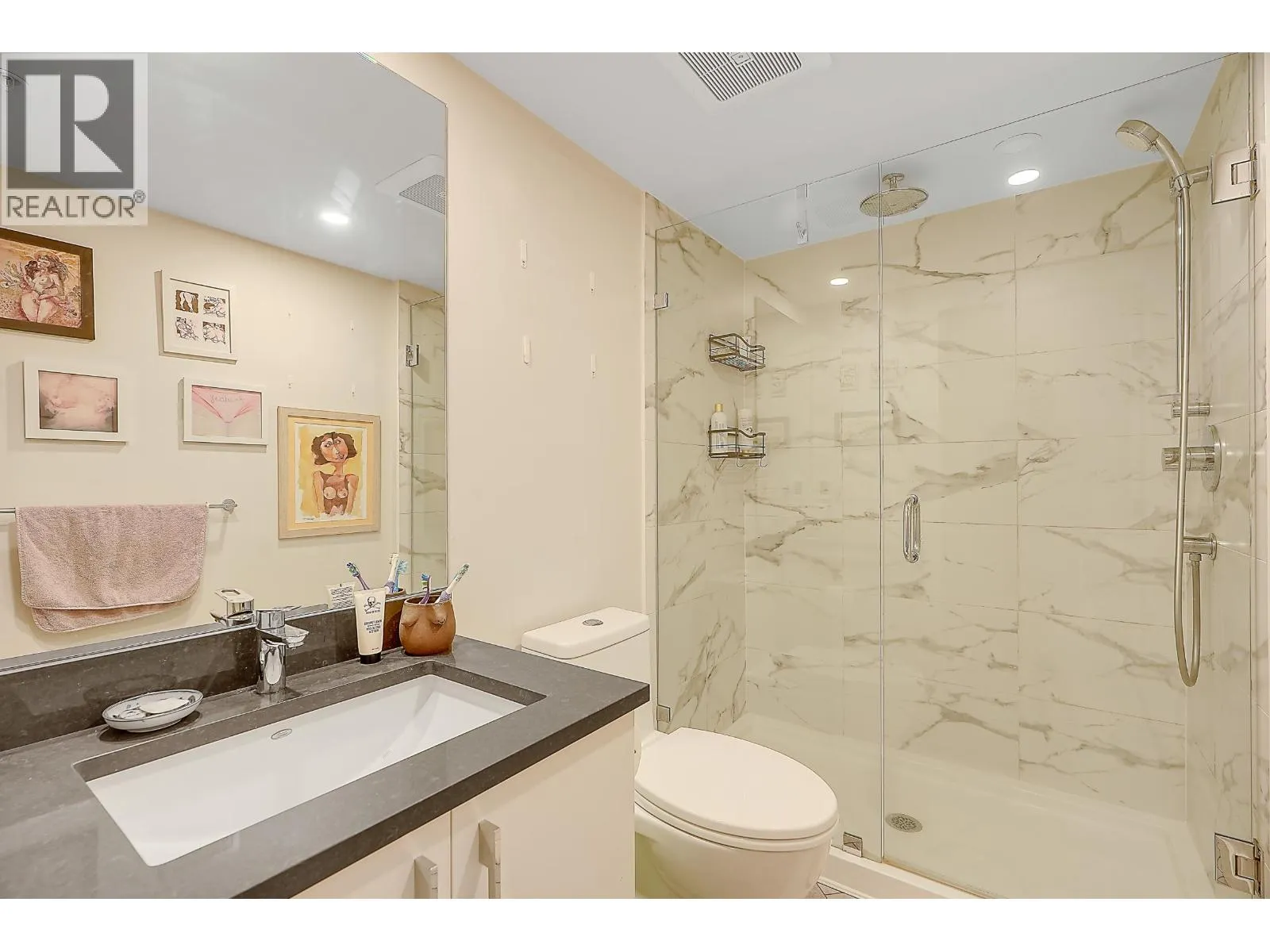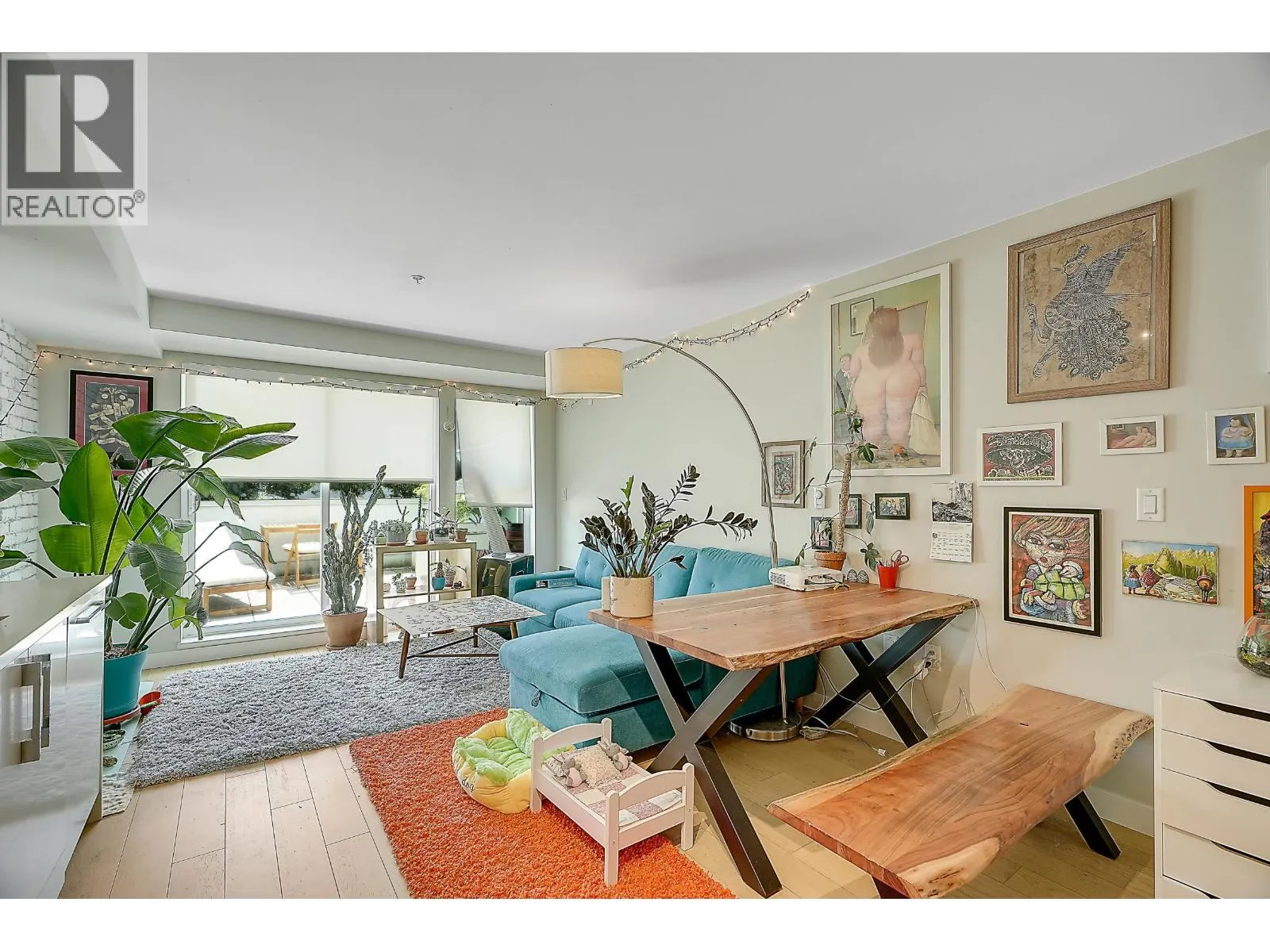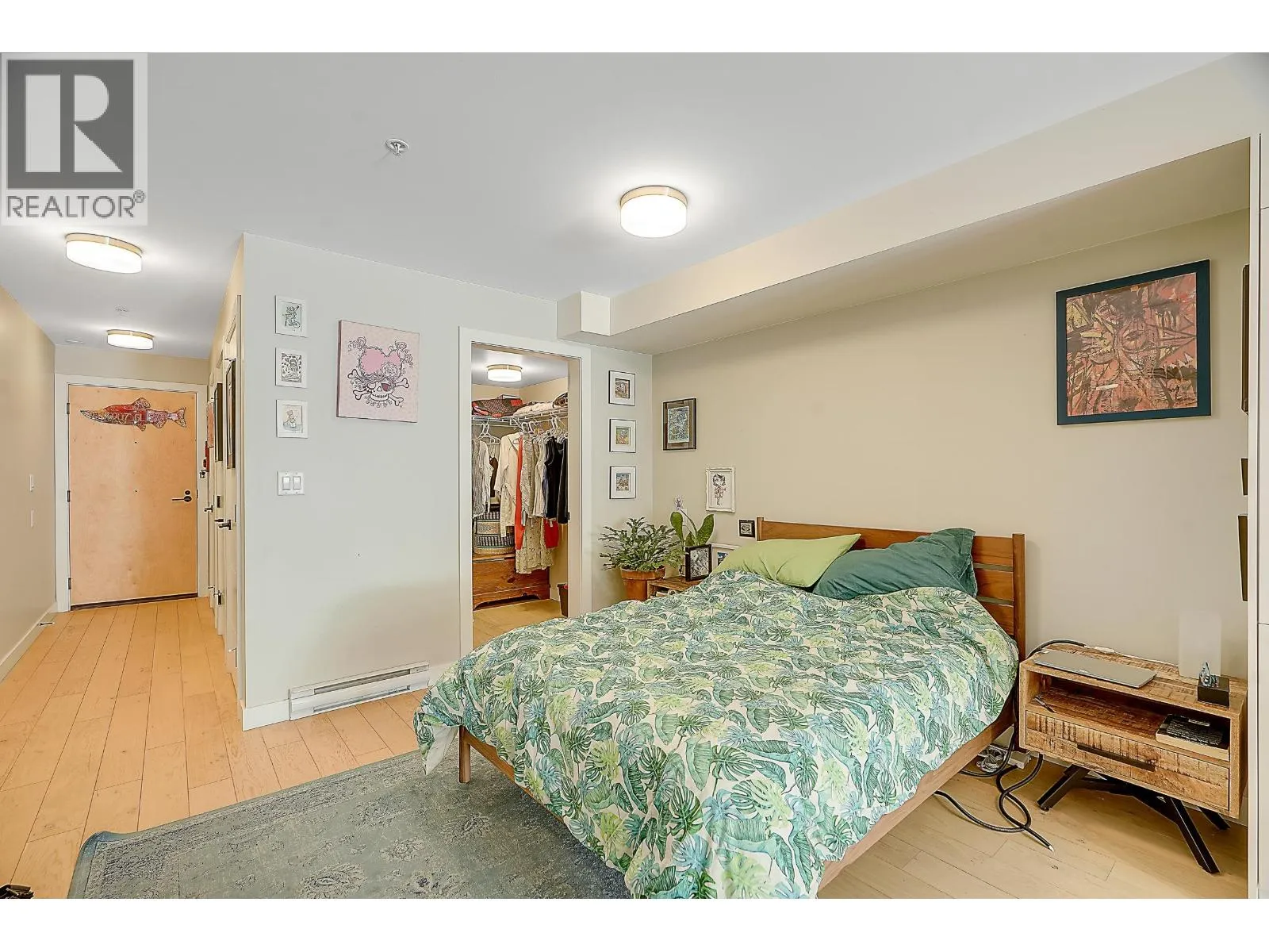Welcome to Midtown Central by the Peterson Group/PortLiving (Studio Living).This boutique 33-unit building is perfectly located along the Broadway Corridor & Fraser Street. Situated on the quiet side of the complex features a spacious 208 square ft patio, unobstructed. Enjoy high-end finishes throughout, including oak engineered hardwood floors, integrated appliances with induction cooktop, Carrera marble backsplash, and a luxurious bathroom with in-floor heated herringbone tile and a rain shower. The large walk-in closet doubles as a home office or flex space. Steps to shopping, restaurants, and the future Broadway Subway Station, this home is perfect for first-time buyers or investors looking for a move-in-ready property. Comes with parking, locker & bike locker. (id:27476)