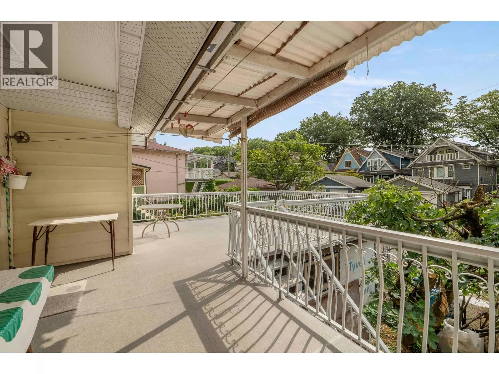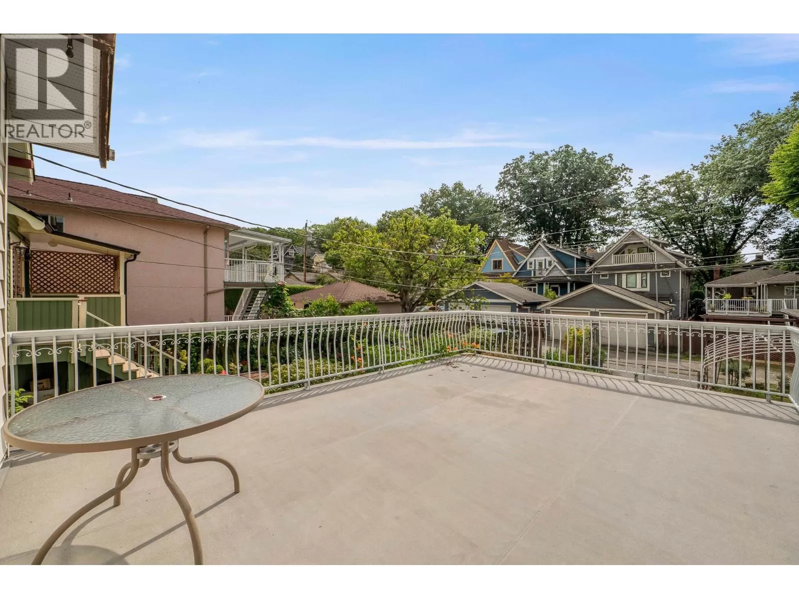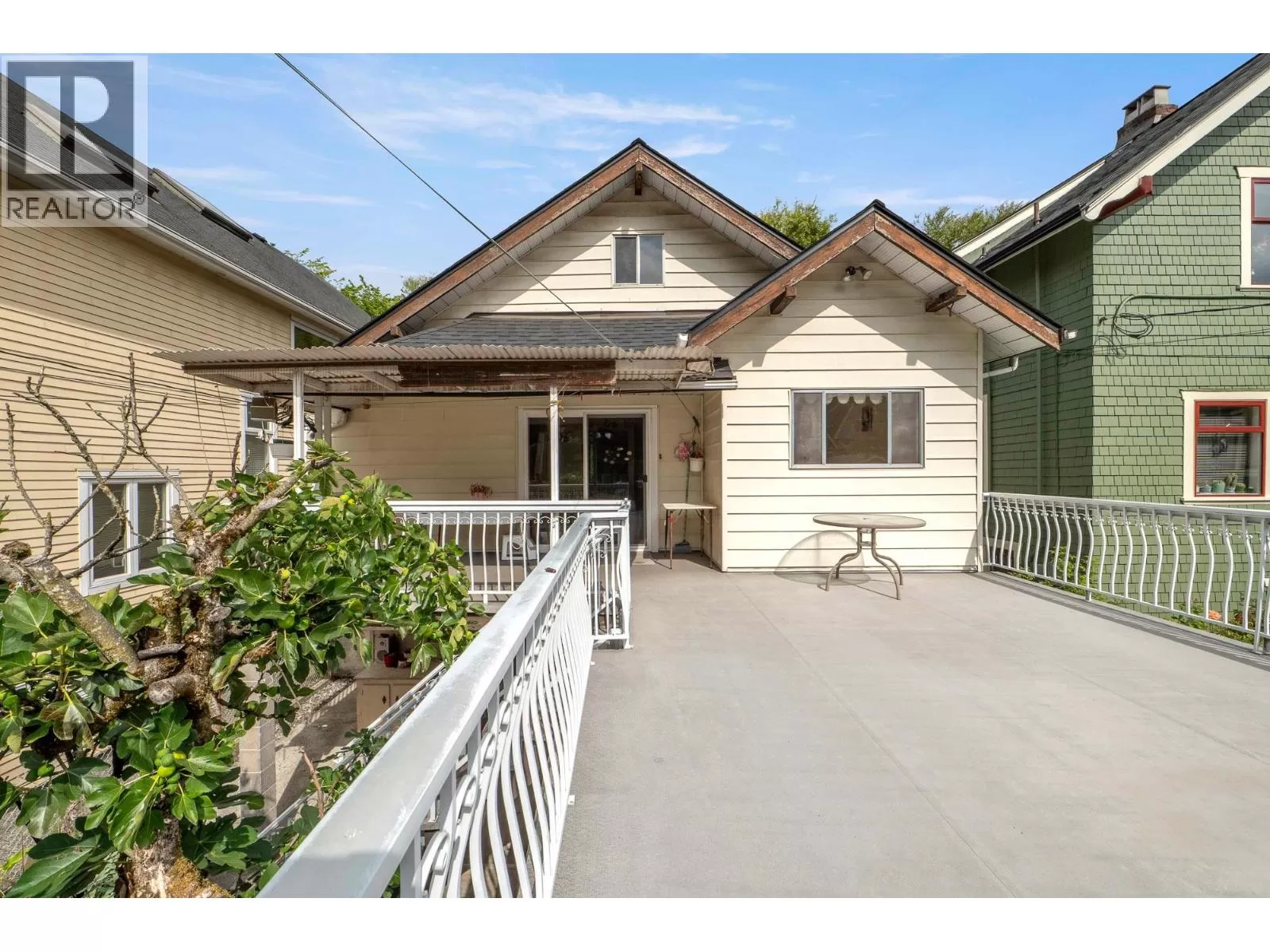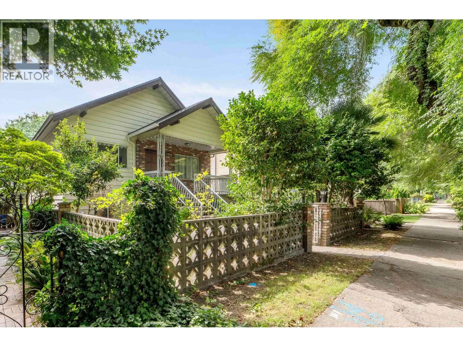 Reside on one of Vancouver´s most picturesque, tree-lined streets, just half a block from The Drive! Listed below tax assessed value! This meticulously maintained Italian-style home has been cherished for decades. The main floor boasts a spacious entry, a large living room, & a generous kitchen with an eating area that opens to a sun-soaked southern deck, plus 2 well-sized bedrooms and a full bathroom. The lower level features a separate entrance, a full kitchen with dining space, laundry, a large living room and bedroom, plus a concrete cellar. Beneath the deck is a two-car garage. The property includes a charming front garden and a sunny southern backyard. Ideal as a family home or for redevelopment into a stunning front-back duplex or your dream residence. Call now to show! (id:27476)