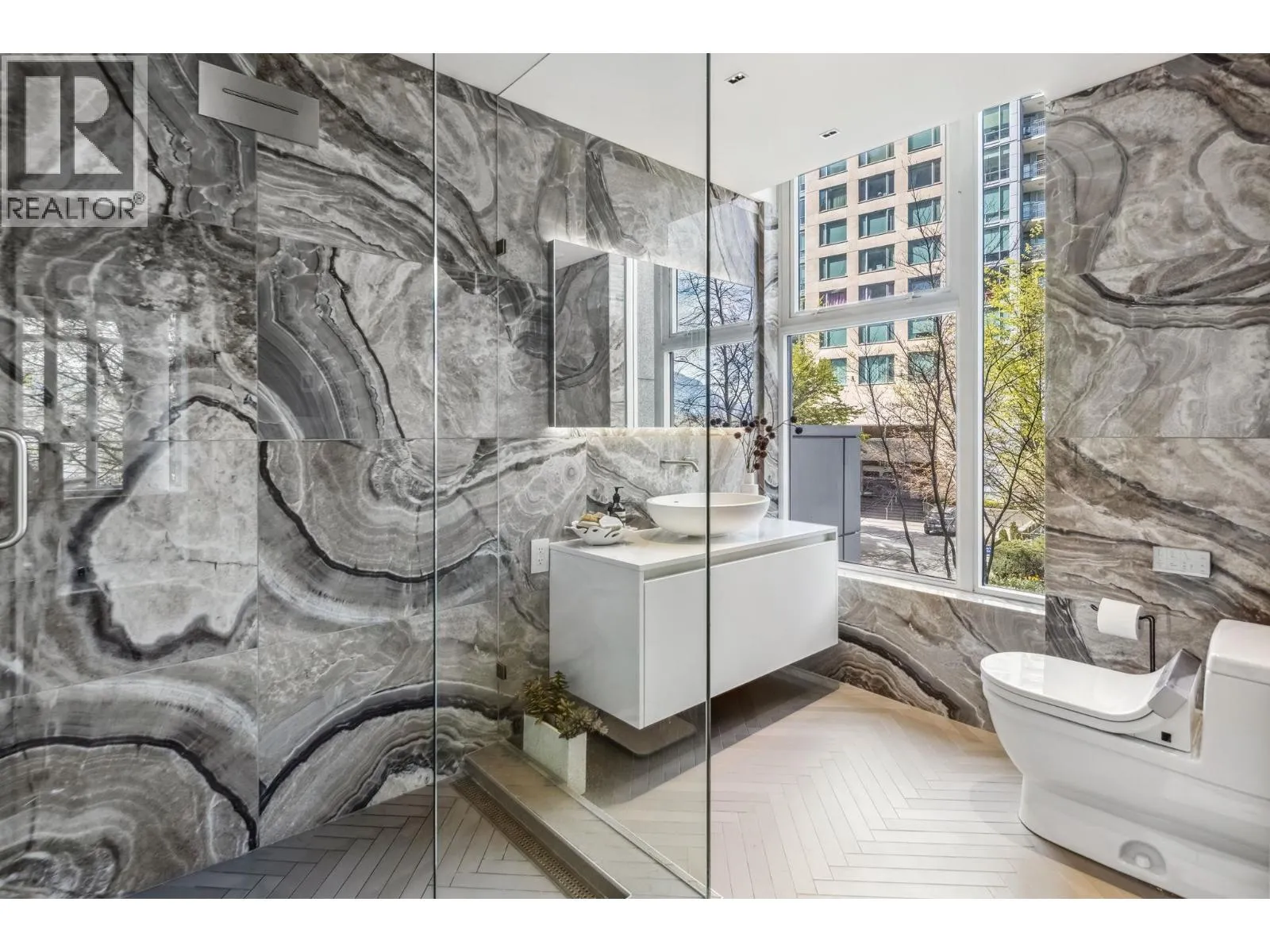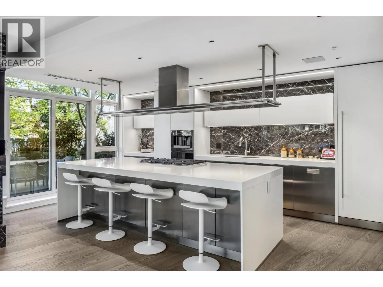This exceptional waterfront townhome in Coal Harbour offers stunning marina and mountain views in a serene, house-like setting with a private garden. The luxurious corner layout includes wraparound windows, a private seawall entry, a personal elevator, and a private gated 2-car garage with direct unit access. The home provides ample storage and entertaining space. A comprehensive 2021 renovation by Living Space has elevated the property with top-of-the-line Arclinea millwork, Sub-Zero/Wolf appliances, Bocce lighting, a 3-zone AC system, and a Savant smart home integrating Lutron lighting, ultra-quiet smart blinds, security, and a built-in sound system. The Callisto complex features premier 24-hour concierge/security, a pool, hot tub, meeting areas, and a fitness center. (id:27476)