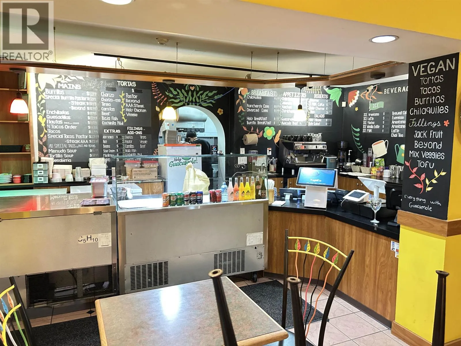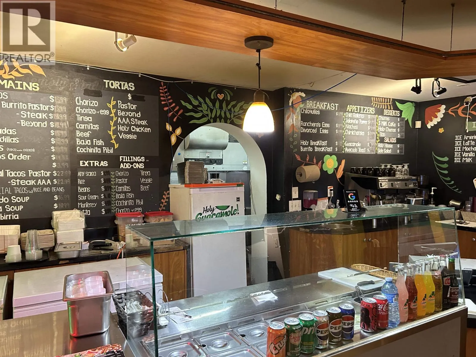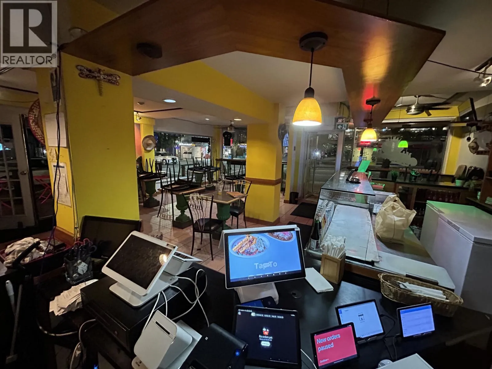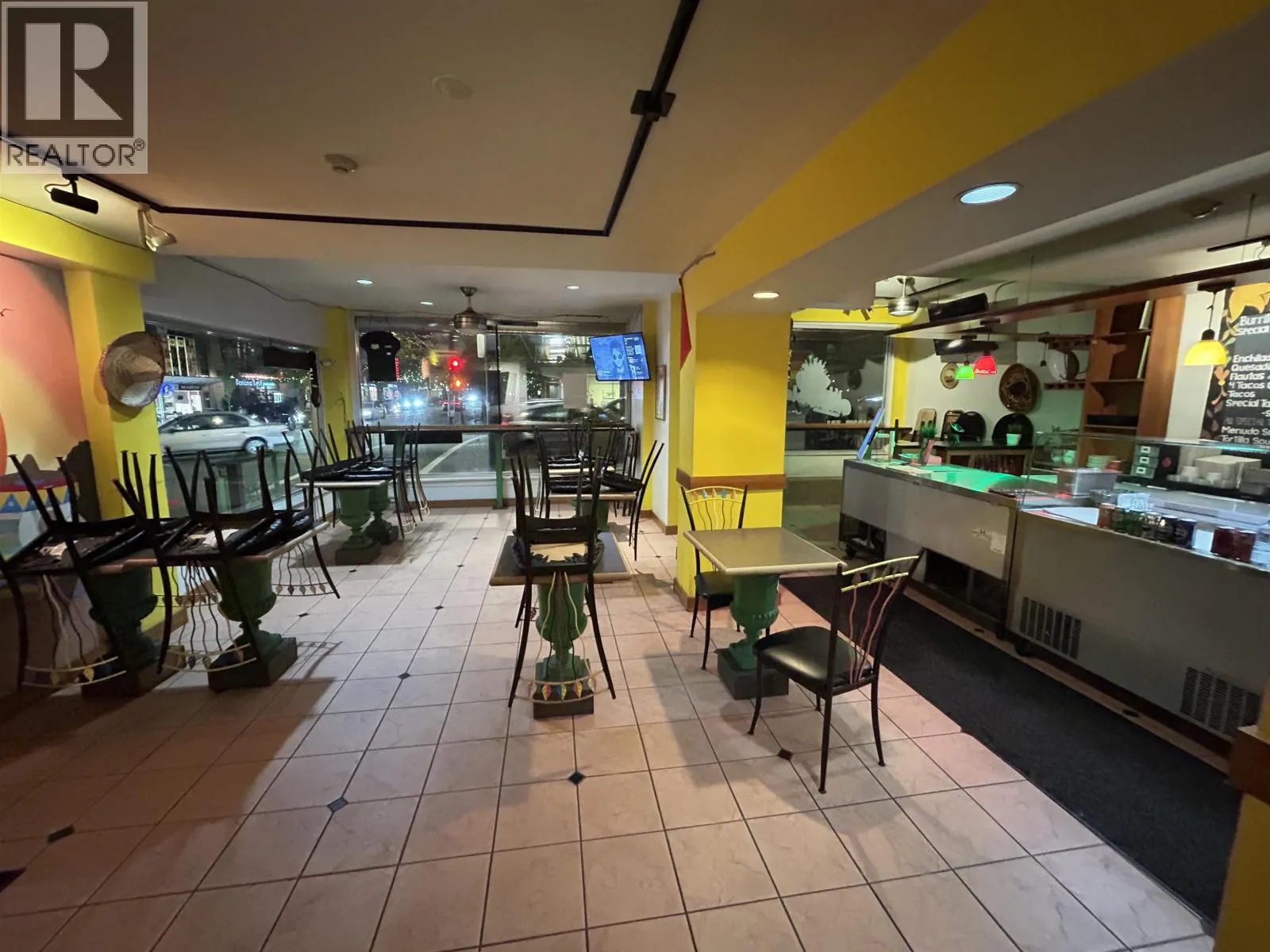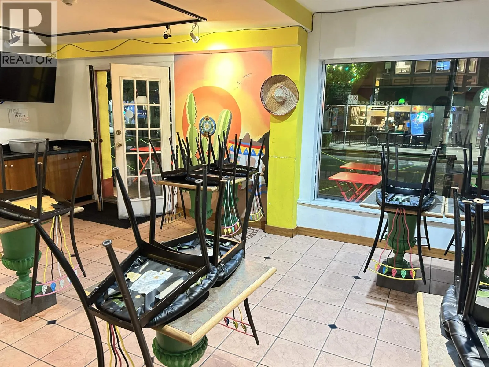 This excellent high-profile location at the corner of Denman and Robson Street is ready for its new owner. Super high sales volume. Lots of deliveries. This is a literal gold mine of a restaurant business. GILES 6 ft self-contained vented hood with fire suppression and a large grease trap allows for full cooking. There are 22 seats inside and 12 seats outside on the patio. The current gross rent is $11,900/month. A new 3-year lease is available from the Landlord. Easy to show with an appointment. Please do not disturb the business. TRADE NAME AND RELATED MEDIA IS NOT INCLUDED. (id:27476)