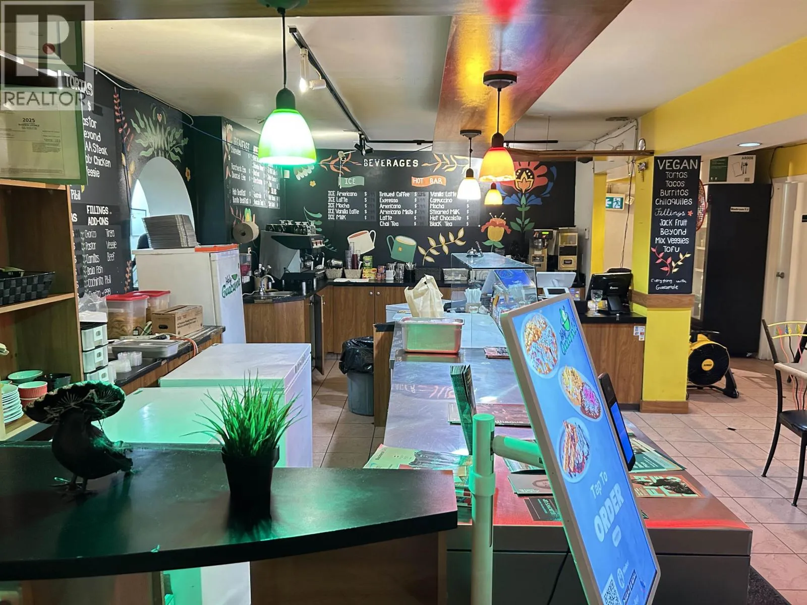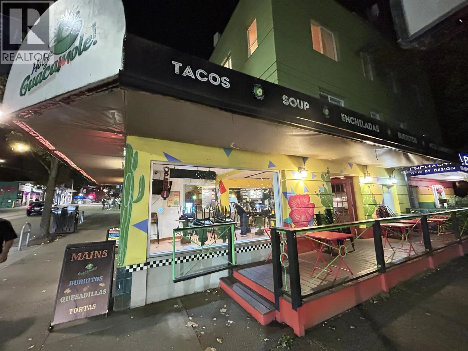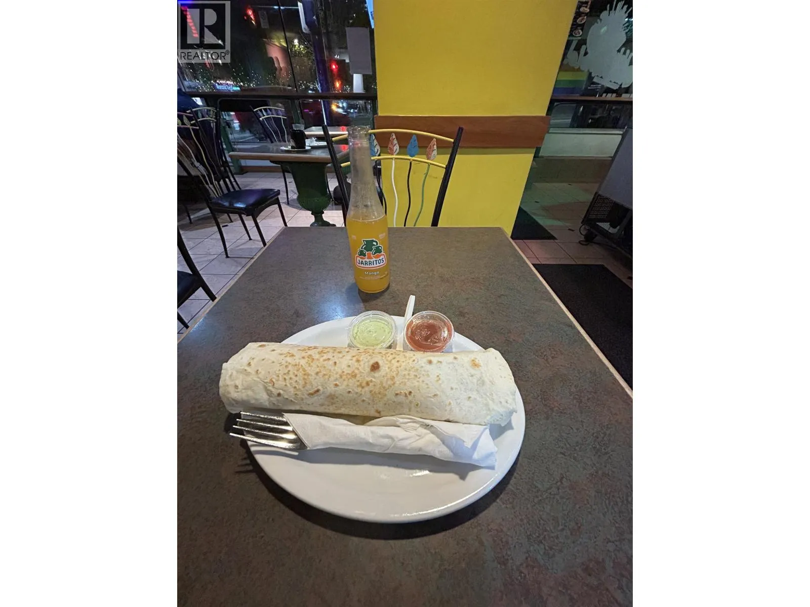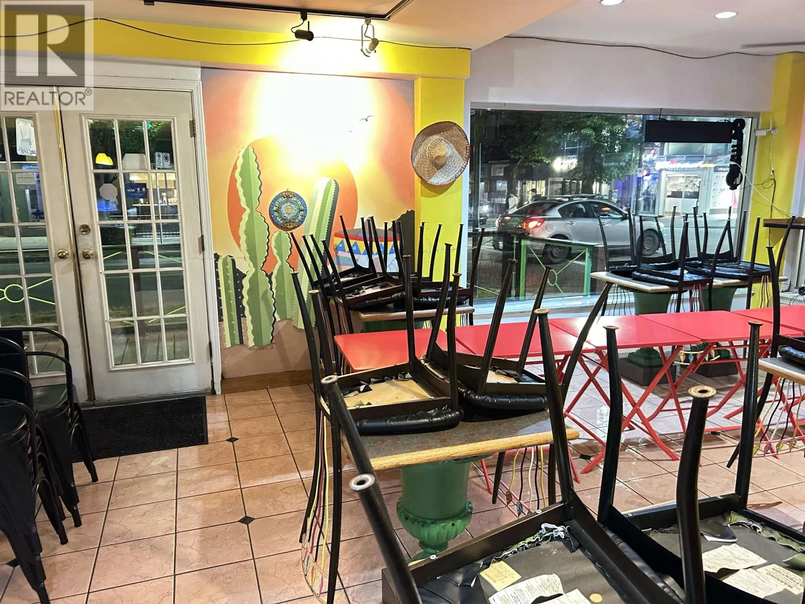 This excellent high-profile location at the corner of Denman and Robson Street is ready for its new owner. Super high sales volume. Lots of deliveries. This is a literal gold mine of a restaurant business. GILES 6 ft self-contained vented hood with fire suppression and a large grease trap allows for full cooking. There are 22 seats inside and 12 seats outside on the patio. The current gross rent is $11,900/month. A new 3-year lease is available from the Landlord. Easy to show with an appointment. Please do not disturb the business. TRADE NAME AND RELATED MEDIA IS NOT INCLUDED. (id:27476)