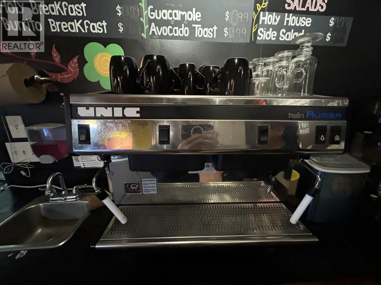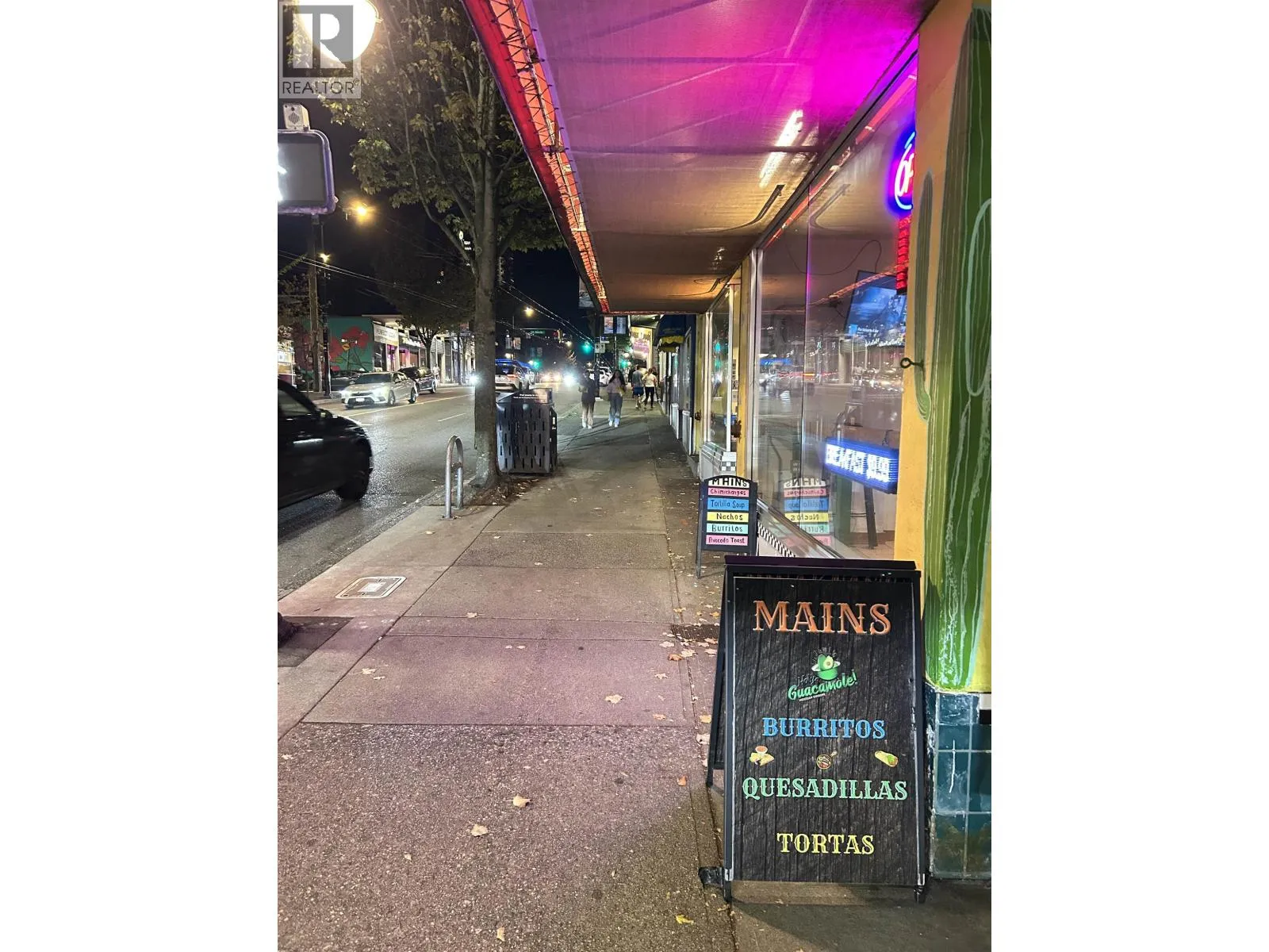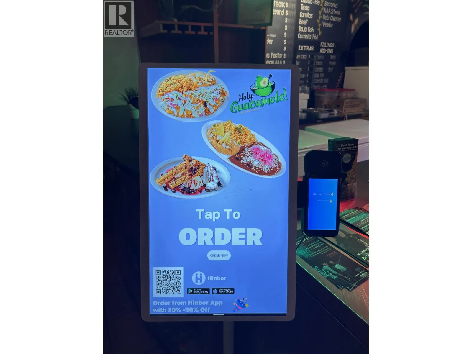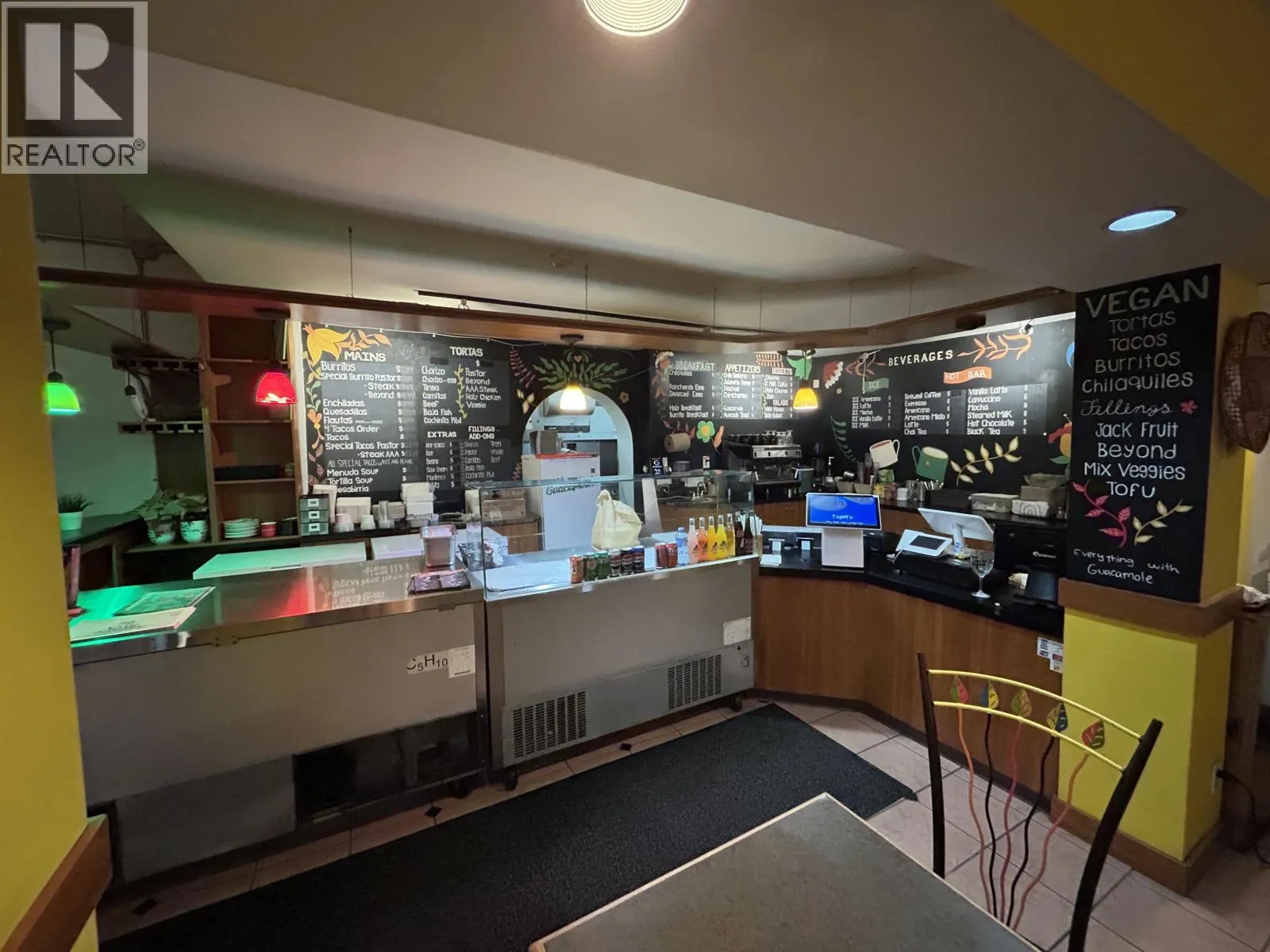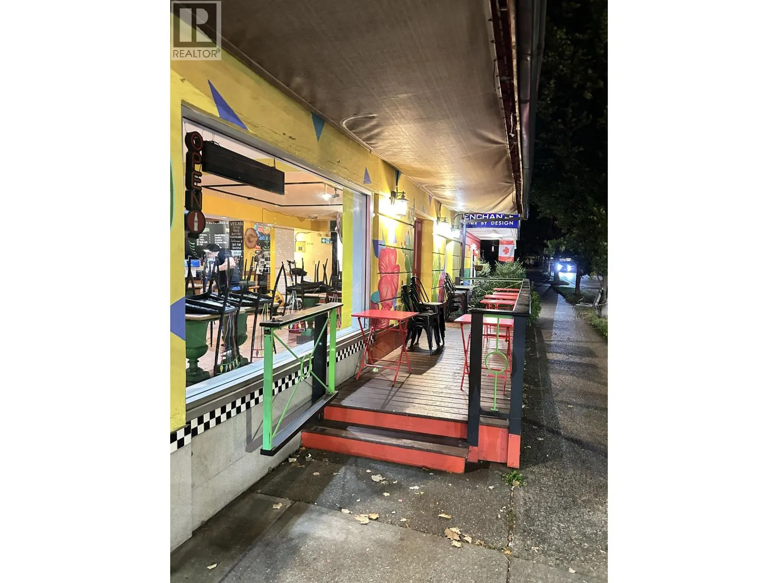 This excellent high-profile location at the corner of Denman and Robson Street is ready for its new owner. Super high sales volume. Lots of deliveries. This is a literal gold mine of a restaurant business. GILES 6 ft self-contained vented hood with fire suppression and a large grease trap allows for full cooking. There are 22 seats inside and 12 seats outside on the patio. The current gross rent is $11,900/month. A new 3-year lease is available from the Landlord. Easy to show with an appointment. Please do not disturb the business. TRADE NAME AND RELATED MEDIA IS NOT INCLUDED. (id:27476)