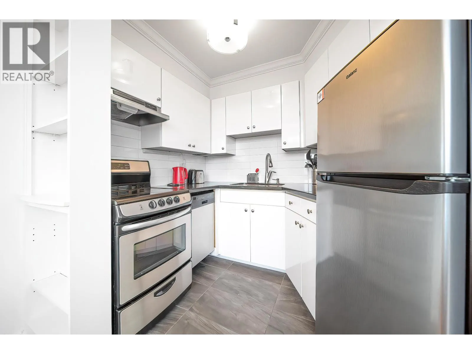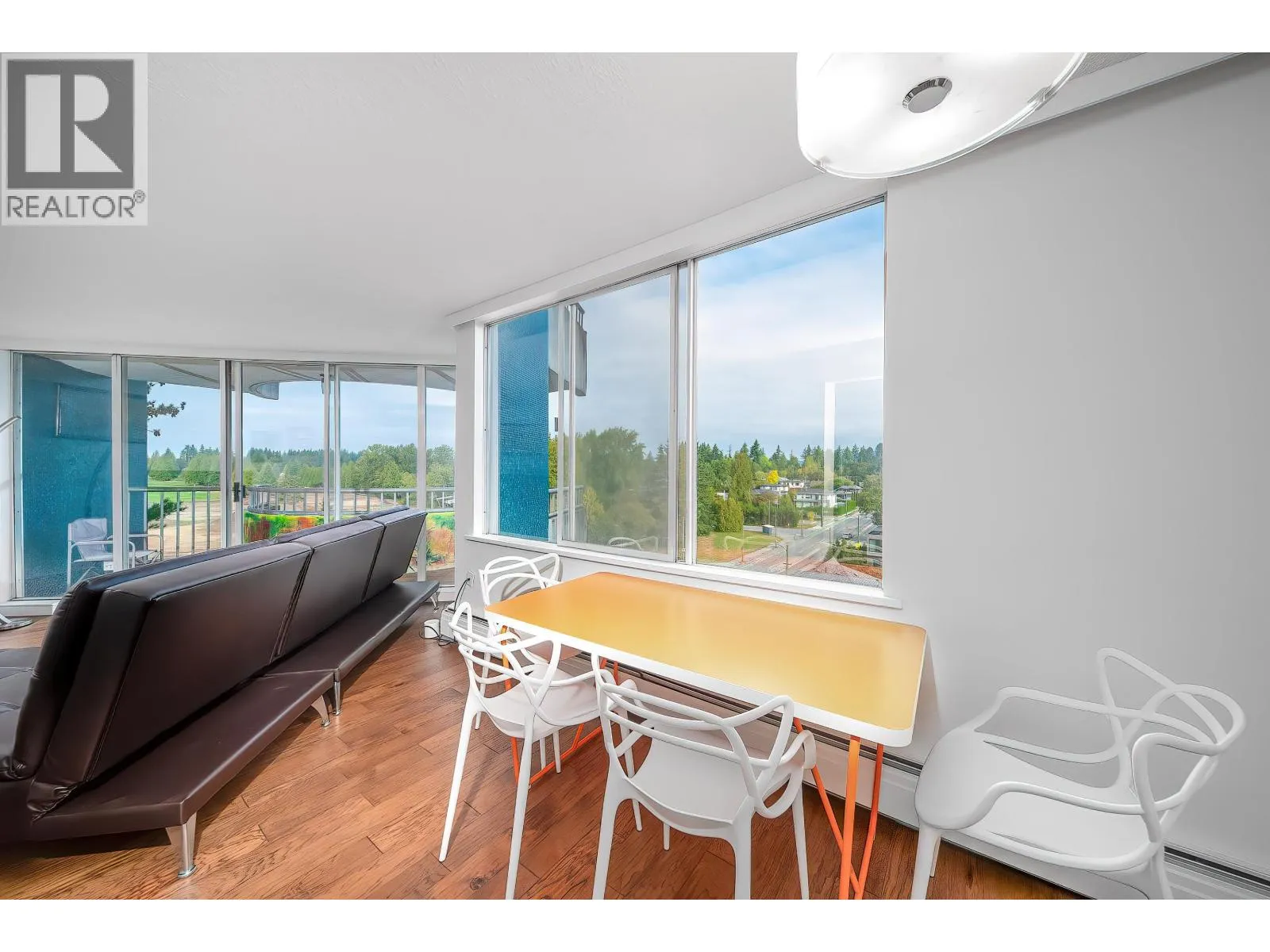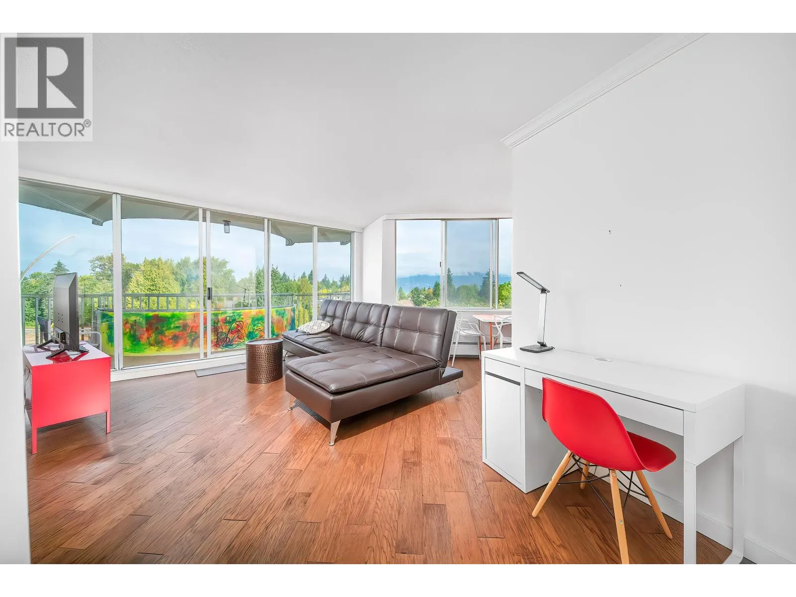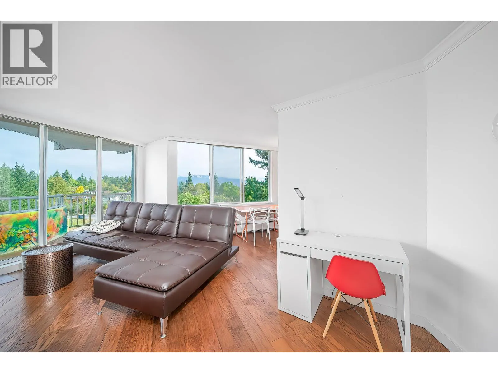 Quiet&Spacious 1bed,1bath corner home(prepaid to 2083) at west PG is ideal for downsizers or ppl seeking comfort and convenience.Expansive windows fill the open living space with natural light,gleaming hardwood floors and kitchen featuring marble countertops,stainless steel appliances,and a charming dining nook.The generous bedroom and spa-inspired 4-piece bath create a serene retreat,while the covered NW.facing balcony offers stunning views of the mountains,Golf Course,and even a peek at Vancouver´s iconic downtown skyline.This well-maintained building includes shared laundry,1 parking& 1 locker.Rentals allowed, pets not allowed.UNIQUE INTEREST in both building&land.Payout to owner for both building&land at end of lease in 2083.Prop.tax&heat included in maintenance fee. (id:27476)