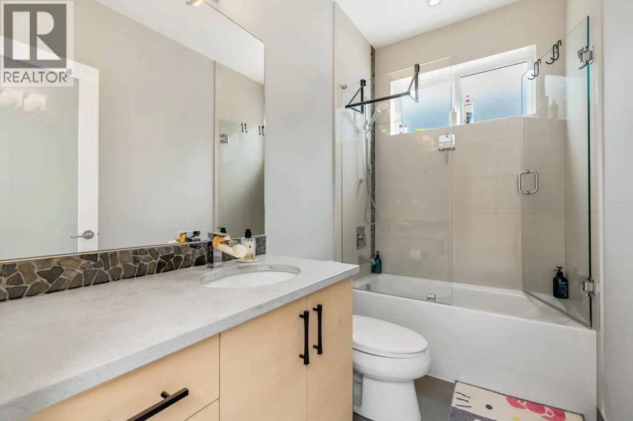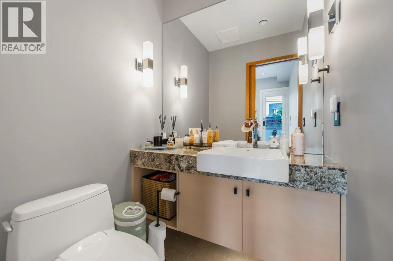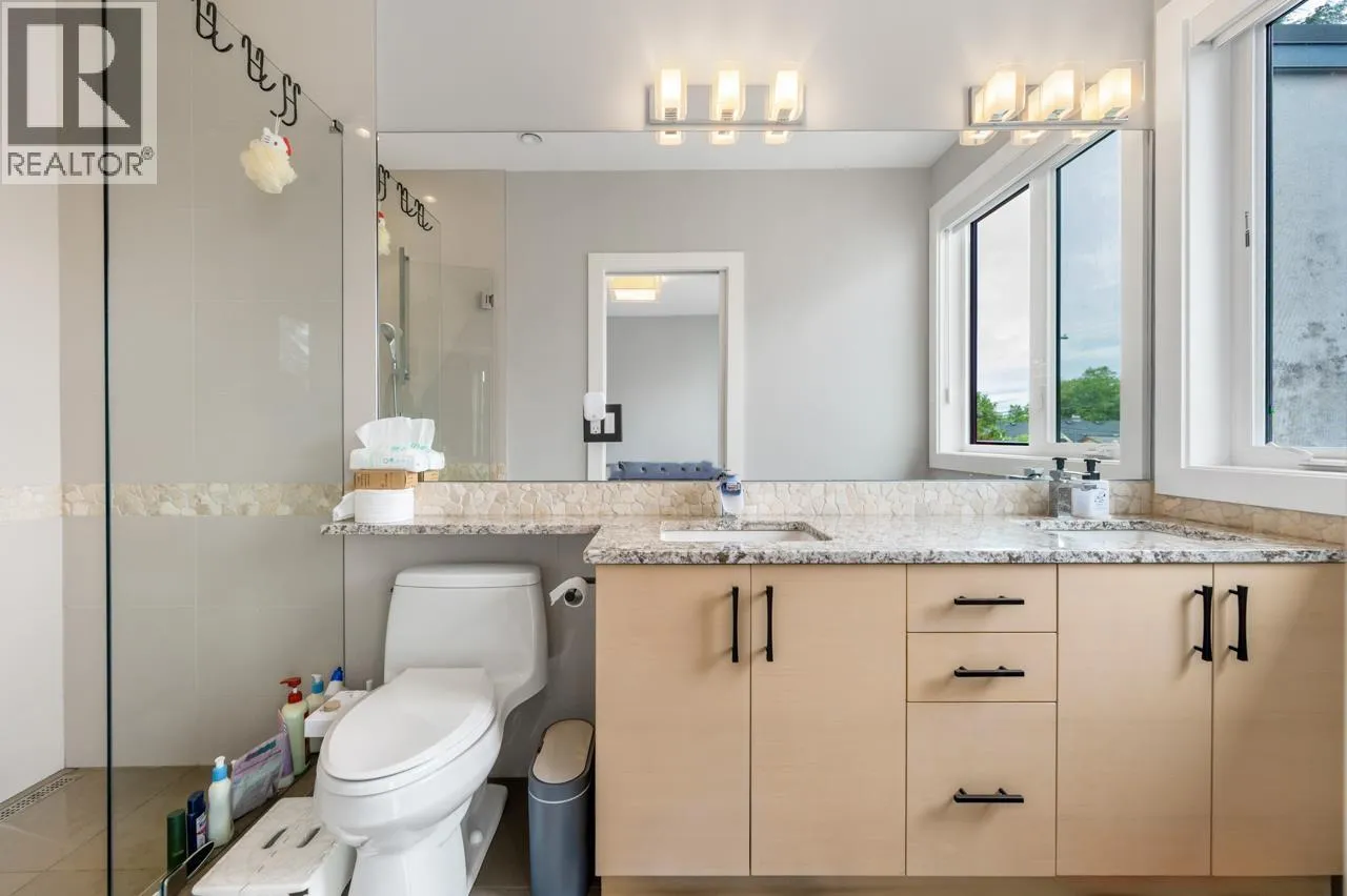 This contemporary home blends modern design with exceptional functionality in a prime location. Featuring a 10-ft ceiling on main floor, radiant heating, air conditioning, water filtration system and warm wood wall paneling, it offers comfort and luxury. Abundant natural light from a large skylight along with seamless indoor-outdoor flow, creates a modern, inviting atmosphere. The gourmet kitchen includes high-end appliances, custom cabinetry and a large island. A private backyard with a deck is ideal for entertaining. The lower floor features a spacious office and a well-appointed legal suite, providing a mortgage helper and added flexibility. The home is close to shopping, parks, and top schools, combining design, functionality, convenience and luxury in one unparalleled residence. (id:27476)