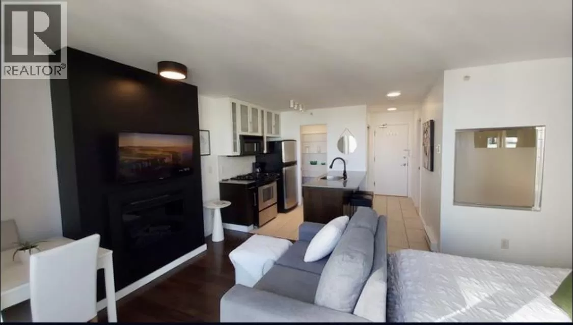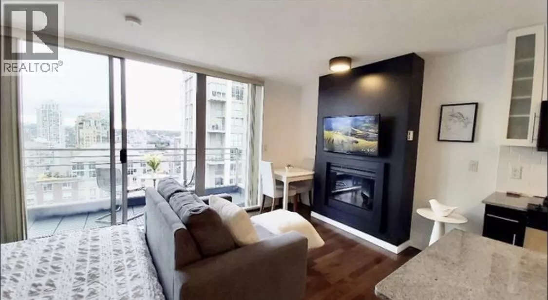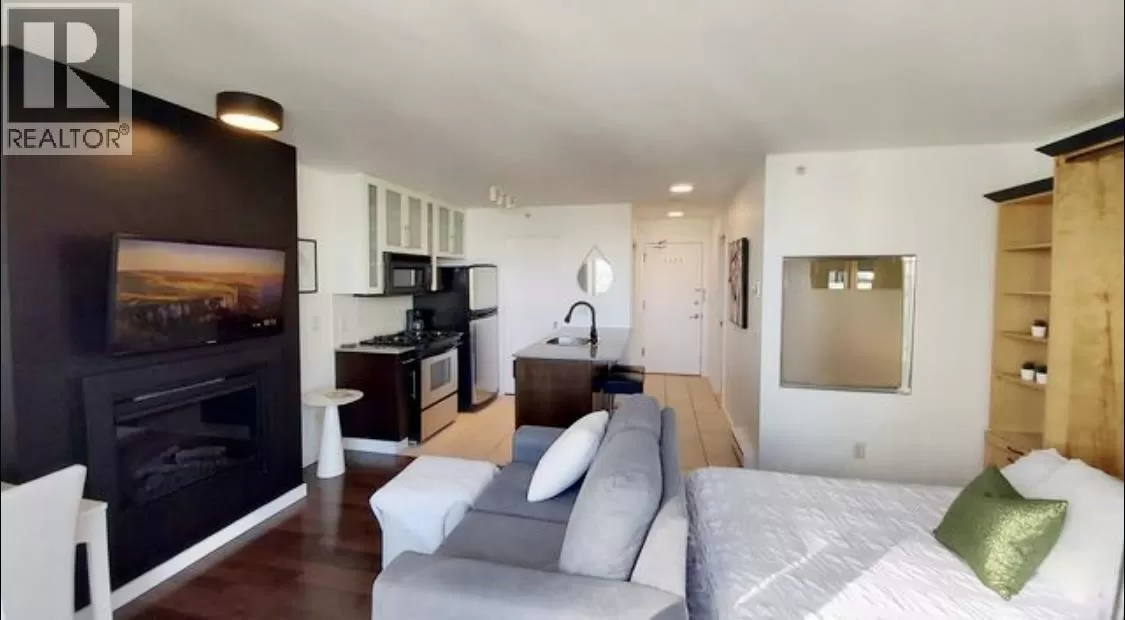 Beautifully furnished Jr. 1-bedroom in the heart of Yaletown at 928 Richards St, on the 7th floor with mountain and city views. The unit features an open kitchen, gas fireplace, queen-size bed, dining area, and a desk, all tastefully furnished. Building amenities include an indoor pool, jacuzzi,