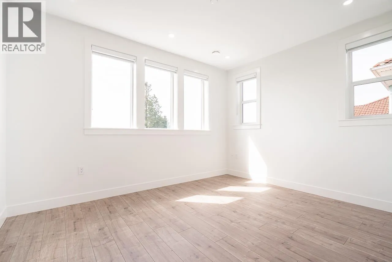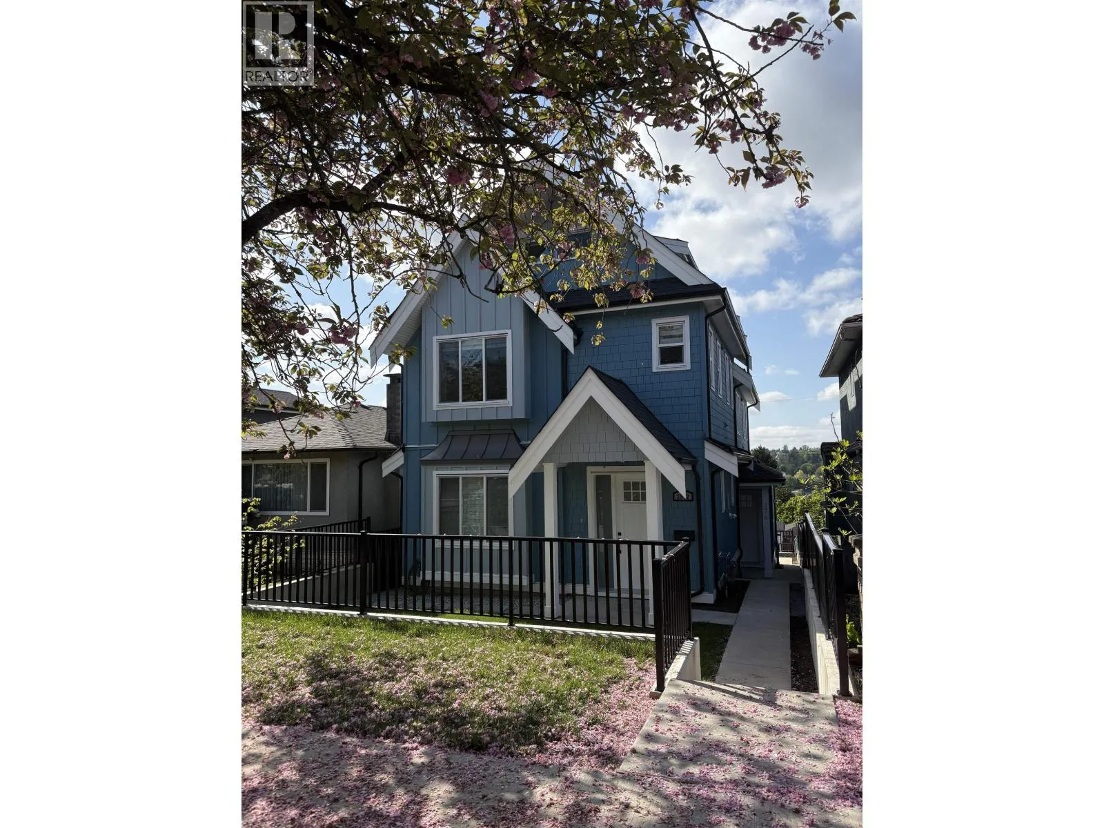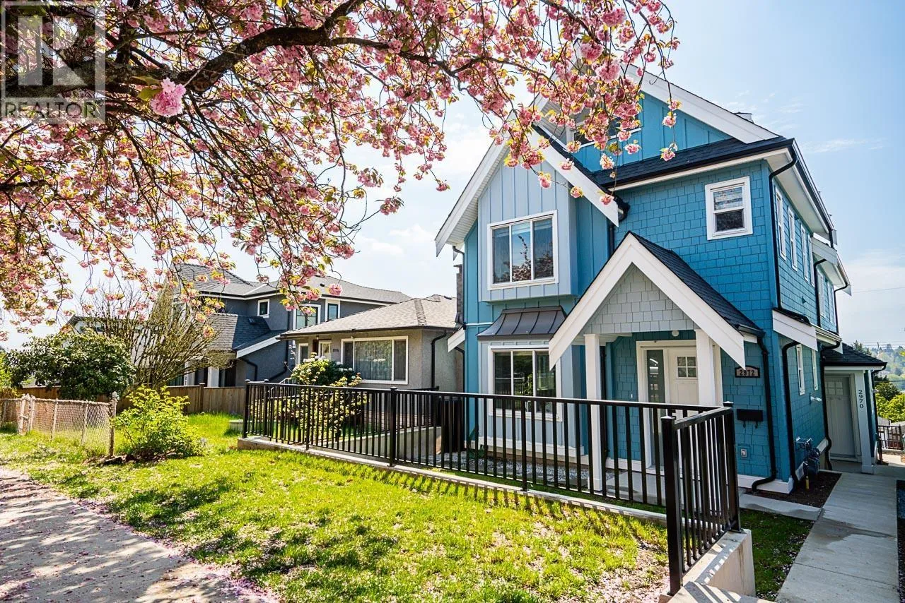 View! Craftsman Style Custom rear duplex on a wonderful full bloom "Cherry Blossom" street. Great location for all & young families alike. Schools, Shopping, Bus, Skytrain w/in 10 minute walk! Open concept main living area gives versatility for personal interior design with access to a huge (19'x10') sunny rear view deck w/gas hook up. Much thoughtful detailing is evident throughout the three levels with a bonus of 549sf of storage (crawl space) not included in sq.ft. Home offers 3 lrg bedrooms, accommodates regular size furniture & 4 full washrooms! Top lvl. bedroom showcases captivating-unobstructed 180 degree views! Fine features; Private yard, quartz counters, heat pump, designer tiles, custom mill work, B/I entertainment units. This home has a lot to offer in this great city of ours! (id:27476)