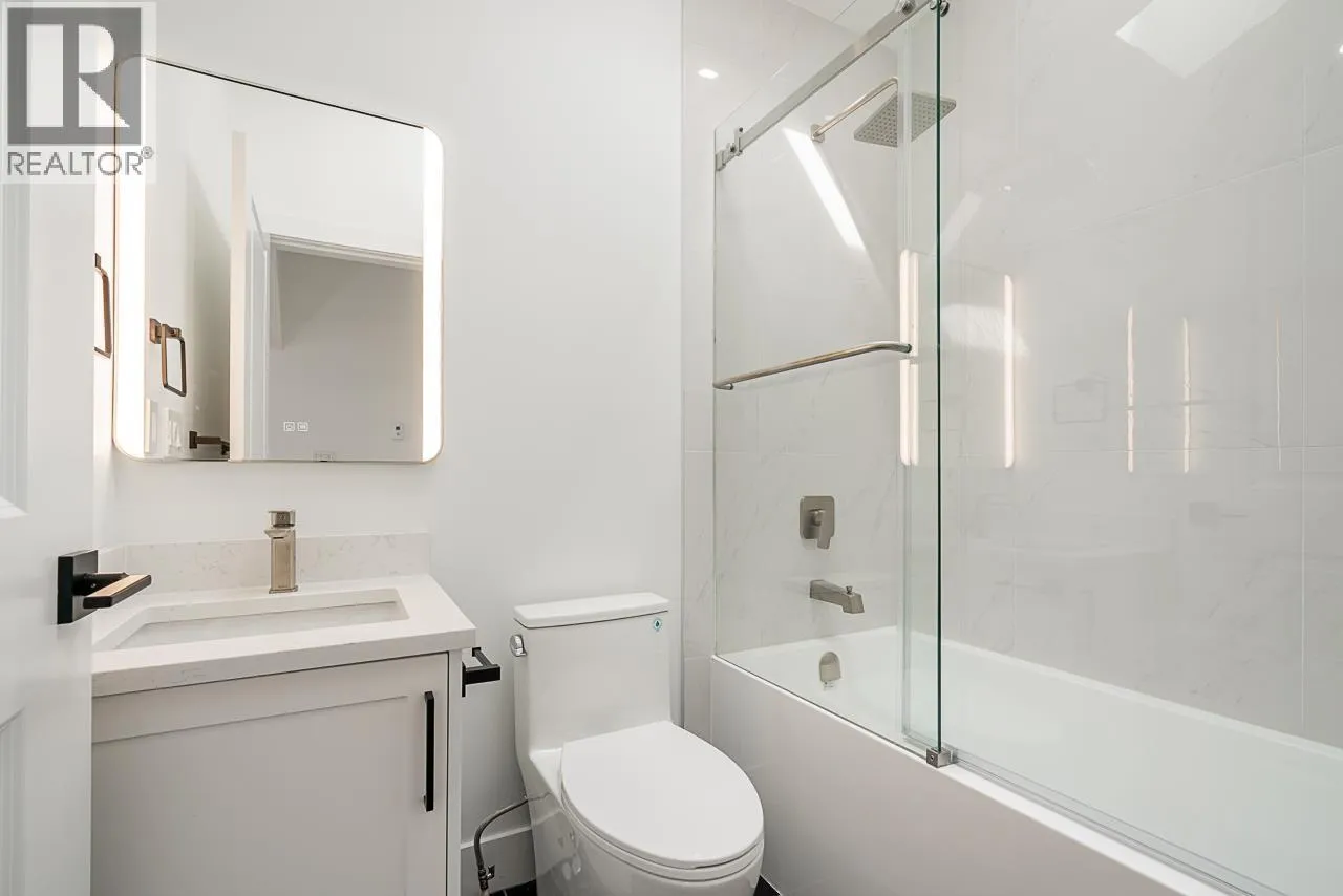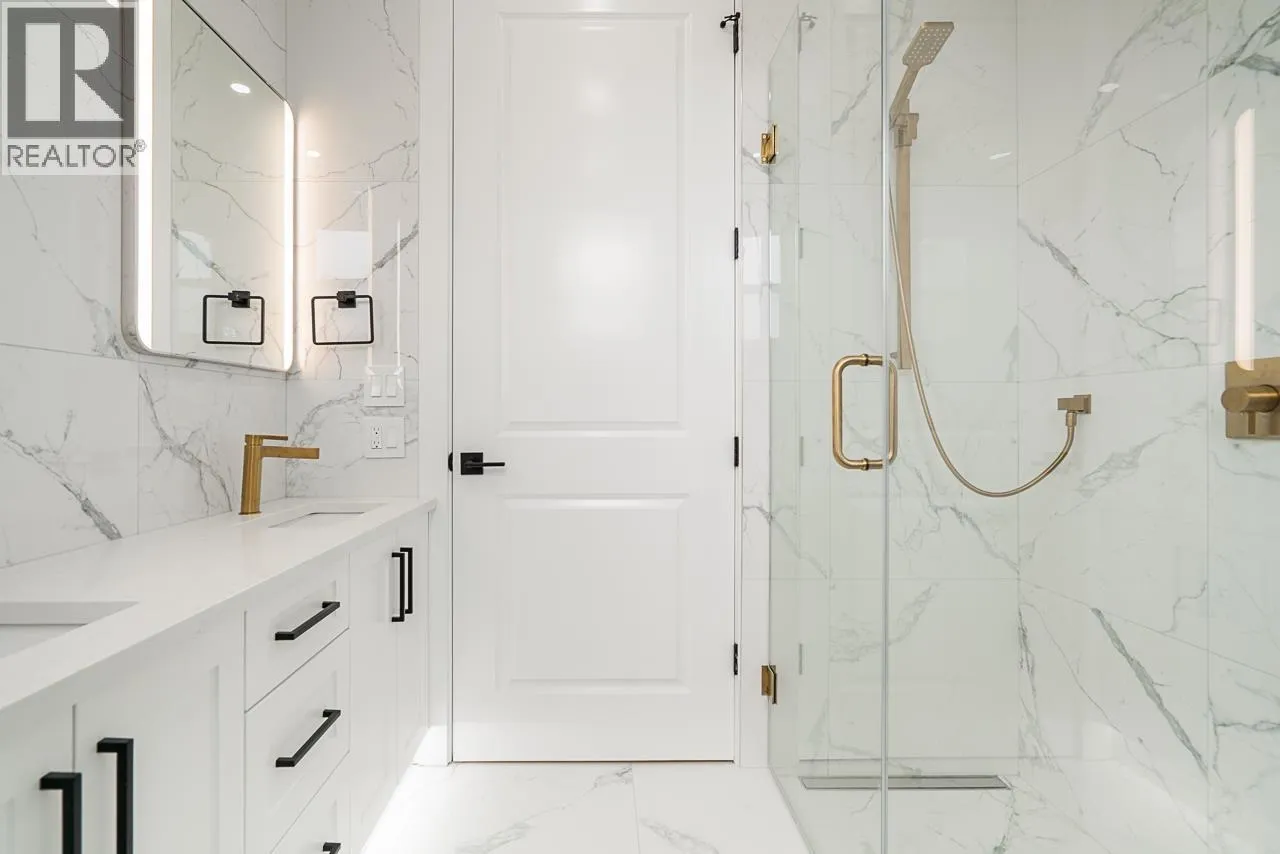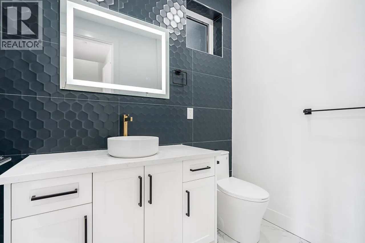 View! Craftsman Style Custom rear duplex on a wonderful full bloom "Cherry Blossom" street. Great location for all & young families alike. Schools, Shopping, Bus, Skytrain w/in 10 minute walk! Open concept main living area gives versatility for personal interior design with access to a huge (19'x10') sunny rear view deck w/gas hook up. Much thoughtful detailing is evident throughout the three levels with a bonus of 549sf of storage (crawl space) not included in sq.ft. Home offers 3 lrg bedrooms, accommodates regular size furniture & 4 full washrooms! Top lvl. bedroom showcases captivating-unobstructed 180 degree views! Fine features; Private yard, quartz counters, heat pump, designer tiles, custom mill work, B/I entertainment units. This home has a lot to offer in this great city of ours! (id:27476)