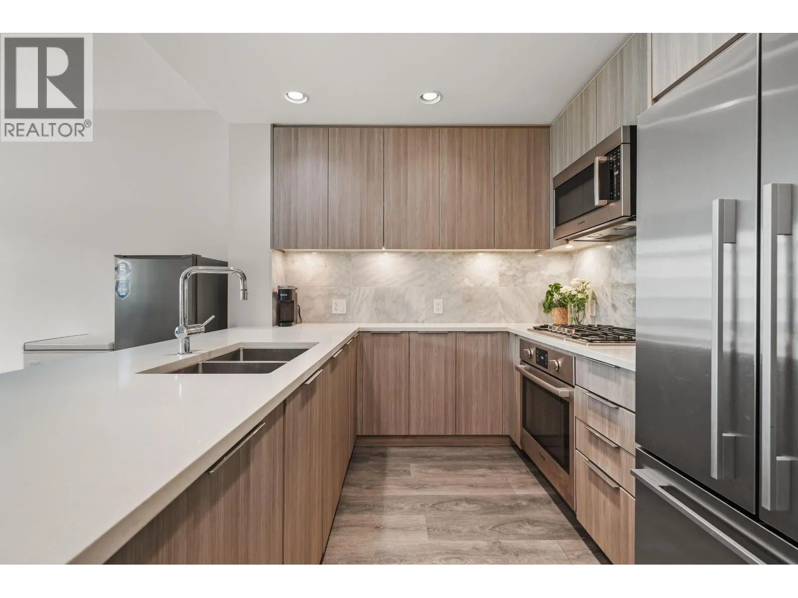 Welcome to R+R by Polygon! This beautifully designed unit features a large, open-plan living and dining room that opens out to north-facing balcony views, adjoining a gourmet kitchen equipped with high-end appliances, polished quartz countertops, and an expansive island that is perfect for entertaining. The primary bedroom offers a luxurious ensuite and a walk-in closet with organizers. Interior highlights include IN-FLOOR RADIANT HEATING and new laminate flooring in both bedrooms! Ideally situated in Vancouver's newest family-oriented and waterfront community, THE RIVER DISTRICT; with an assortment of boutique shops, services and restaurants with an open-air feel of streets and plaza.Future Community Center and elementary school. 1 parking & 1 storage included (id:27476)