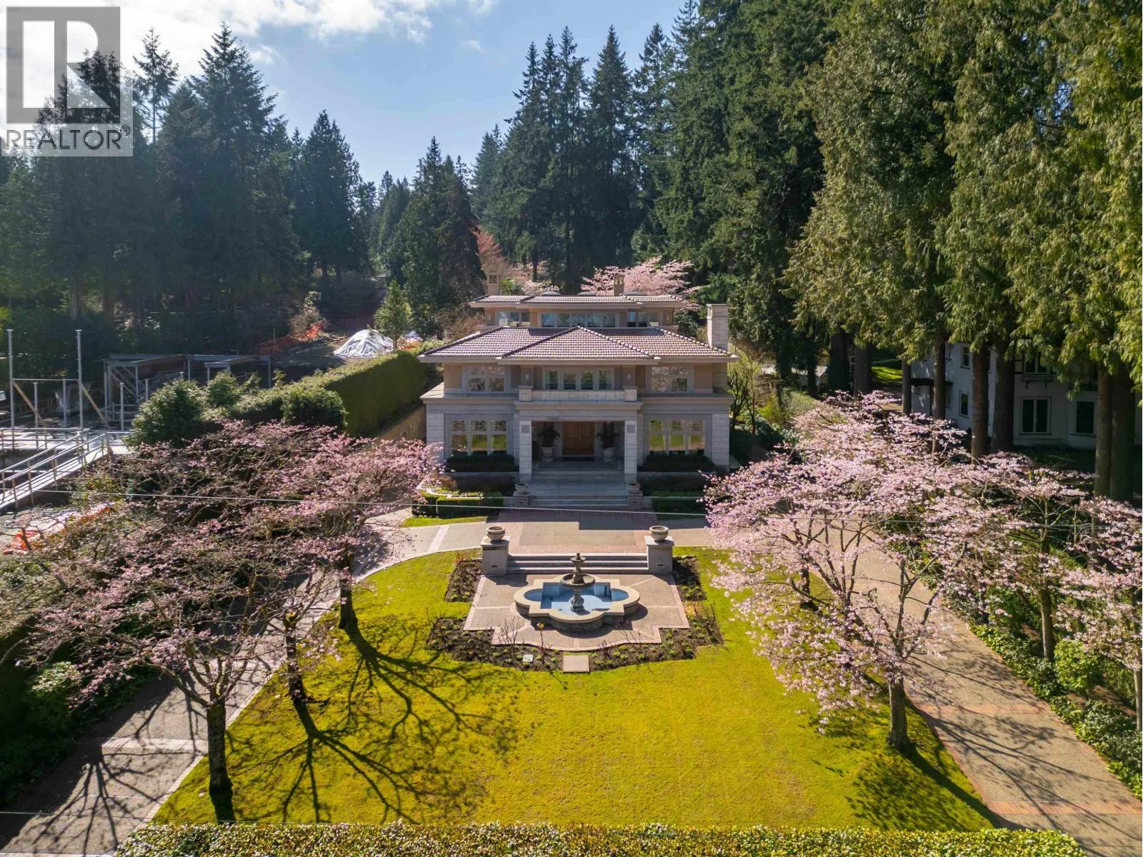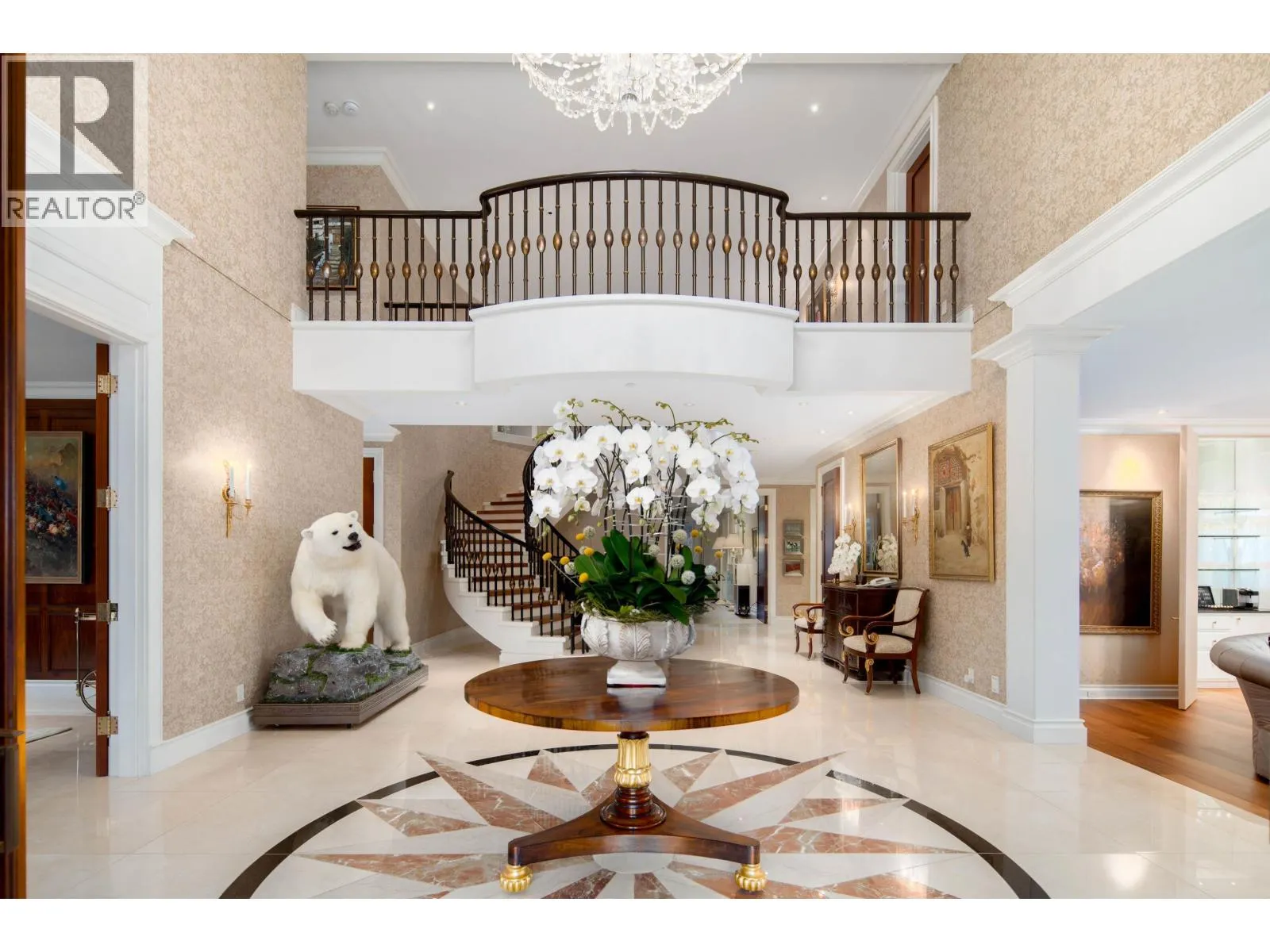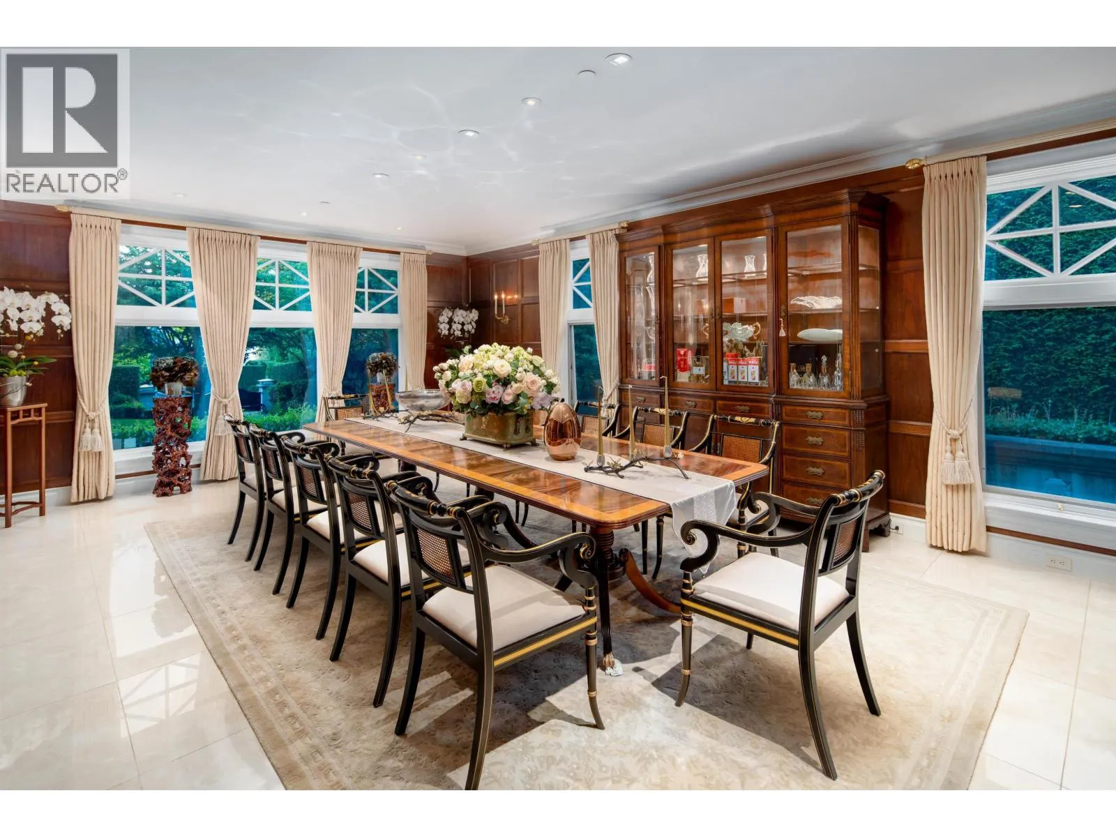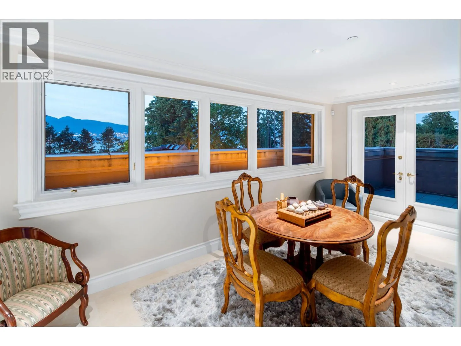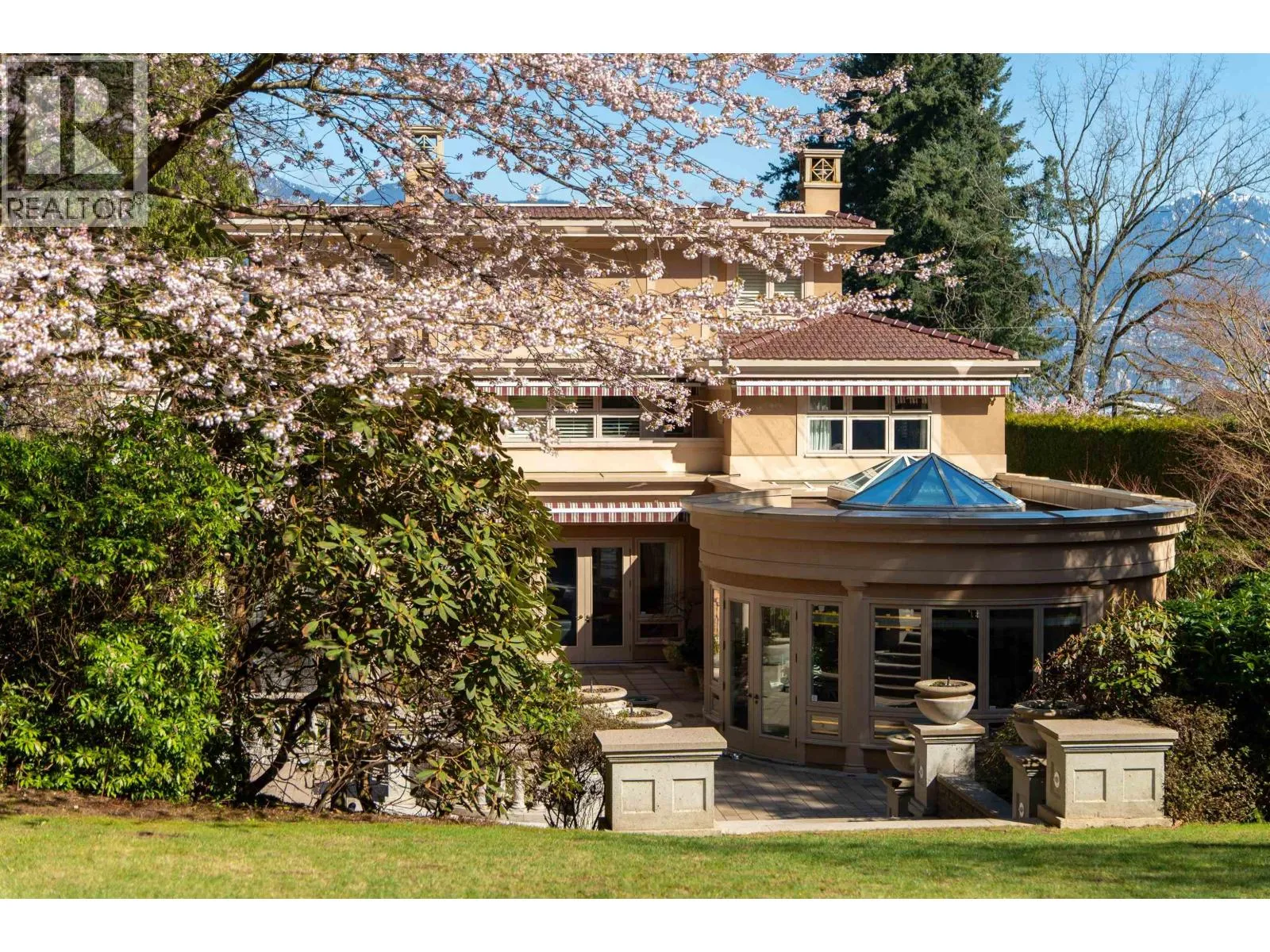 PProminent West Point Grey 'Creme de la Creme'. Behind mature hedges & secured stately gates sits this CONCRETE lavish 8 bdrm 13 baths luxurious mansion w/gorgeous mountain & ocean VIEWs on this massive .882 acre (38420sf) property w/lane access. 4 gold & 5 silver Georgie Awards Winner! 13,000sf of gracious & elegant living crafted by master builder G.Wilson. Entertainment sized principle rooms, library and movie theatre plus 1 ensuite bdrm on the main; 5 bdrms & 5 baths on the 2nd flr; the master suite occupies the entire 3rd flr. A huge rec rm, wet bar and a 2-bdrm nanny's quarter in the basement. Lots of updates: roof, flooring, A/C, boiler, newly added smart home sys, O/D BBQ, electric awnings by the current meticulous owner. Heated circular driveway; 5 car attached garage; ELEVATOR. (id:27476)