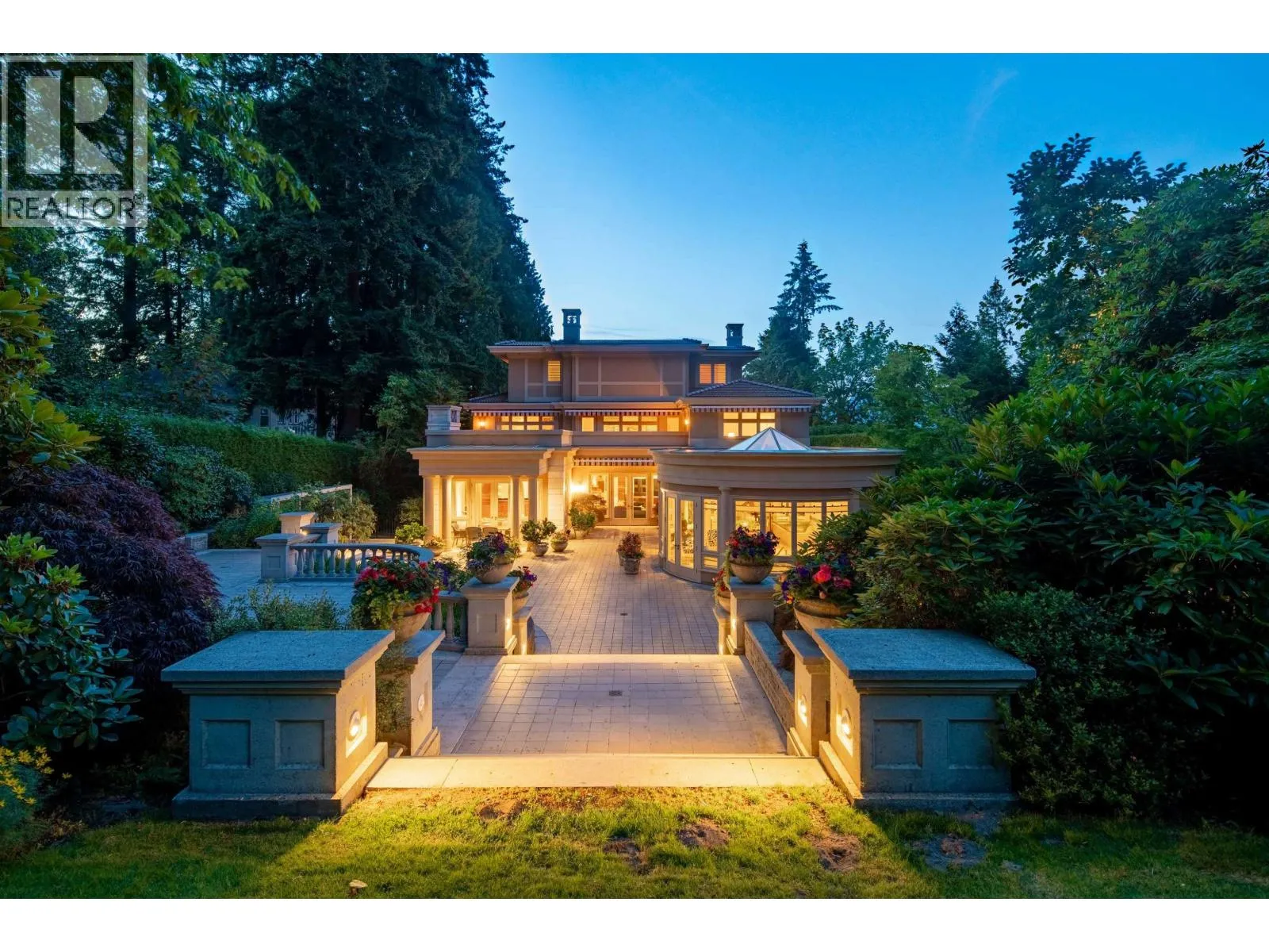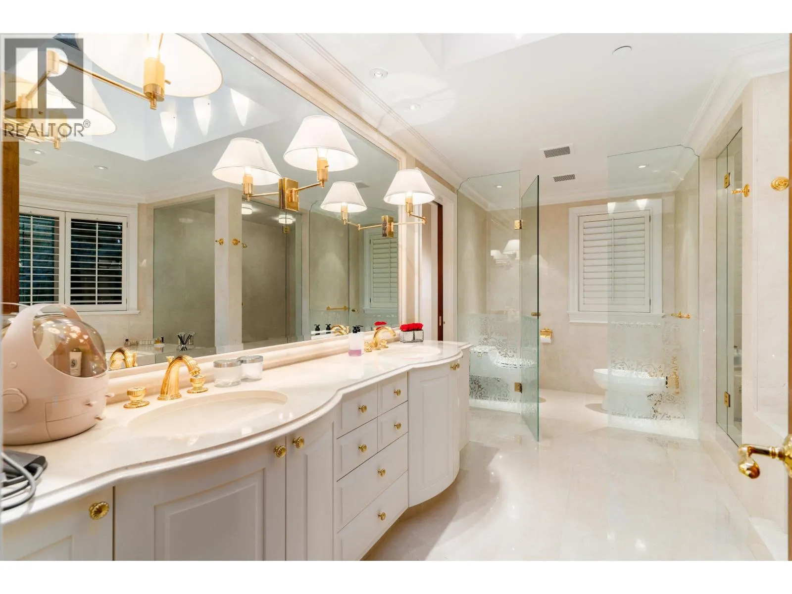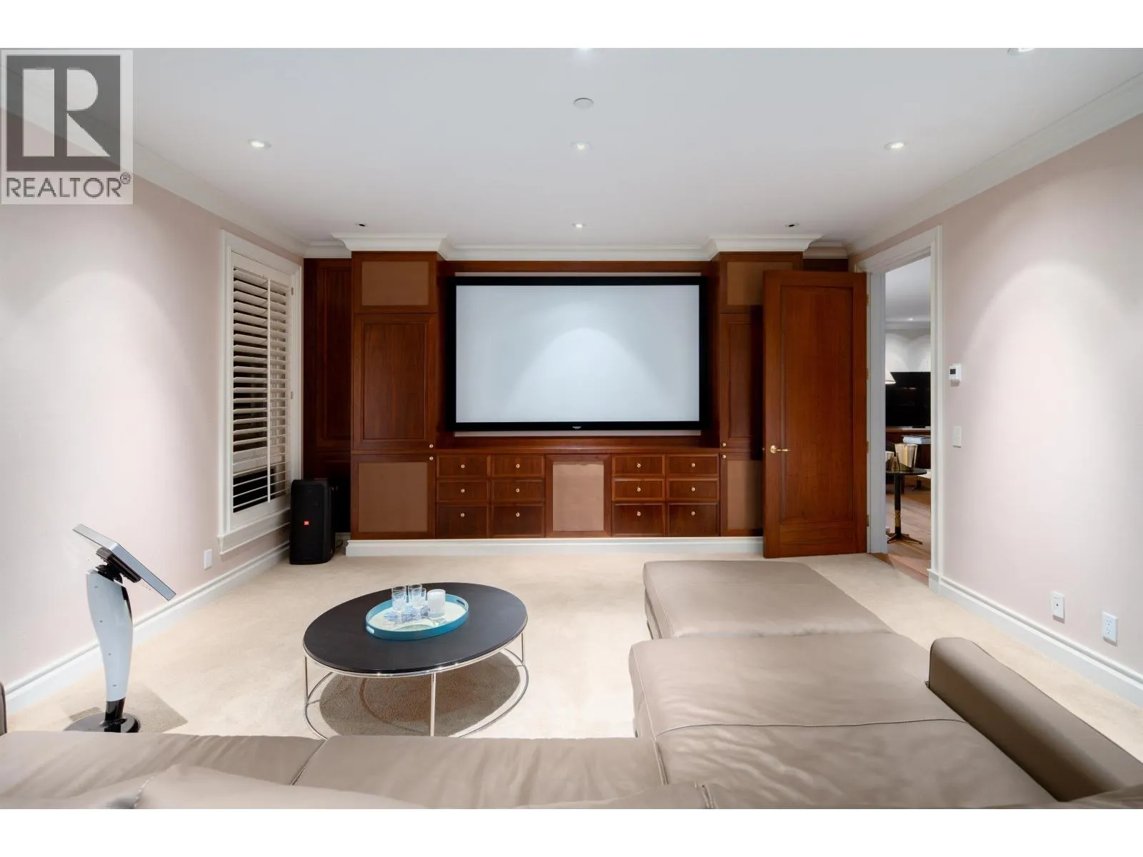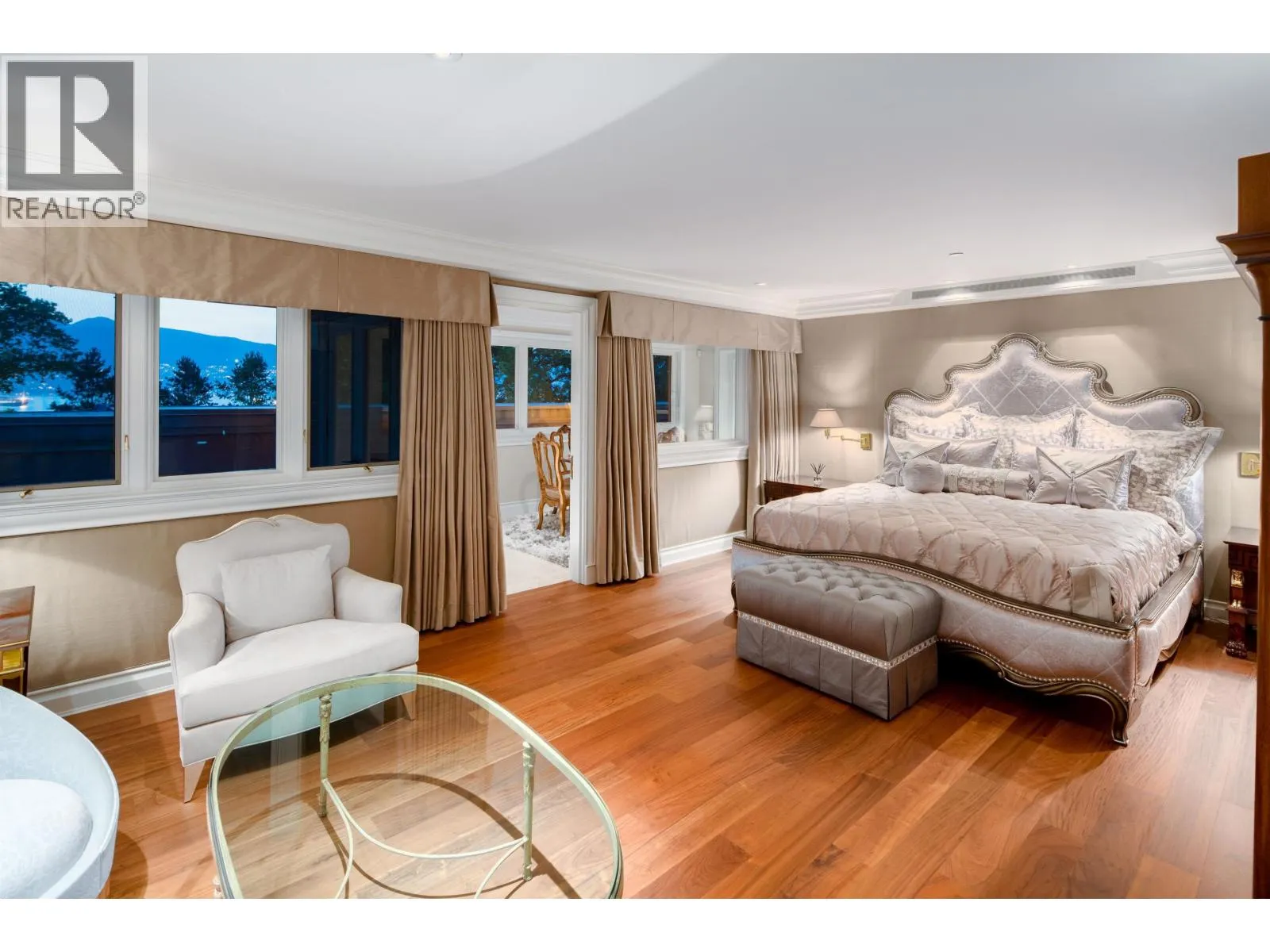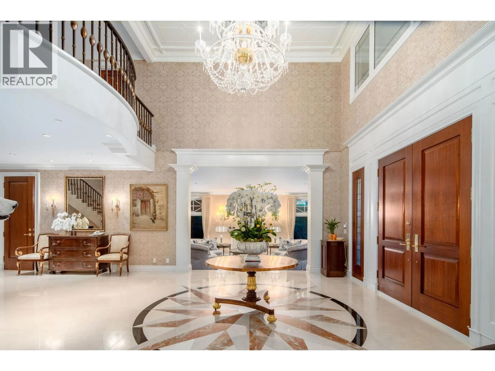 PProminent West Point Grey 'Creme de la Creme'. Behind mature hedges & secured stately gates sits this CONCRETE lavish 8 bdrm 13 baths luxurious mansion w/gorgeous mountain & ocean VIEWs on this massive .882 acre (38420sf) property w/lane access. 4 gold & 5 silver Georgie Awards Winner! 13,000sf of gracious & elegant living crafted by master builder G.Wilson. Entertainment sized principle rooms, library and movie theatre plus 1 ensuite bdrm on the main; 5 bdrms & 5 baths on the 2nd flr; the master suite occupies the entire 3rd flr. A huge rec rm, wet bar and a 2-bdrm nanny's quarter in the basement. Lots of updates: roof, flooring, A/C, boiler, newly added smart home sys, O/D BBQ, electric awnings by the current meticulous owner. Heated circular driveway; 5 car attached garage; ELEVATOR. (id:27476)