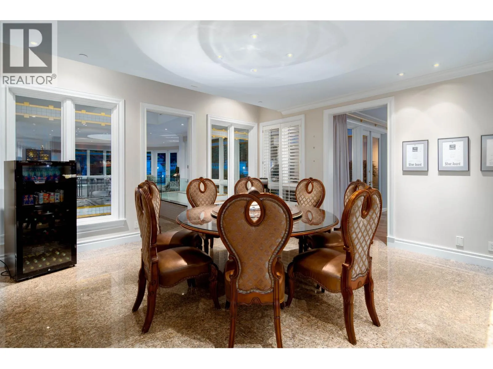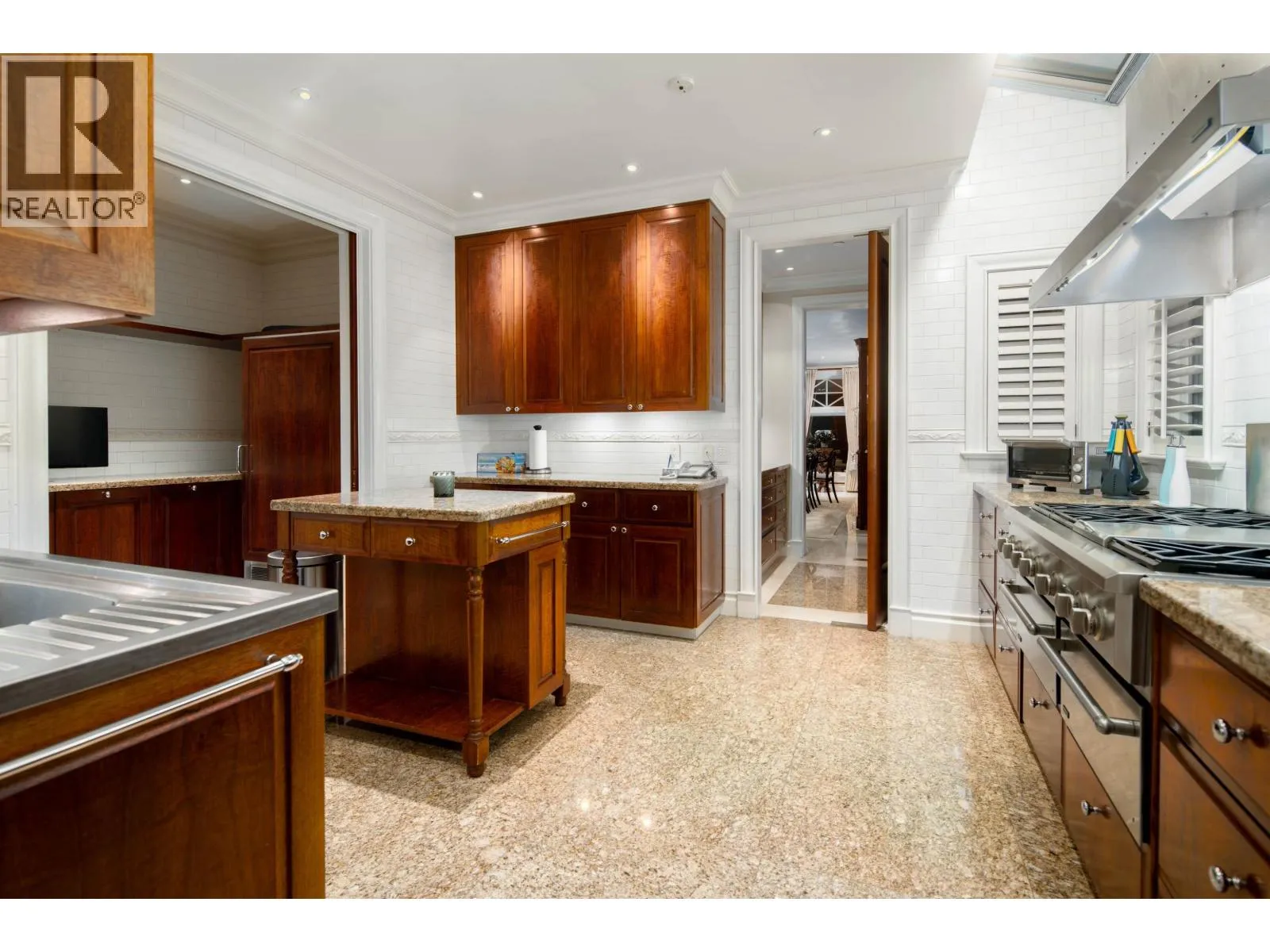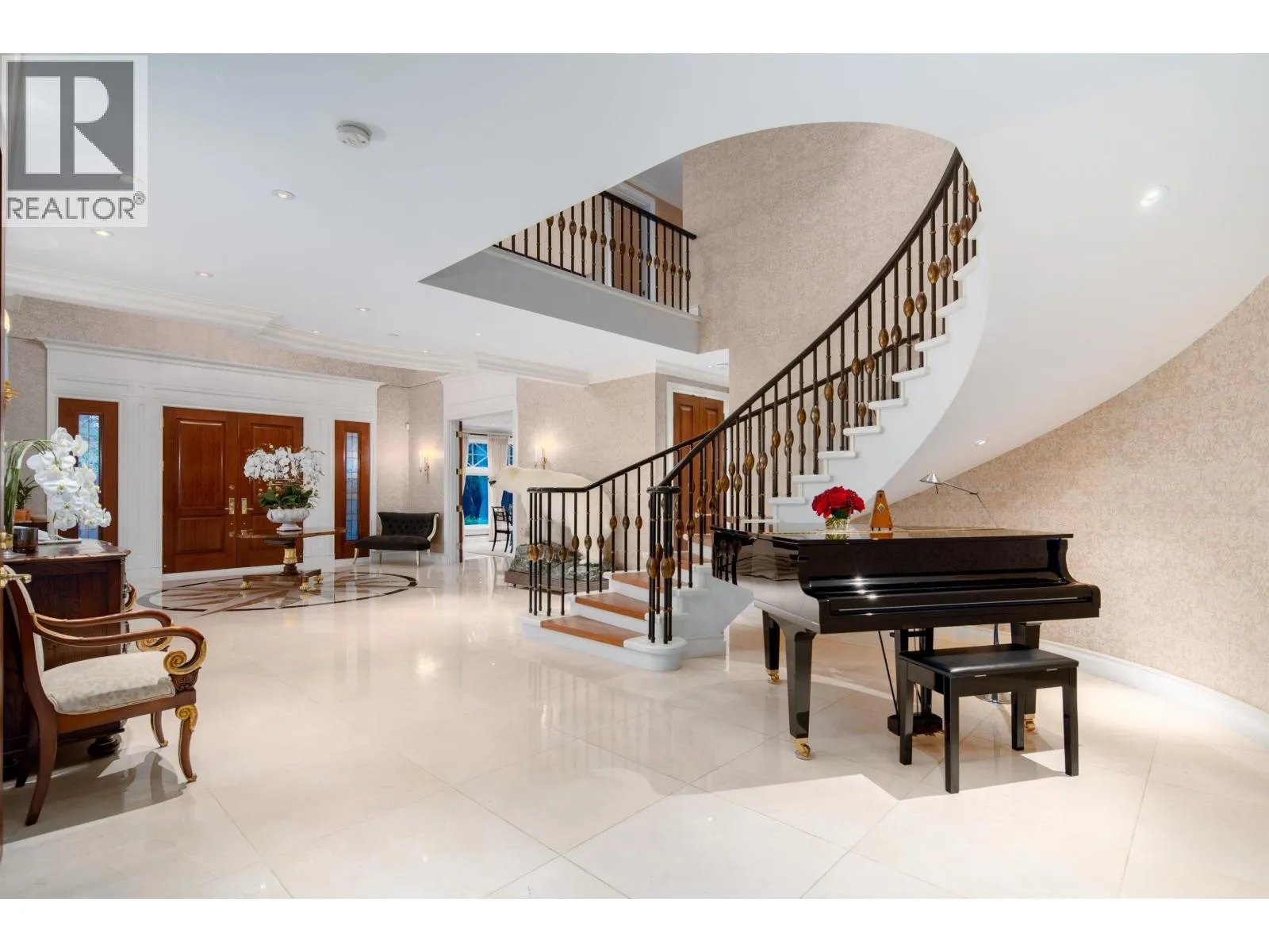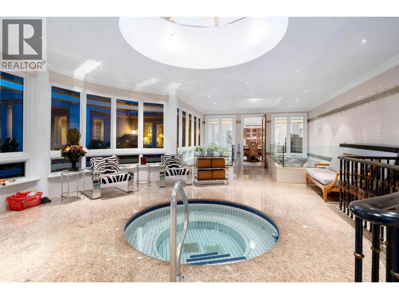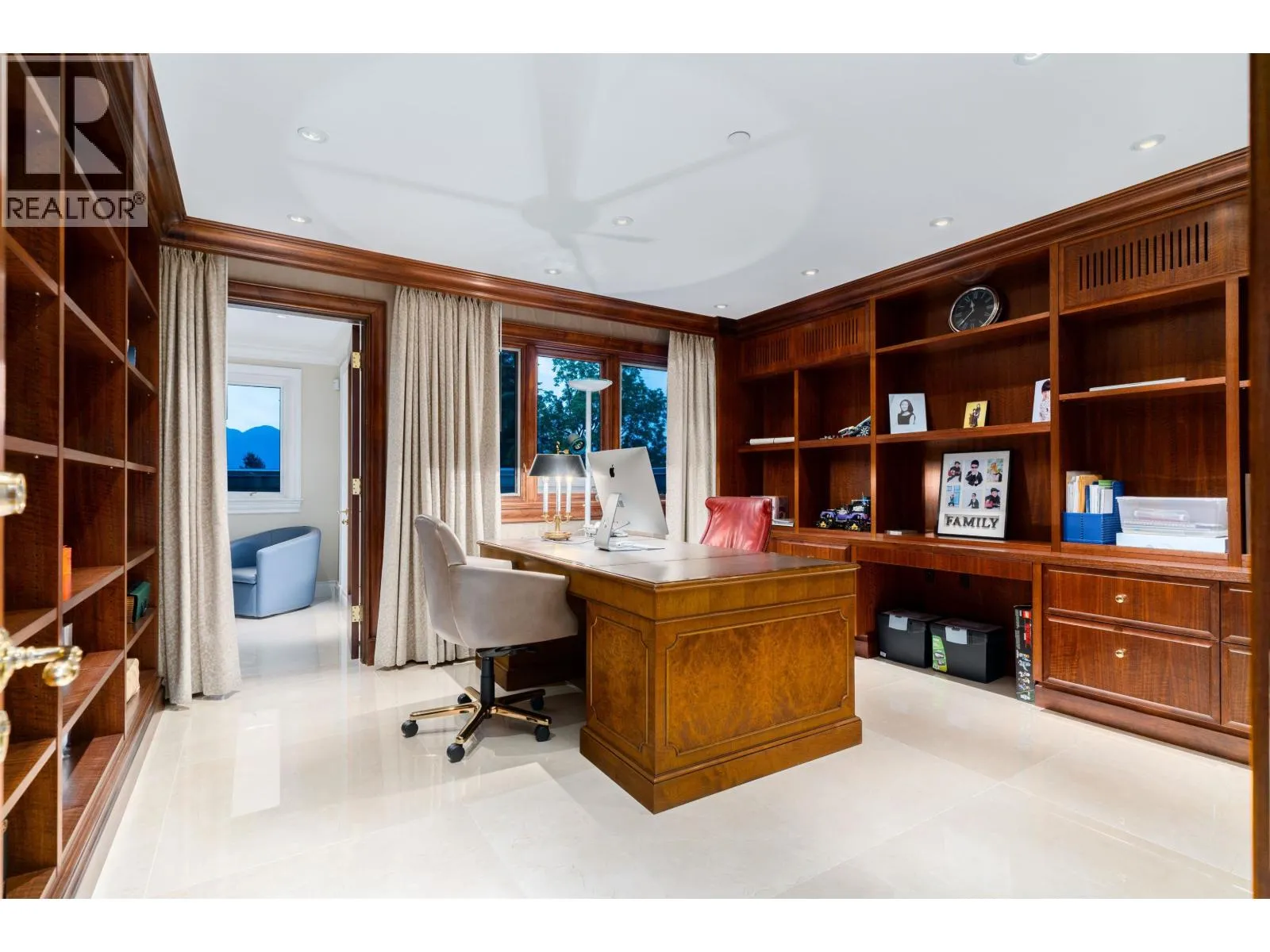 PProminent West Point Grey 'Creme de la Creme'. Behind mature hedges & secured stately gates sits this CONCRETE lavish 8 bdrm 13 baths luxurious mansion w/gorgeous mountain & ocean VIEWs on this massive .882 acre (38420sf) property w/lane access. 4 gold & 5 silver Georgie Awards Winner! 13,000sf of gracious & elegant living crafted by master builder G.Wilson. Entertainment sized principle rooms, library and movie theatre plus 1 ensuite bdrm on the main; 5 bdrms & 5 baths on the 2nd flr; the master suite occupies the entire 3rd flr. A huge rec rm, wet bar and a 2-bdrm nanny's quarter in the basement. Lots of updates: roof, flooring, A/C, boiler, newly added smart home sys, O/D BBQ, electric awnings by the current meticulous owner. Heated circular driveway; 5 car attached garage; ELEVATOR. (id:27476)