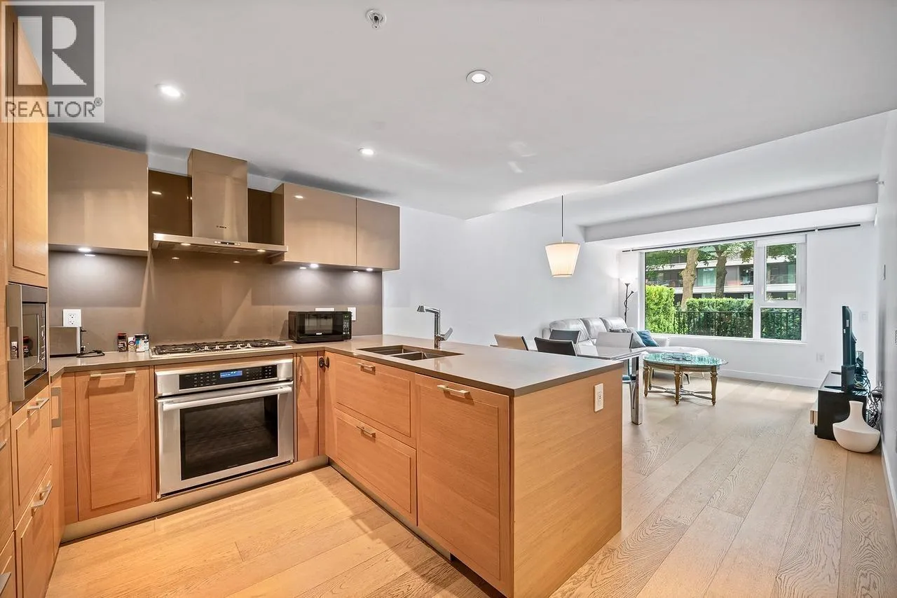 Rarely found south facing two bedrooms unit with a big patio facing to the garden at Hudson House of renowned Shannon Wall. This perfectly laid out unit features a large living and dining area, spacious bedrooms, large chef's kitchen with top-of-the-line appliances. Includes A/C, wide plank wood flooring. Enjoy the spectacular landscaped 10 acre grounds offering fresh green space and heritage architecture, an outdoor pool, gym, concierge & so much more. Excellent school catchments. Easy access to transit, Downtown, YVR & minutes away from Kerrisdale Village, Restaurants, Golf Course, Parks & South Granville. 2 side by side Parking 1 Storage. Ground Floor. OPEN HOUSE SUNDAY NOV 16 1-3PM. (id:27476)