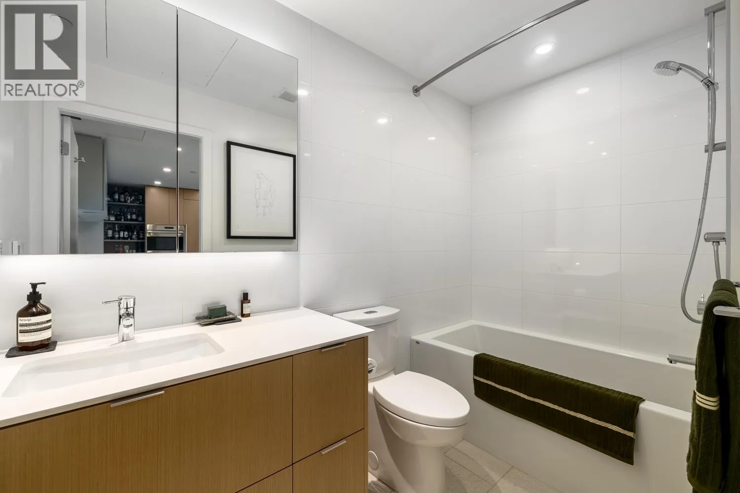 Situated in the heart of Mount Pleasant and only a short distance to the Downtown core is this well appointed 2 bed/2 bath executive style home. Built by Chard Developments in 2020 this home features high end appliances including WOLF cook top and ovens as well as a Sub Zero fridge that would be the envy of any aspiring home Chef. The large kitchen island means many can help prep at once if you prefer. The bedrooms are situated at either side of the home giving peace and quiet and privacy with the primary bedroom including a large en-suite bathroom. The second bathroom features a great tub for those that prefer to soak. Add to the features a nice balcony for unwinding at the end of the day staring off to the city lights or North Shore mountains. (id:27476)