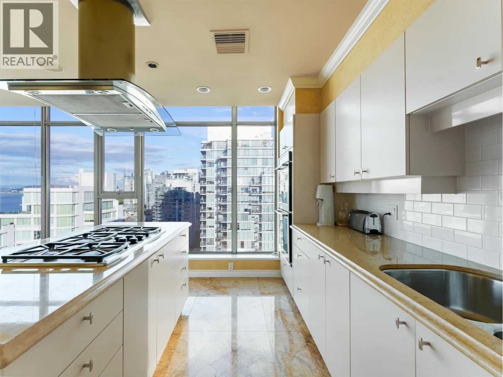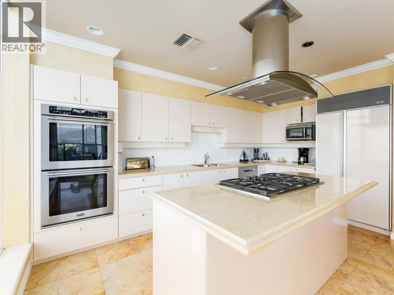 This stunning three bedroom home features 270 degree views of Burrard Inlet, the North Shore Mountains, and Stanley Park and was extensively customized by the current owners to create house-like living spaces, perfect for entertaining family and friends. Exquisitely finished, with extensive use of marble and venetian plaster throughout and complimented by Berber carpets, this home in the sky is in pristine condition and situated in the quiet and serene Bayshore Gardens enclave next to Stanley Park. Easy walkability to everything the city has to offer; Seawall, restaurants, groceries, and coffee shops, the location is second to none. First class building amenities include a concierge, gym, and sauna and a storage locker and three secure underground parking stalls are included. (id:27476)