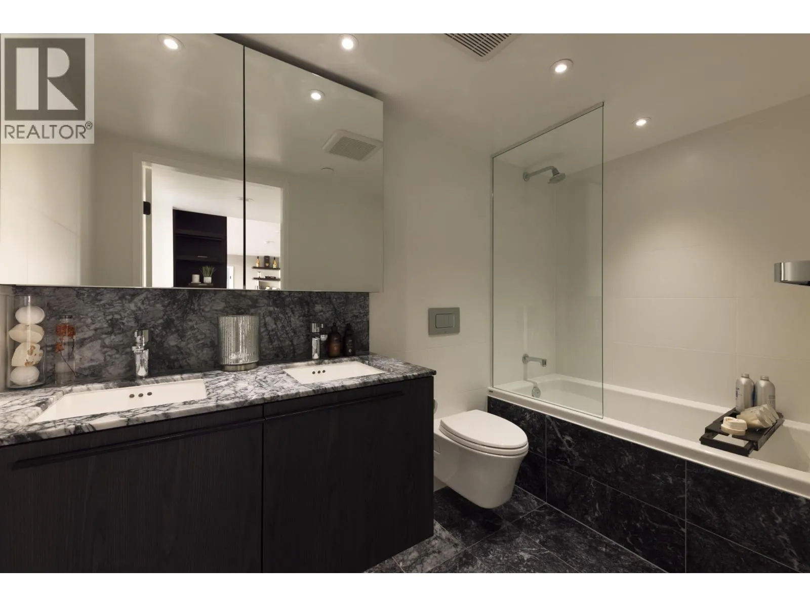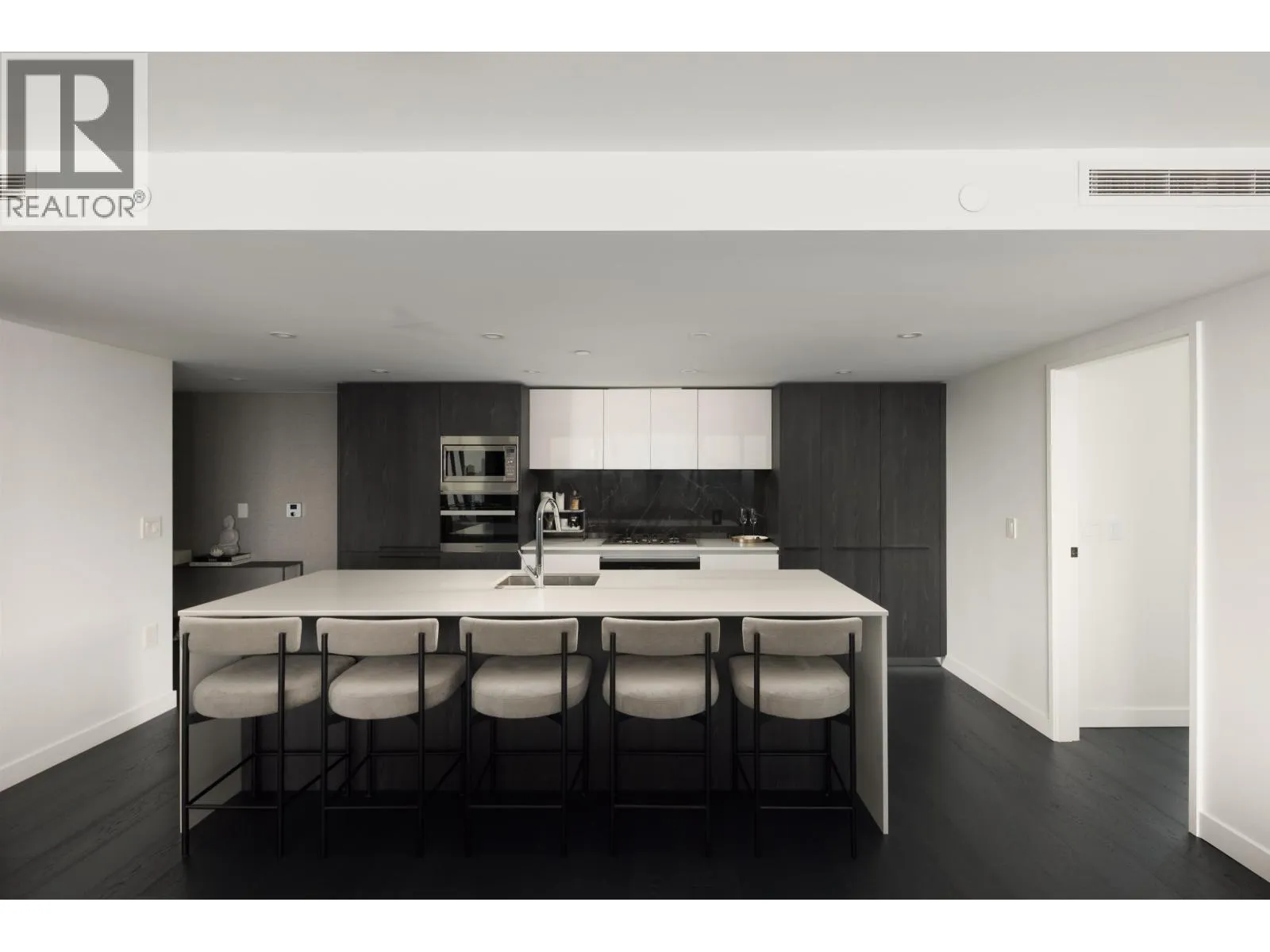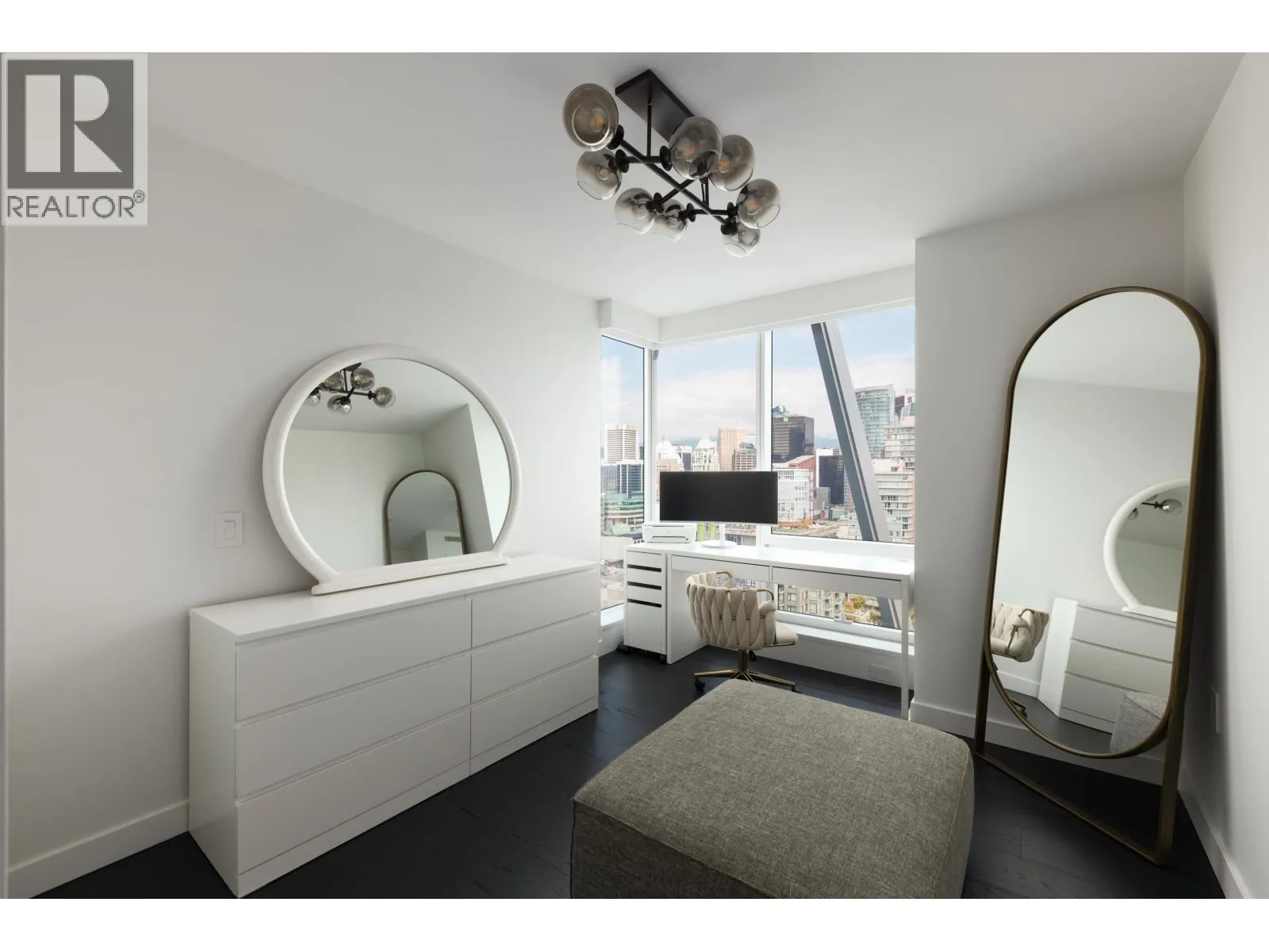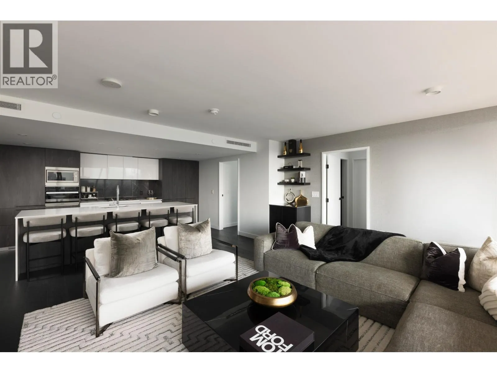 Elevated & updated corner home at 8X on the Park with panoramic views of False Creek, city, and mountains. This refined 3 bed, 2 bath residence features a 10ft natural stone island, integrated Miele appliances, custom millwork, powered blinds, and floor-to-ceiling windows. The open plan flows to an oversized covered patio with herringbone wood decking. Elegant bedrooms, a reimagined walk-in closet, engineered hardwood, natural tile, & A/C throughout complete the home. Includes 2 side-by-side parking, storage, and bike locker. Enjoy world-class amenities: concierge, fitness centre, and rooftop oasis. A rare, turnkey offering in one of Vancouver's premier buildings. (id:27476)