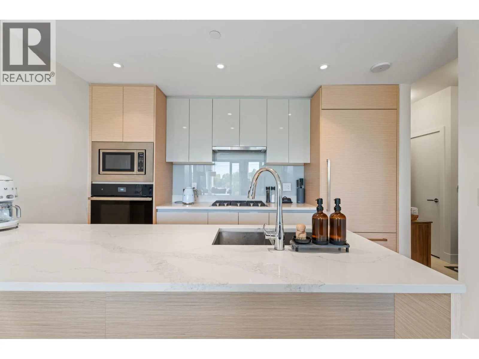 Welcome to Avalon 3 by Wesgroup in the heart of the thriving River District! This bright and spacious 2 Bed + Den, 2 Bath home offers a functional 945 SF layout with contemporary finishes. Enjoy wide-plank laminate flooring, premium Jenn-Air appliances, gas range, quartz counters, under-cabinet lighting, and in-suite laundry. South-facing exposure fills the space with natural light, while central A/C & heating keep you comfortable year-round. Residents enjoy exceptional amenities-rooftop pool & hot tub, fully equipped gym, concierge, and a 20,000 SF courtyard. Steps to groceries, banks, dining, shops, and transit with quick access to Metrotown. Includes 1 secure parking. A stylish home in a vibrant, walkable community! (id:27476)