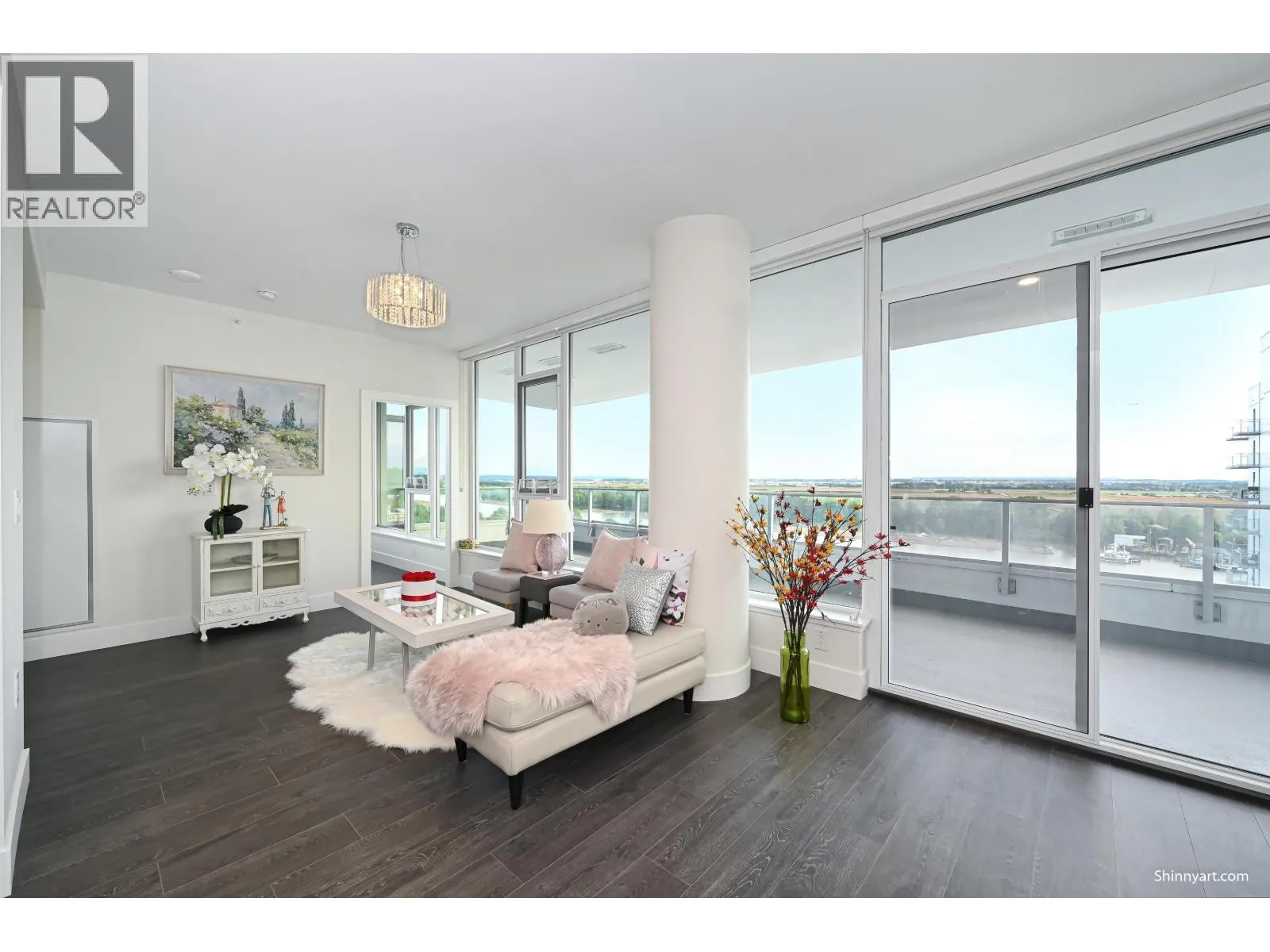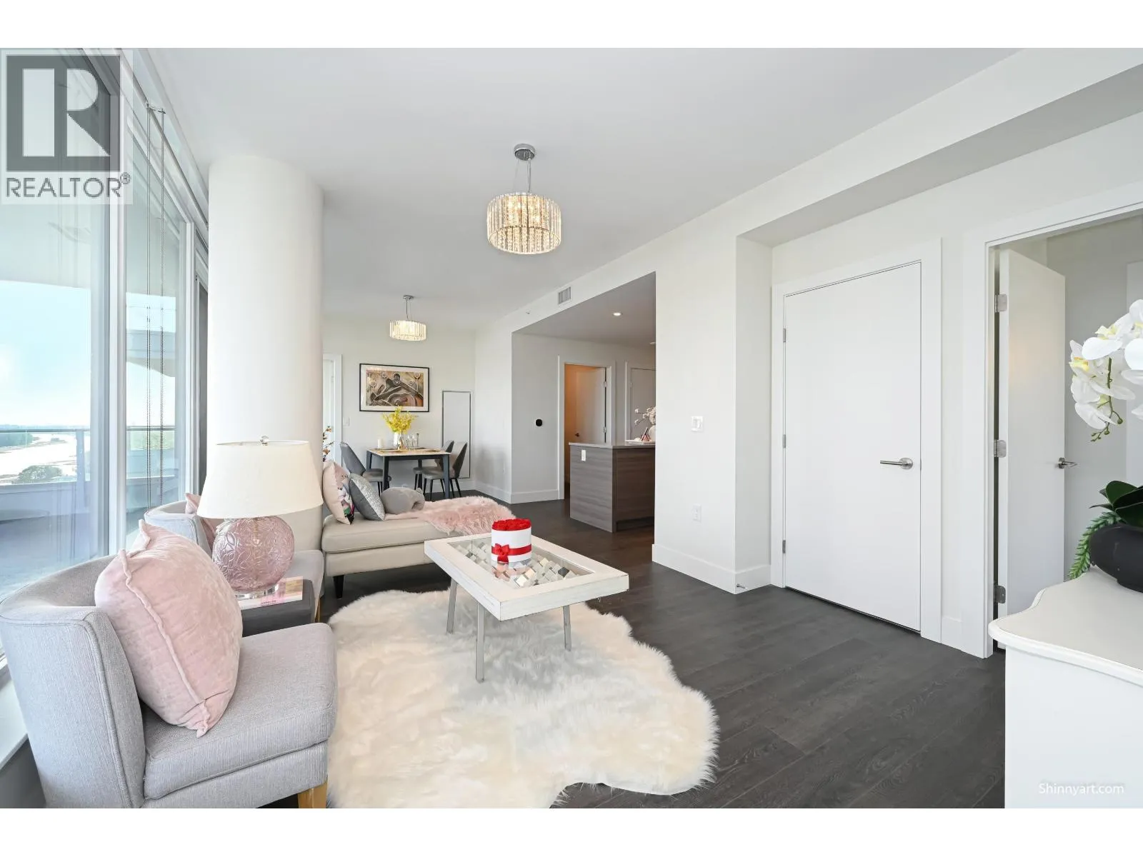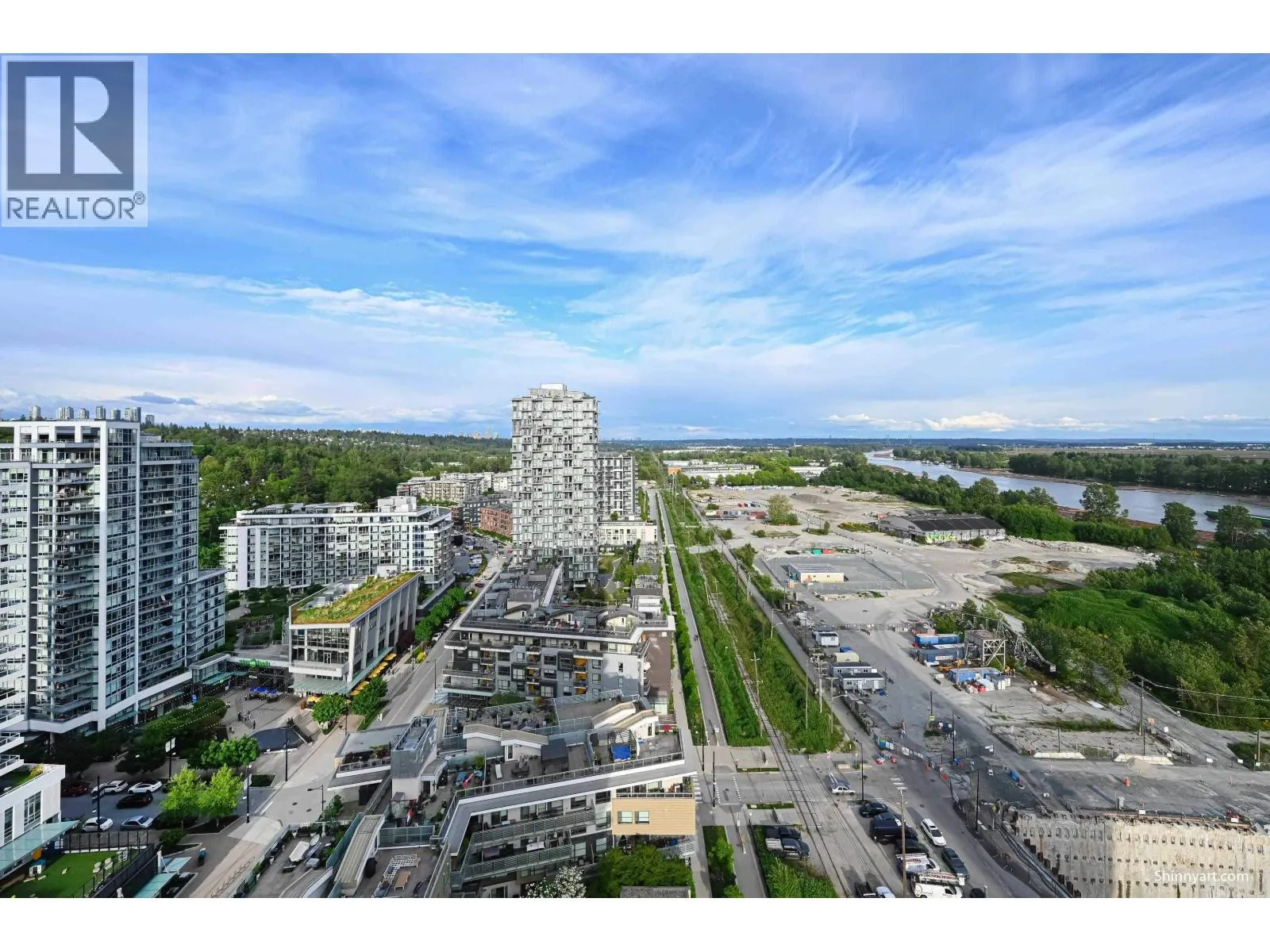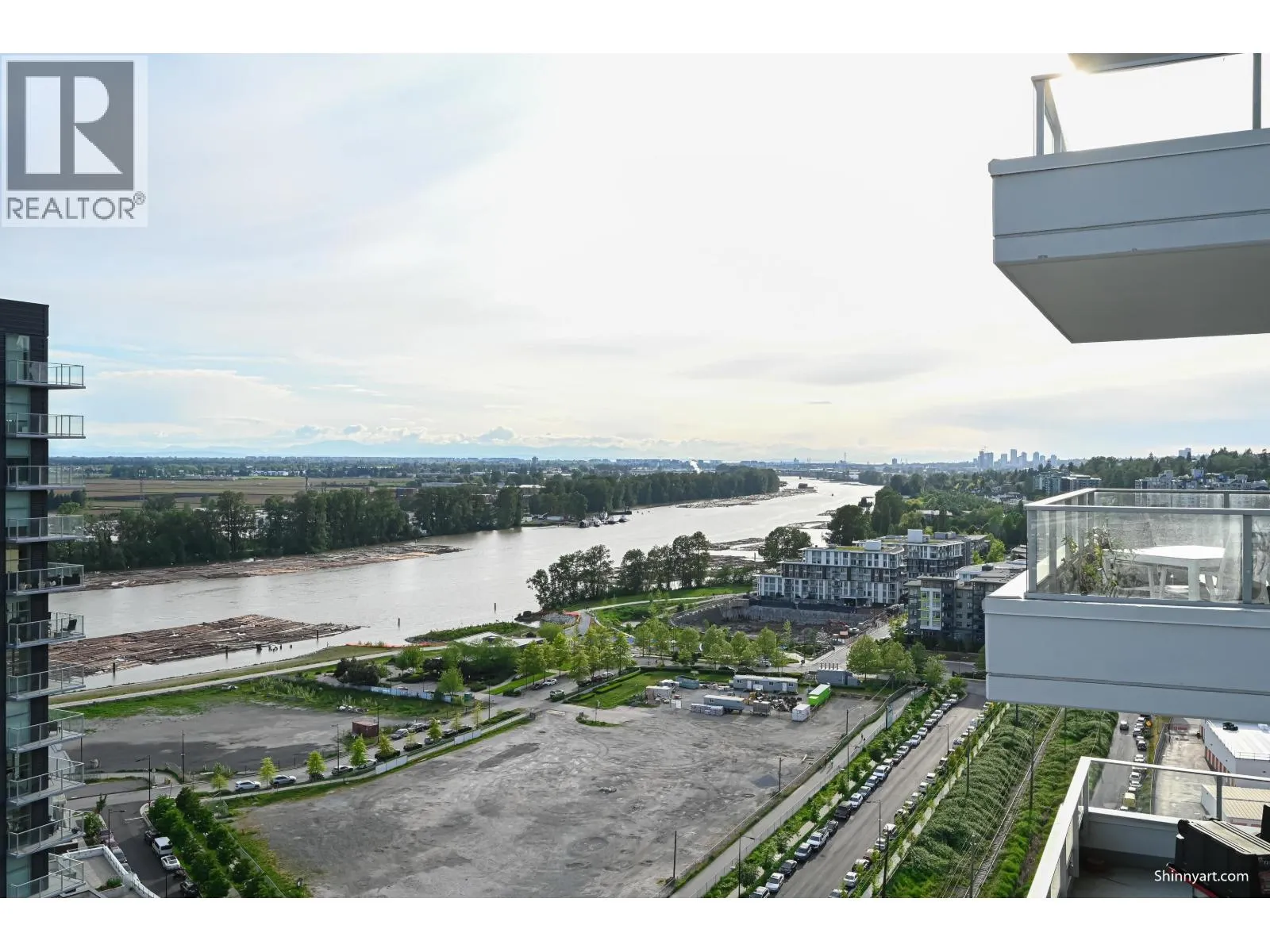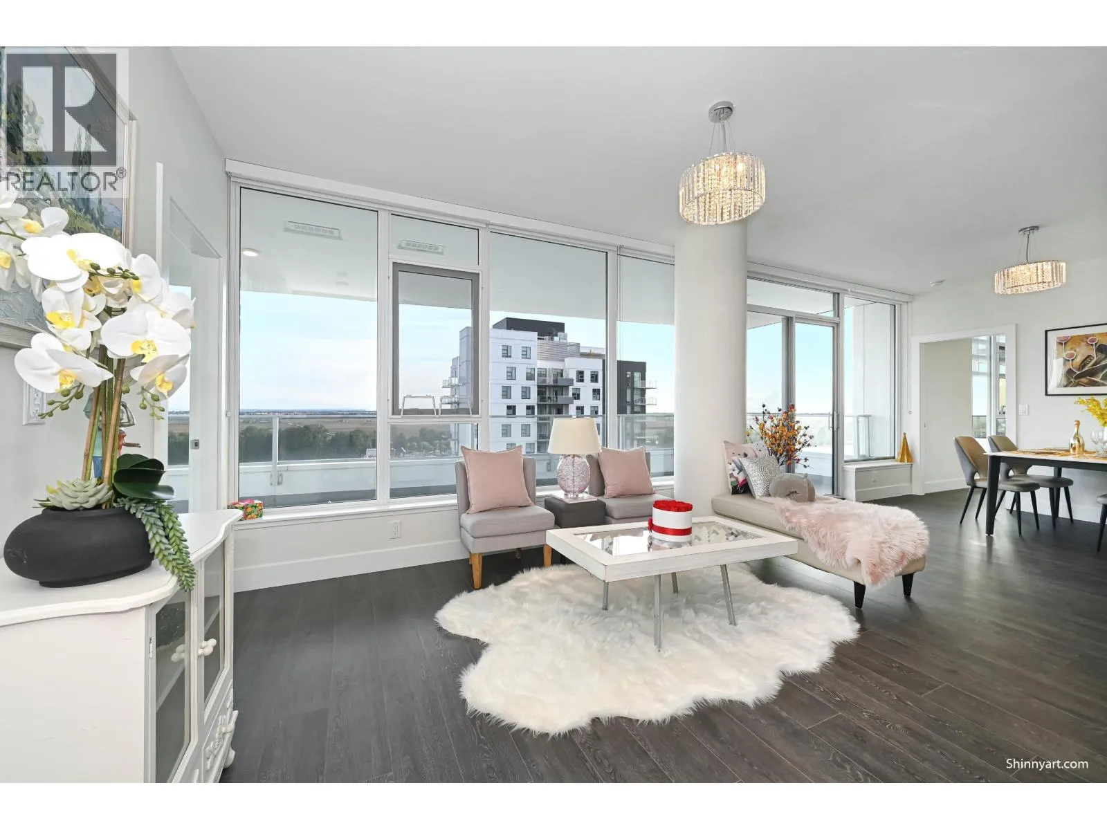 MODE-Vancouver's last waterfront and tallest concrete highrise building in serene River District. This extra-large unit features SE corner 3 bed + 1 den, 2 bath with 1,100 sq.ft of living space, a 332 sq.ft south-facing balcony overlooking the Fraser River and Mt Baker. The functional layout with open-concept kitchen, dining and living areas allows natural light to flow through every corner, 3 bedroom separation for good privacy.Features 10-foot ceilings, hardwood flooring throughout,kitchen with high-end appliances,high efficiency heating and cooling system. Convenient location, steps from Save-on Foods, Shoppers Drug Mart, Liquor store, banks, bus, with green space along with gym, hot tub,media room, and business center. 2 parkings and 1 with EV, 1 Storage, 1 Bicycle Storage (id:27476)