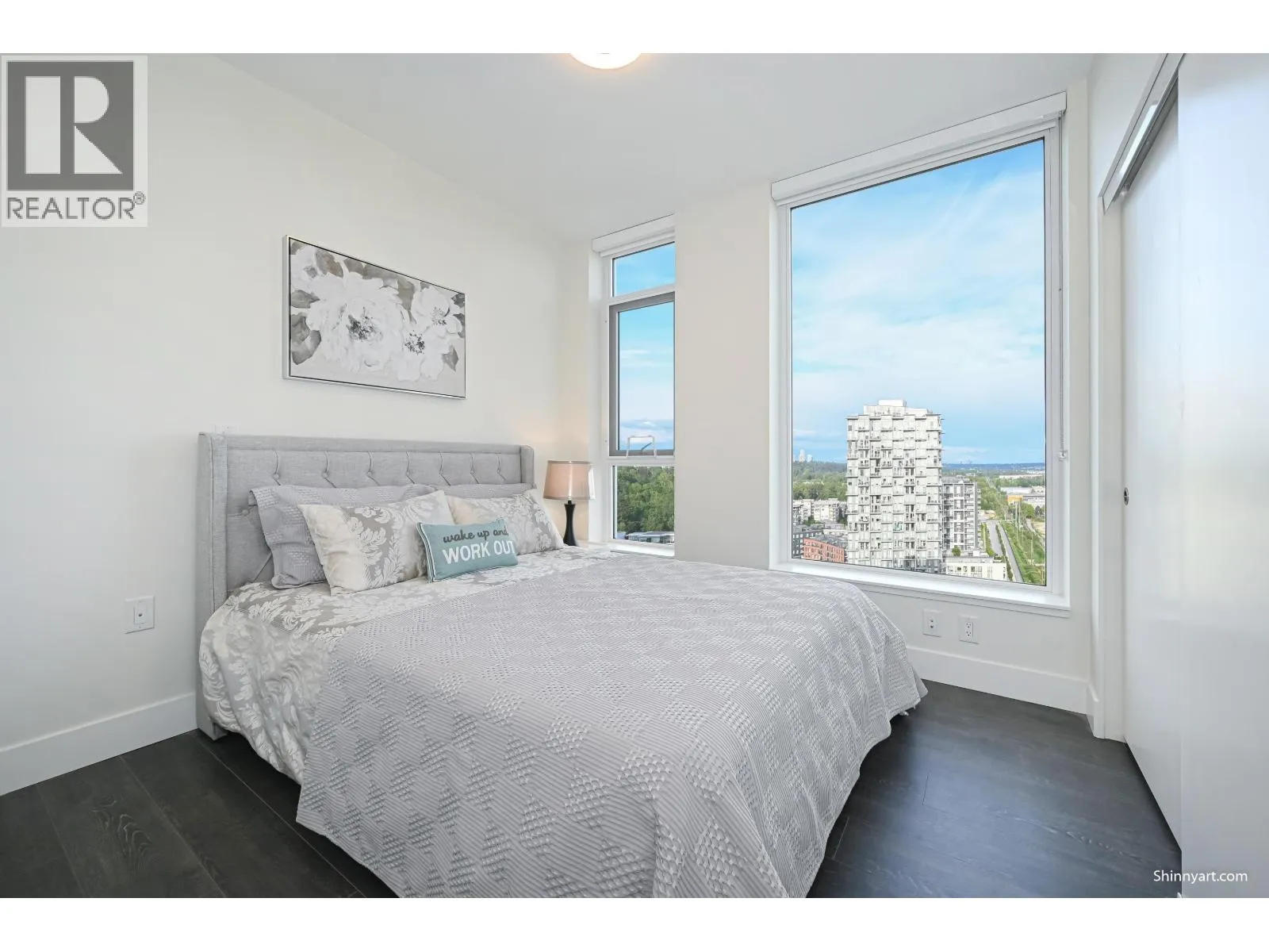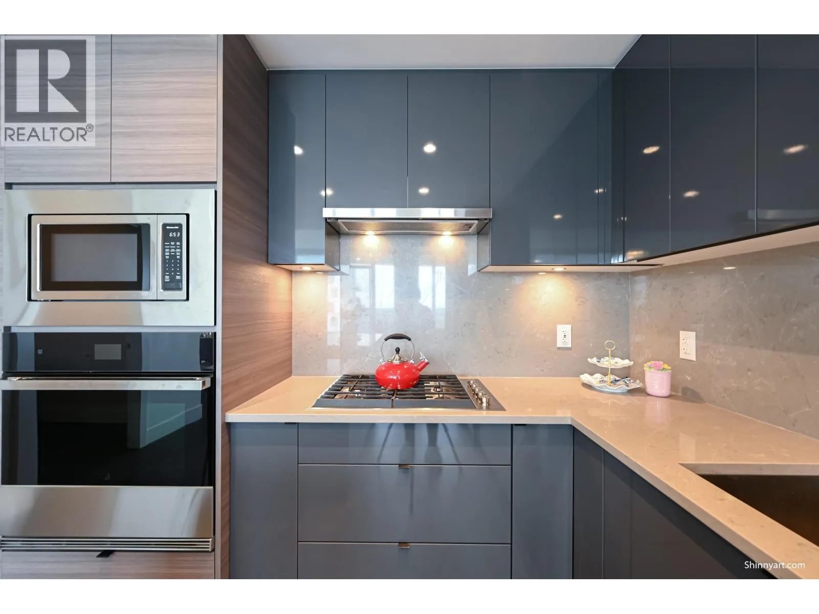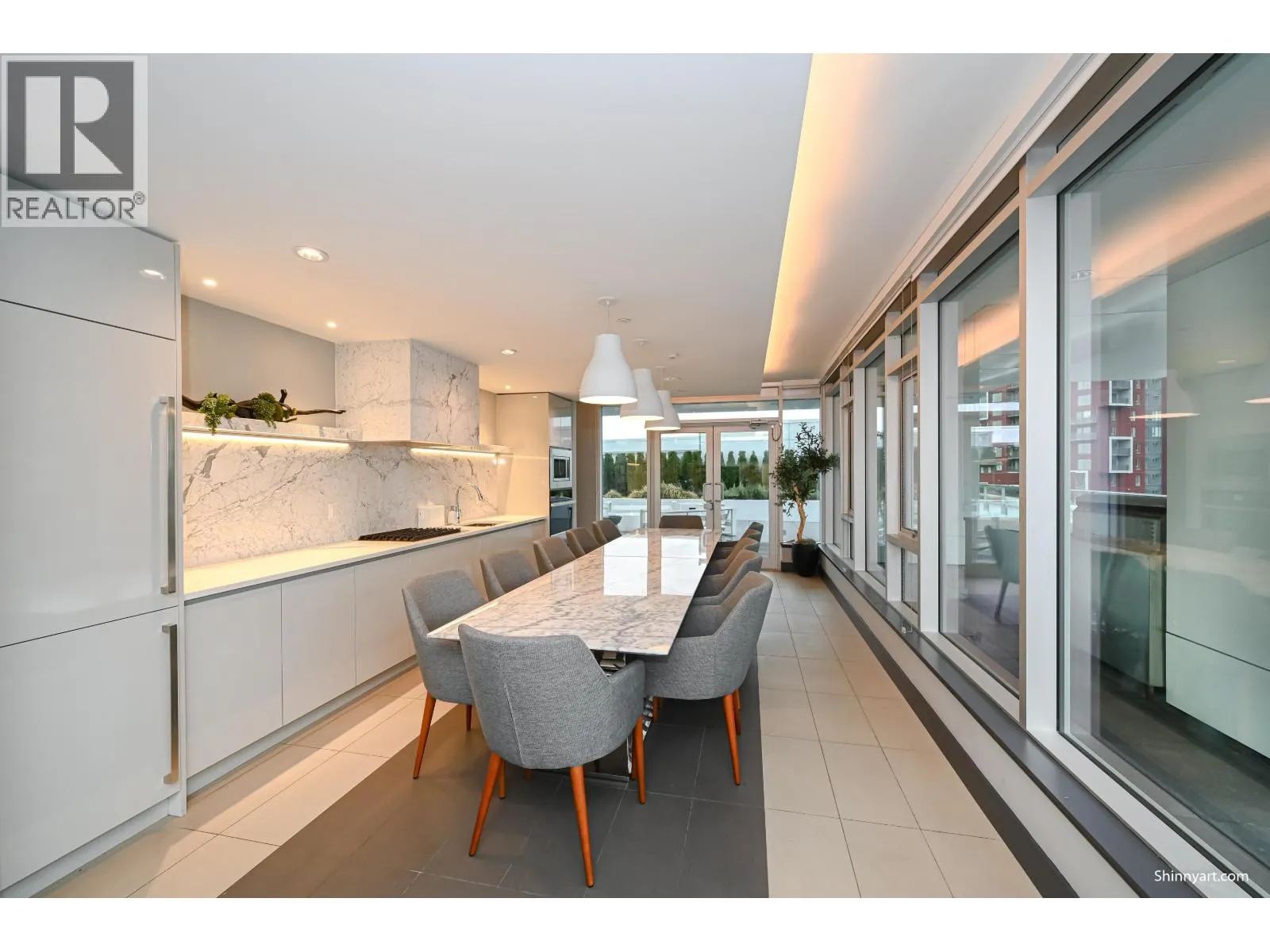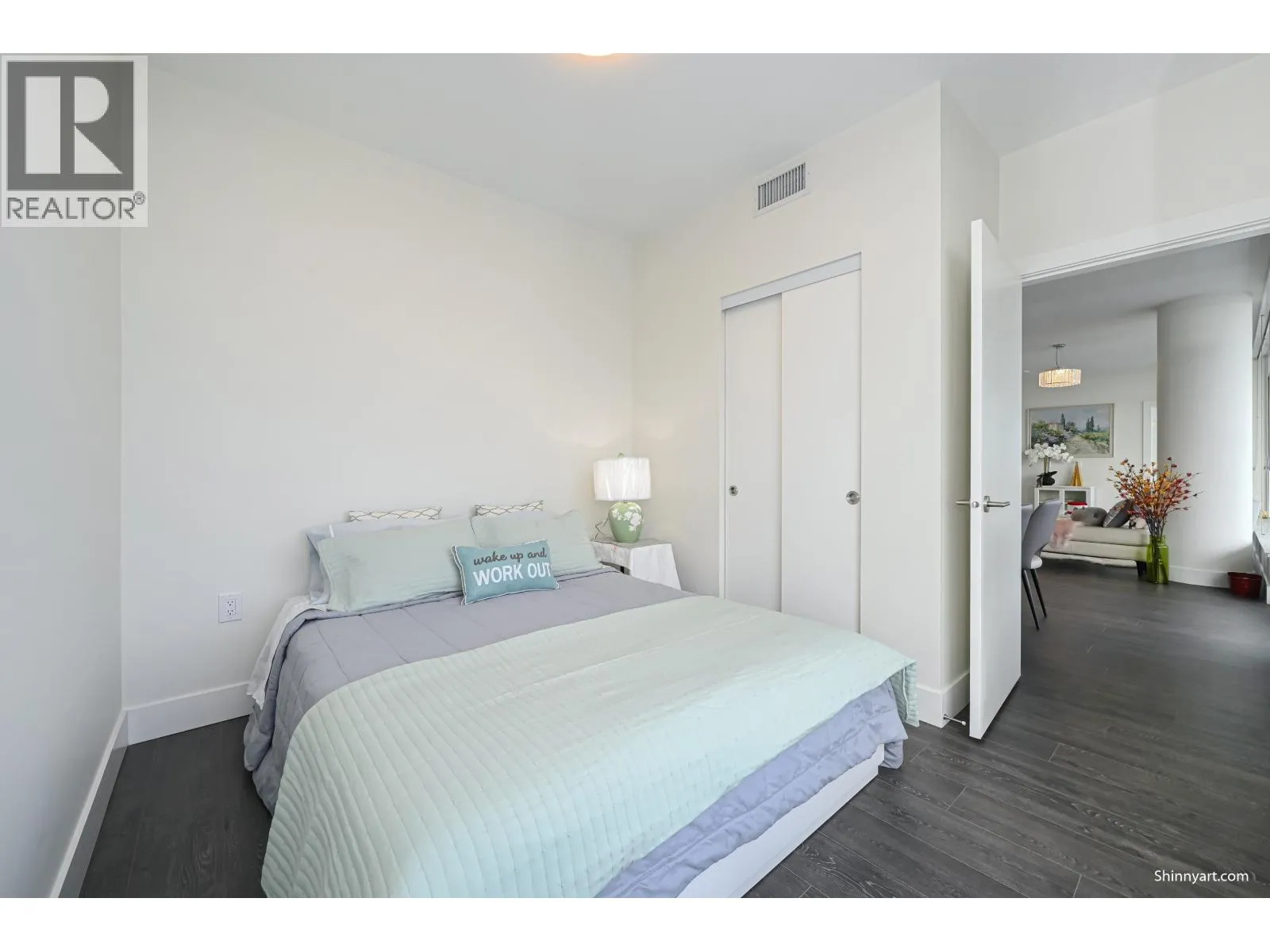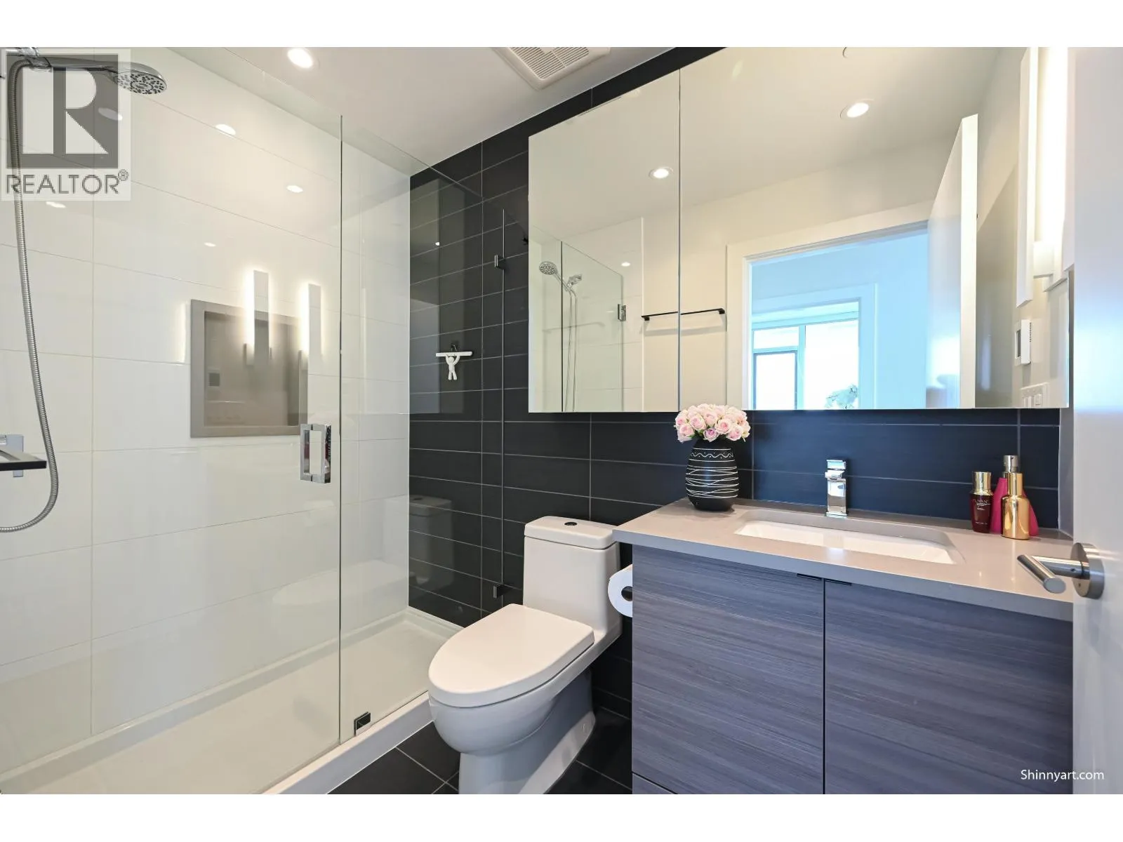 MODE-Vancouver's last waterfront and tallest concrete highrise building in serene River District. This extra-large unit features SE corner 3 bed + 1 den, 2 bath with 1,100 sq.ft of living space, a 332 sq.ft south-facing balcony overlooking the Fraser River and Mt Baker. The functional layout with open-concept kitchen, dining and living areas allows natural light to flow through every corner, 3 bedroom separation for good privacy.Features 10-foot ceilings, hardwood flooring throughout,kitchen with high-end appliances,high efficiency heating and cooling system. Convenient location, steps from Save-on Foods, Shoppers Drug Mart, Liquor store, banks, bus, with green space along with gym, hot tub,media room, and business center. 2 parkings and 1 with EV, 1 Storage, 1 Bicycle Storage (id:27476)