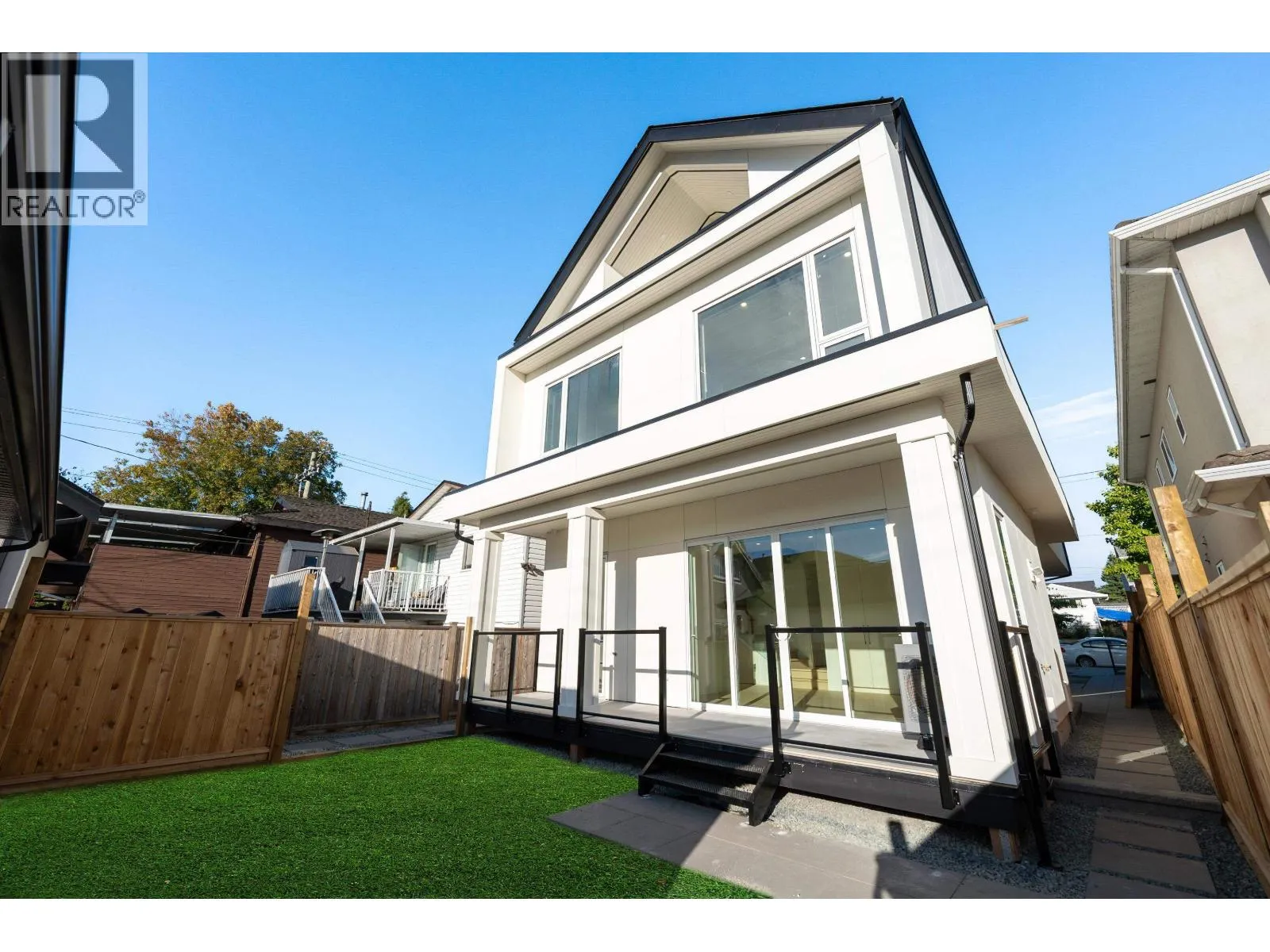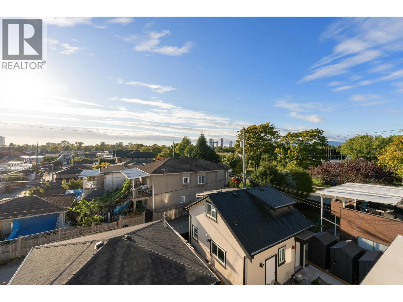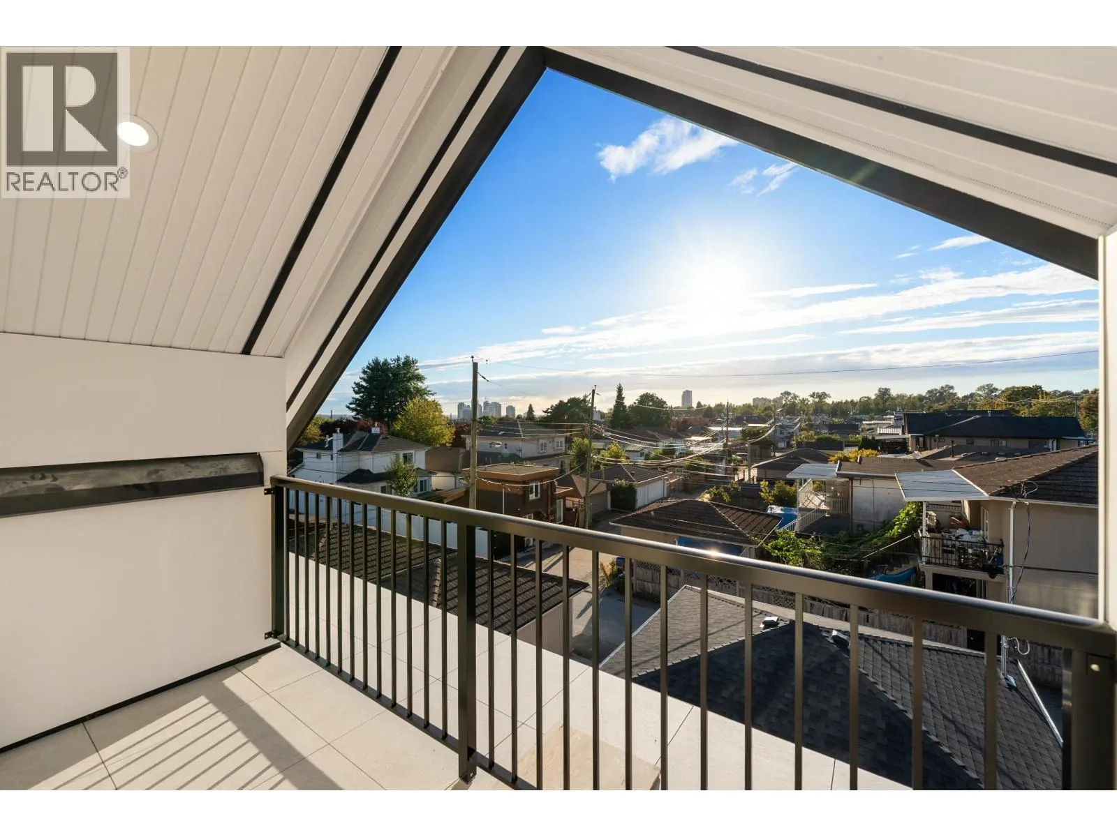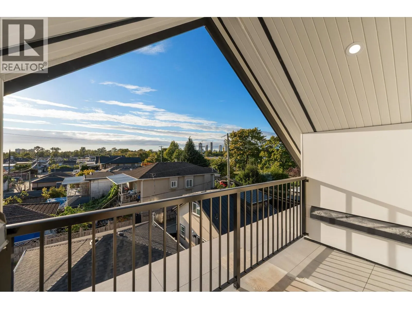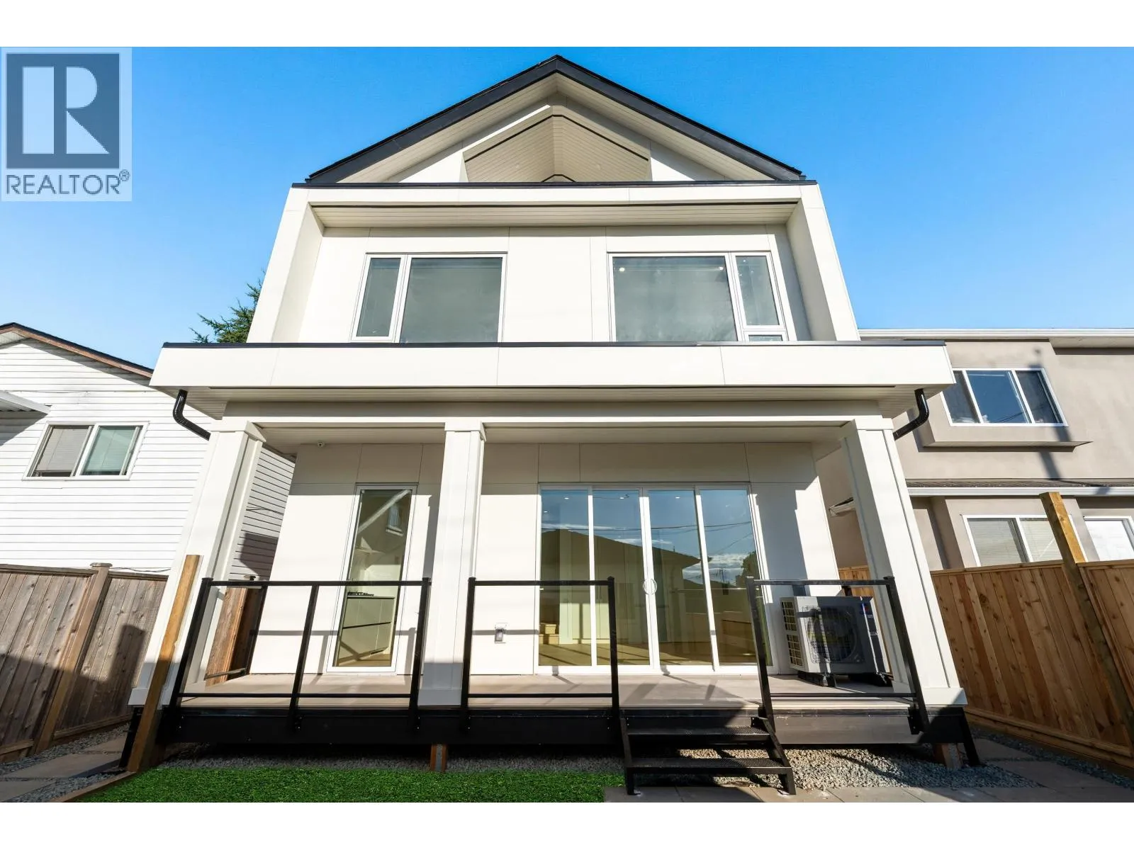 Welcome to the 1,420 square ft 4-bedroom, 3.5-bath home designed for family living. The bright main floor offers an open living/dining area and a modern kitchen, leading to a 580 square ft backyard - perfect for kids and outdoor gatherings. Upstairs features three bedrooms including a comfortable primary suite, plus a top-floor bedroom with its own balcony and powder room. With a 258 square ft garage, porch, and plenty of storage, this home is both practical and inviting. Ideally located near John Henderson Elementary, John Oliver Secondary, Sunset Community Centre, and Marine Station transit. (id:27476)