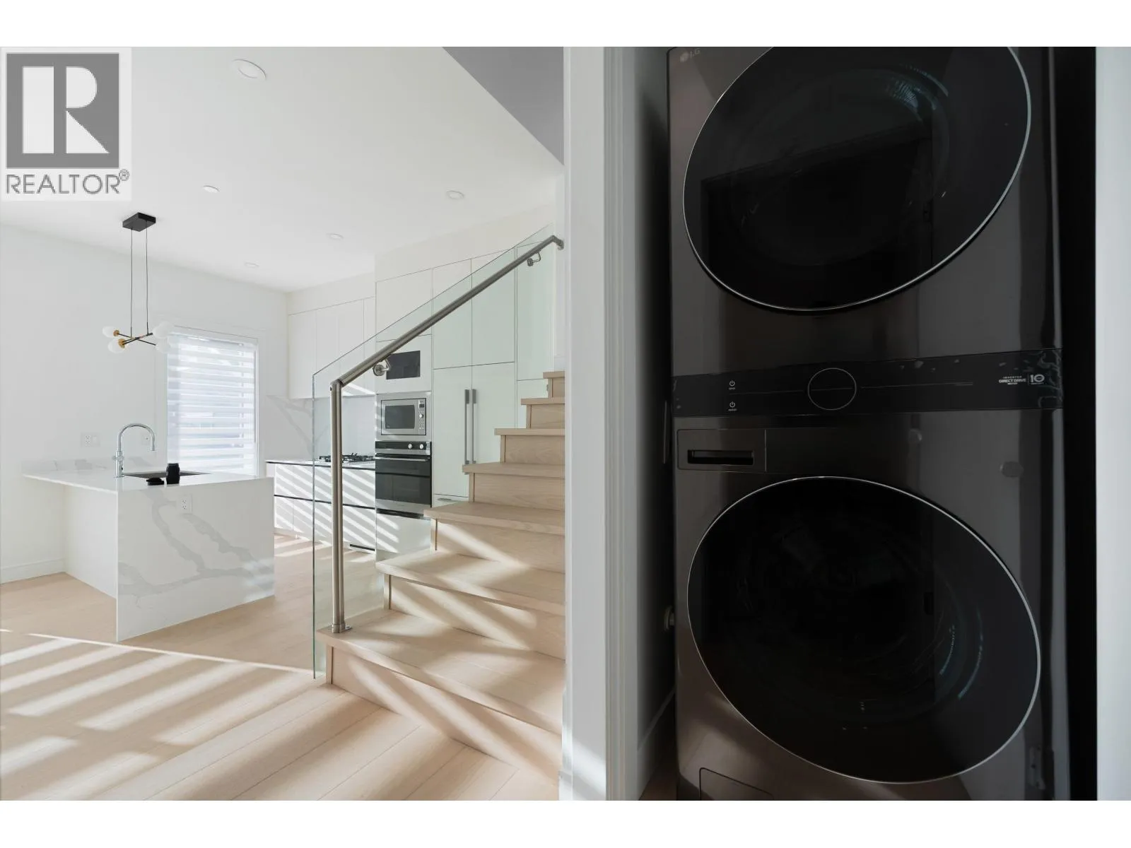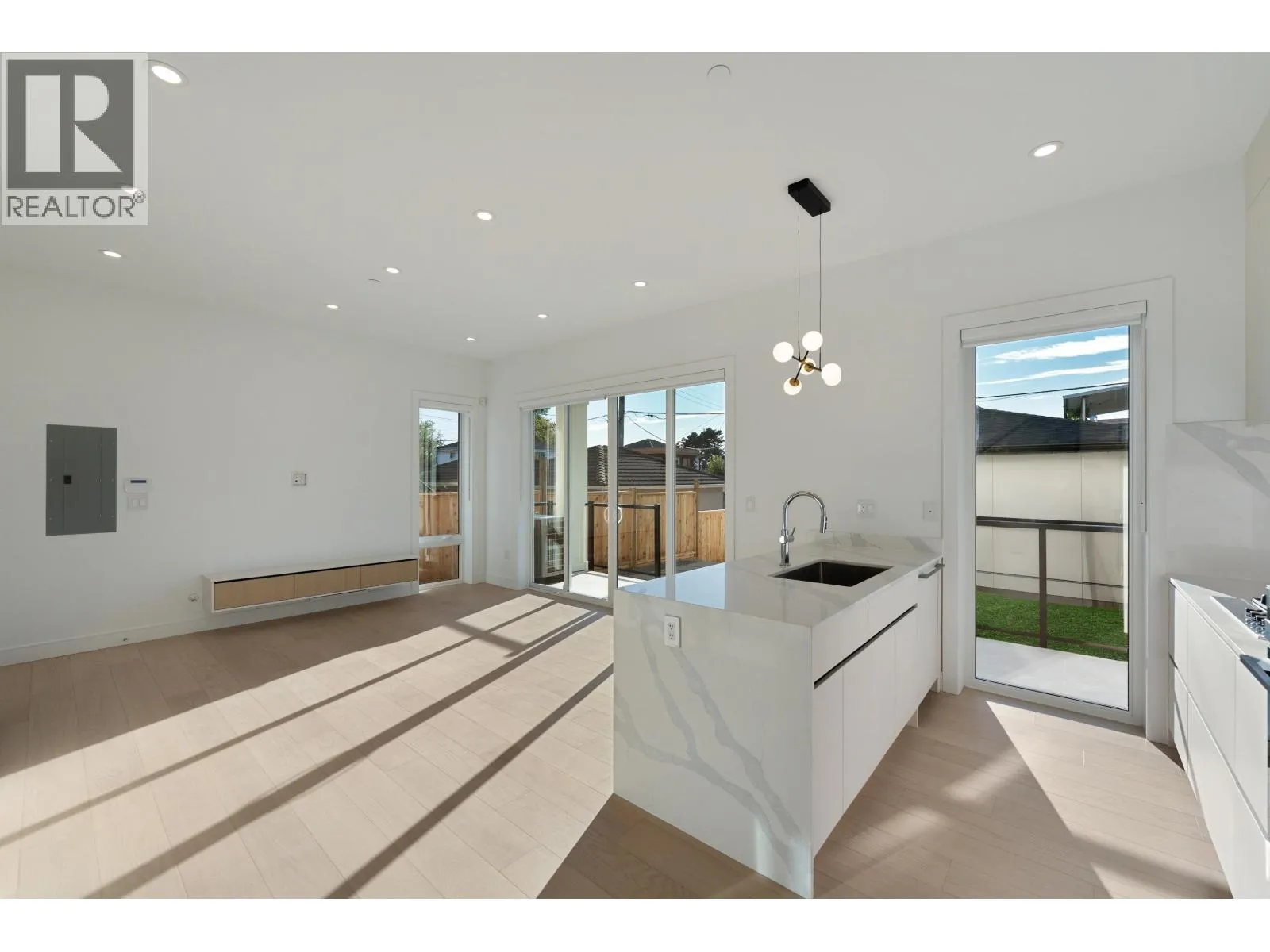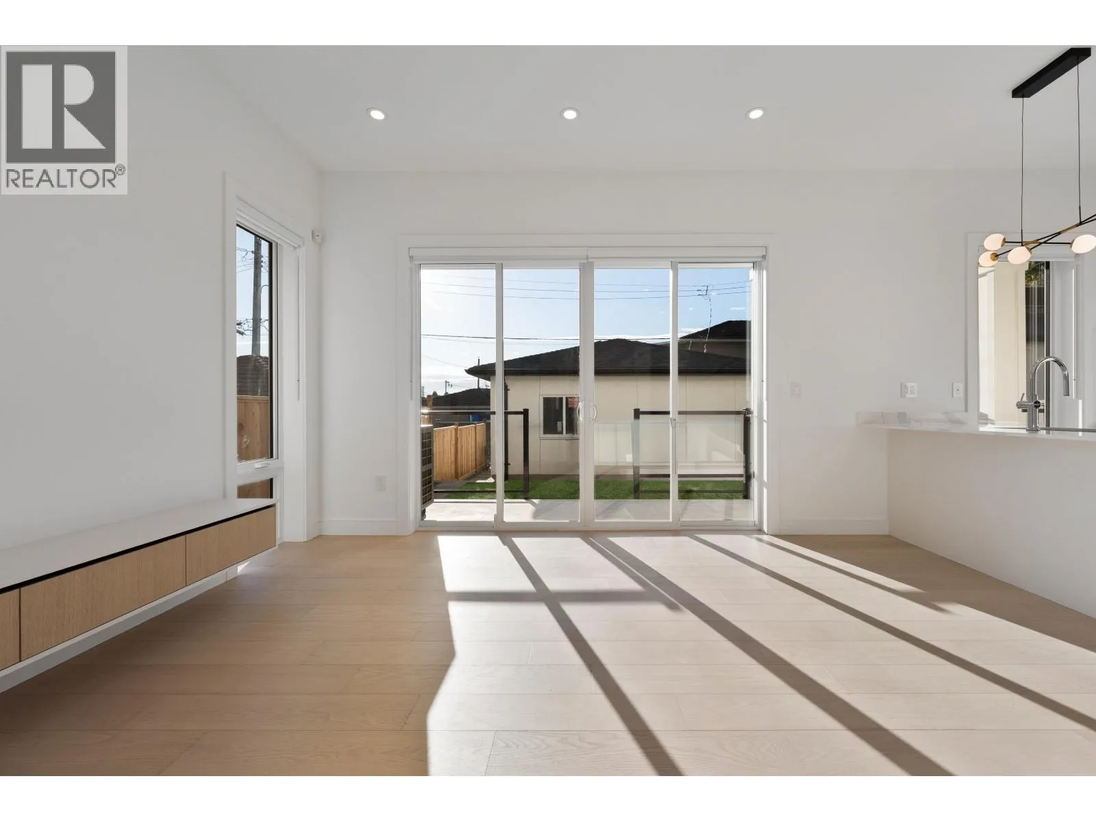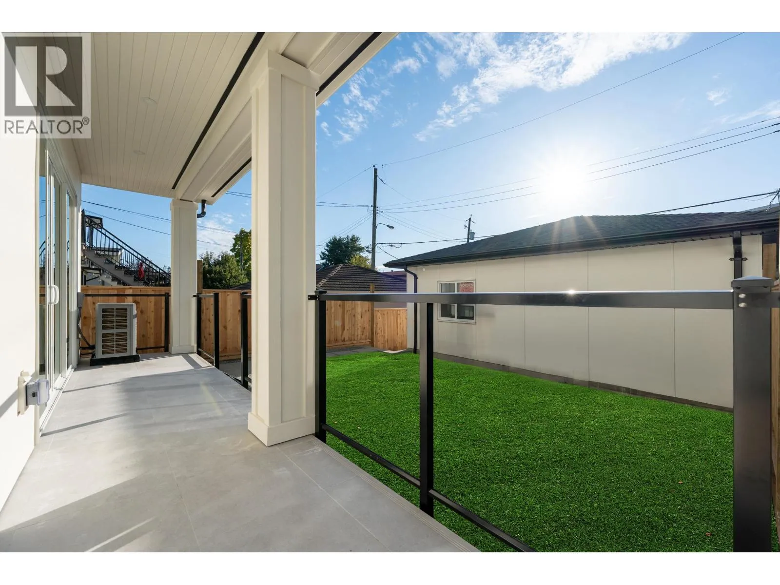 Welcome to the 1,420 square ft 4-bedroom, 3.5-bath home designed for family living. The bright main floor offers an open living/dining area and a modern kitchen, leading to a 580 square ft backyard - perfect for kids and outdoor gatherings. Upstairs features three bedrooms including a comfortable primary suite, plus a top-floor bedroom with its own balcony and powder room. With a 258 square ft garage, porch, and plenty of storage, this home is both practical and inviting. Ideally located near John Henderson Elementary, John Oliver Secondary, Sunset Community Centre, and Marine Station transit. (id:27476)
