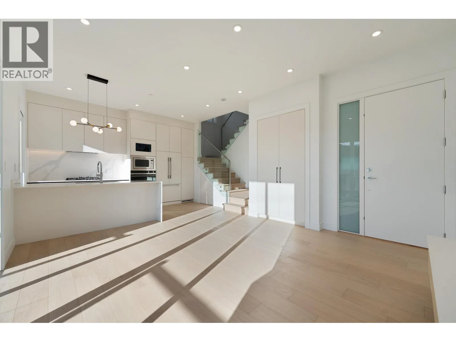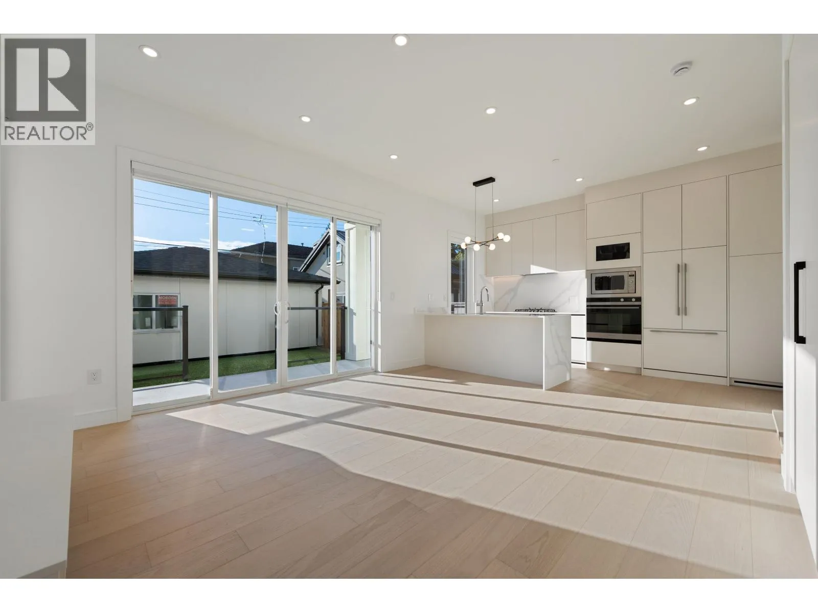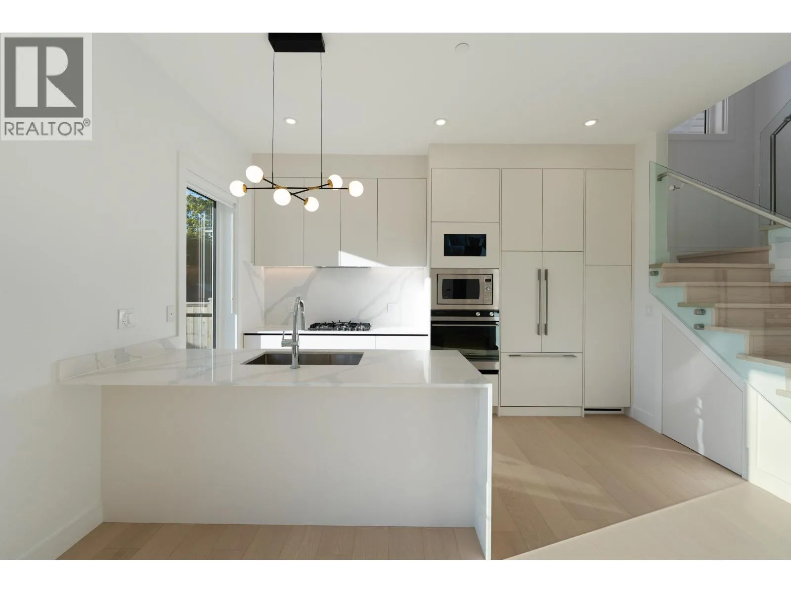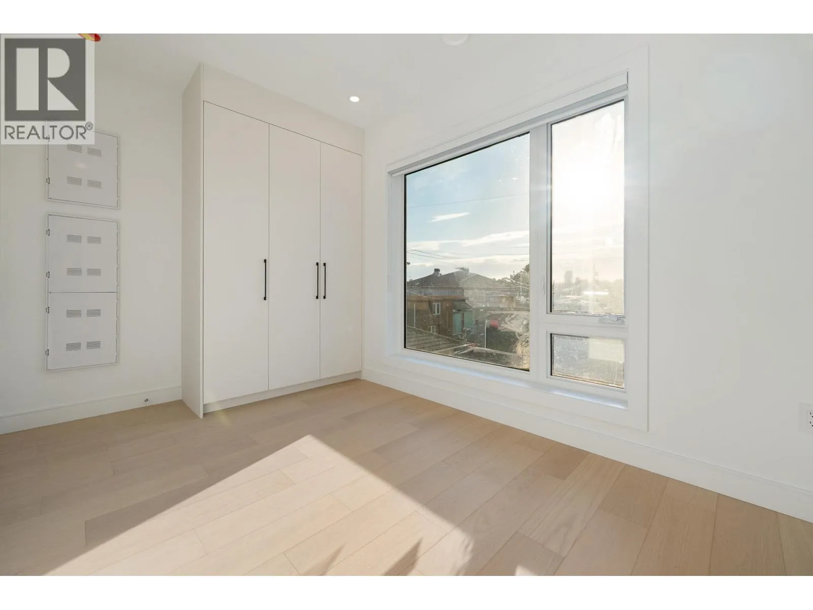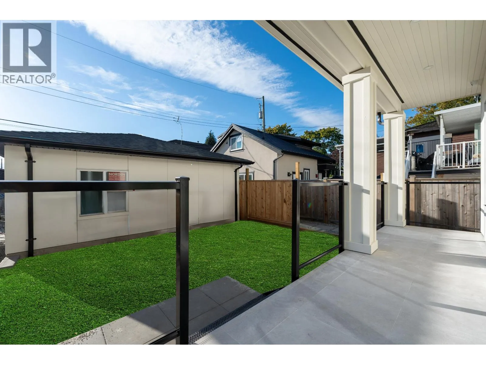 Welcome to the 1,420 square ft 4-bedroom, 3.5-bath home designed for family living. The bright main floor offers an open living/dining area and a modern kitchen, leading to a 580 square ft backyard - perfect for kids and outdoor gatherings. Upstairs features three bedrooms including a comfortable primary suite, plus a top-floor bedroom with its own balcony and powder room. With a 258 square ft garage, porch, and plenty of storage, this home is both practical and inviting. Ideally located near John Henderson Elementary, John Oliver Secondary, Sunset Community Centre, and Marine Station transit. (id:27476)