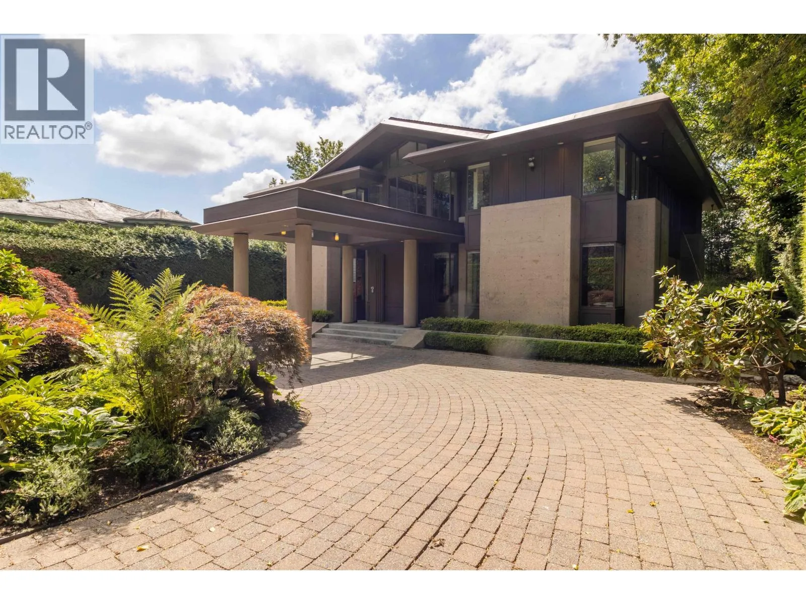 A rare opportunity! Step into 19 years of cherished ownership & happy family living in the prestigious First Shaughnessy. This CONCRETE residence, a masterpiece by Canada's most renowned architect Arthur Erickson, built to last and earthquake proof. Featuring a bright modern layout, soaring ceilings, priceless chandeliers, numerous corner windows fill the home with abundant natural light. Gourmet kitchen with top appliances. Sec master bedm on main, 4 bedms up, Down has an incredible home theatre, sound proof music room and a maid's room. The sunny south-facing backyard is beautifully landscaped and features a quality-built saltwater swimming pool for summer fun. 100' wide frontage with U shape driveway, welcoming porch, and secured by auto gate. Closes to top-rated schools! Must-see! (id:27476)