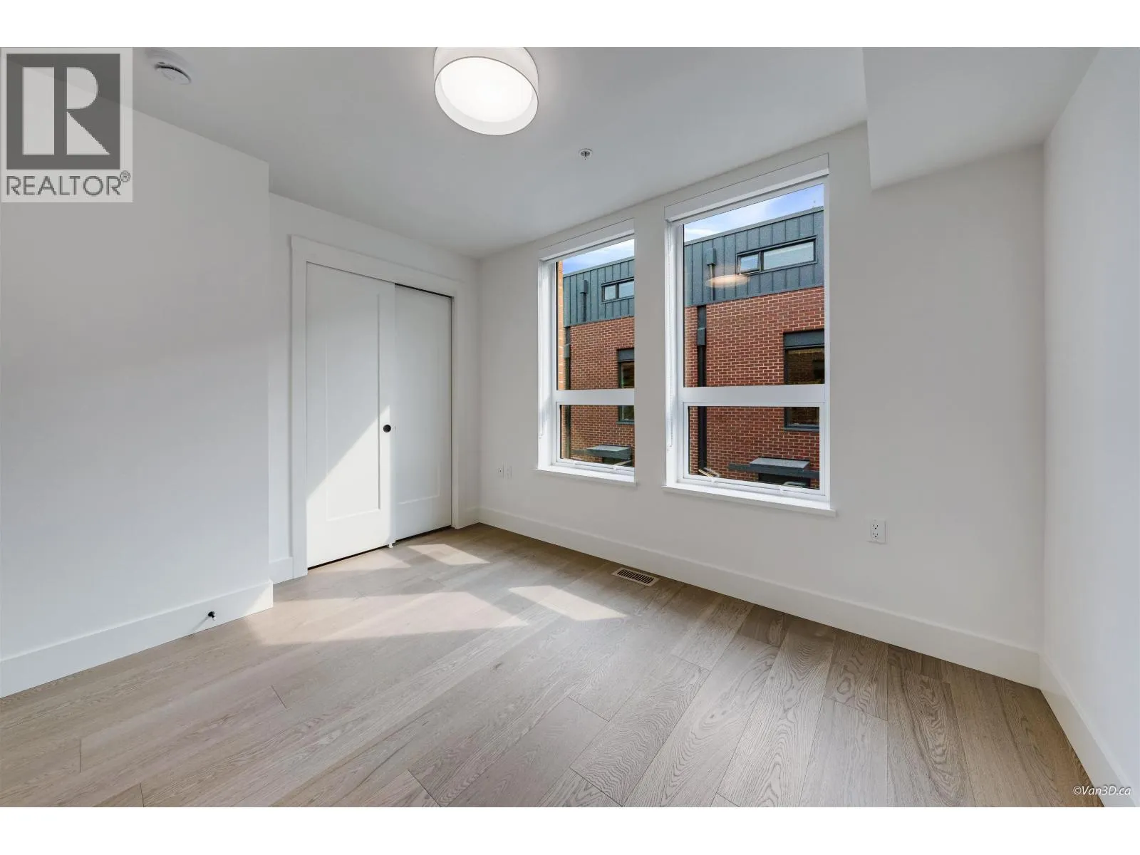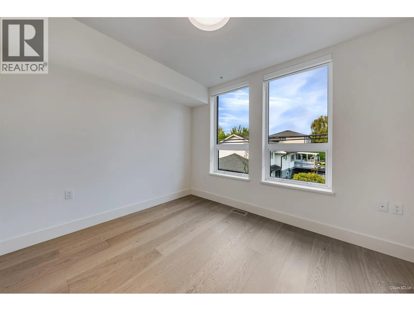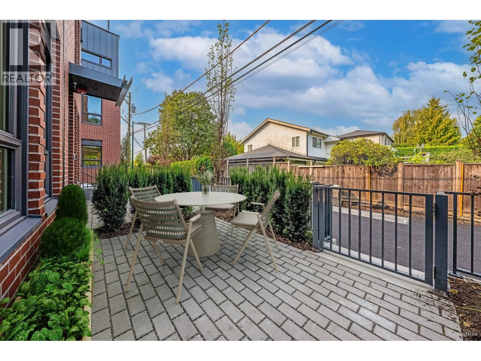 Welcome to York by renowned Townhouse developer Listraor. This brand new, just completed TH boasts over 1500 sqft over 3 levels with direct access to parking. Offers engineered HW flooring through out, A/C, Bosch integrated appliances, spacious walk-out patio and a balcony off the primary bedroom, Flex room in the lower level for all your storage needs, built-in security system, EV roughed-in parking, storage locker(upgrade) and a designated bike rack. Perfect for family living on a quiet, tree-lined street. Walk to new Oakridge development, VanDusen Park and more. Book your private showing soon before it's gone! GST Included. (id:27476)