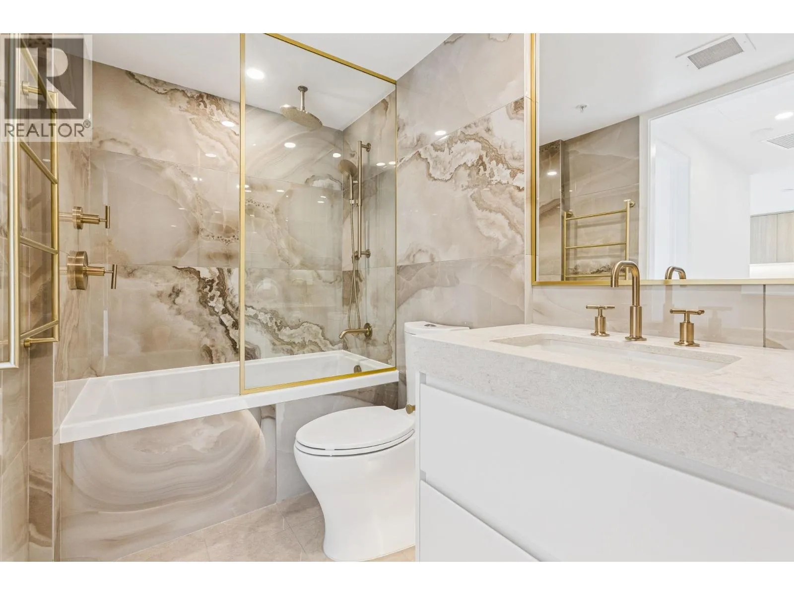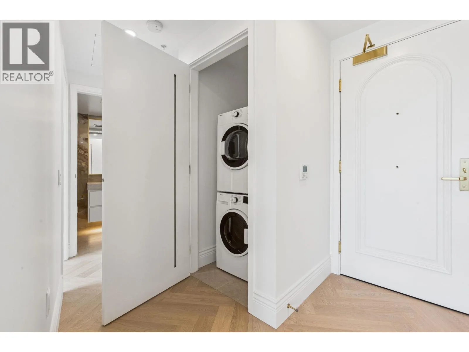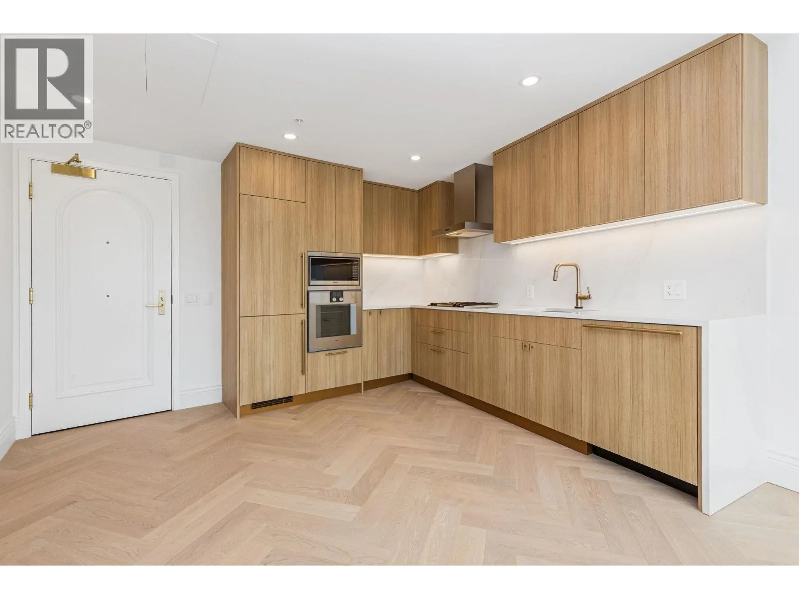 Discover Chloé in the prestigious heart of Kerrisdale. This 533 SF 1-bedroom features Parisian-inspired interiors by CHIL Interior Design, overheight ceilings, herringbone engineered hardwood floors, Italian porcelain tile, and Gaggenau appliances including a gas cooktop. Bath boasts quartz counters, Kohler sink and fixtures, plus Nu Heat in-floor heating. Air conditioning included. Quality concrete construction ensures durability, complemented by a 2-5-10 year warranty. Enjoy concierge service, elegant lounge & music room, fitness studio, landscaped courtyard with seating, and a rooftop terrace. Steps from boutique shops, cafés, parks, and top schools, offering effortless city living in a serene, historic neighborhood. (id:27476)