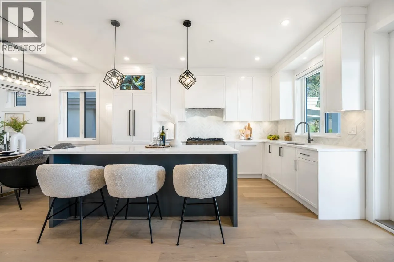 FRASERVIEW Side by Side duplexes on a prized 49x122 LOT SIZE. These homes embody exceptional craftsmanship & sophistication. Features 3 bdrms on the upper floor with additional bedroom for owners use in the basement & 1 bdrm WALK OUT legal suite. Inside, you'll find white oak hardwood floors, high ceilings, and an open-concept design that creates an airy, inviting atmosphere. Bright white shaker style cabinetry with integrated Fisher Paykel appliances including a 36 INCH GAS RANGE, WINE COOLER & EXTRA LARGE PANTRY. Other features include TANKLESS HOT WATER on demand GAS BOILER, Radiant heating, AC/Heat Pump systems for year-round comfort & No Sump Pump. Sunny South facing backyard. Sir James Douglas (French Immersion) & David Thompson Secondary. (id:27476)