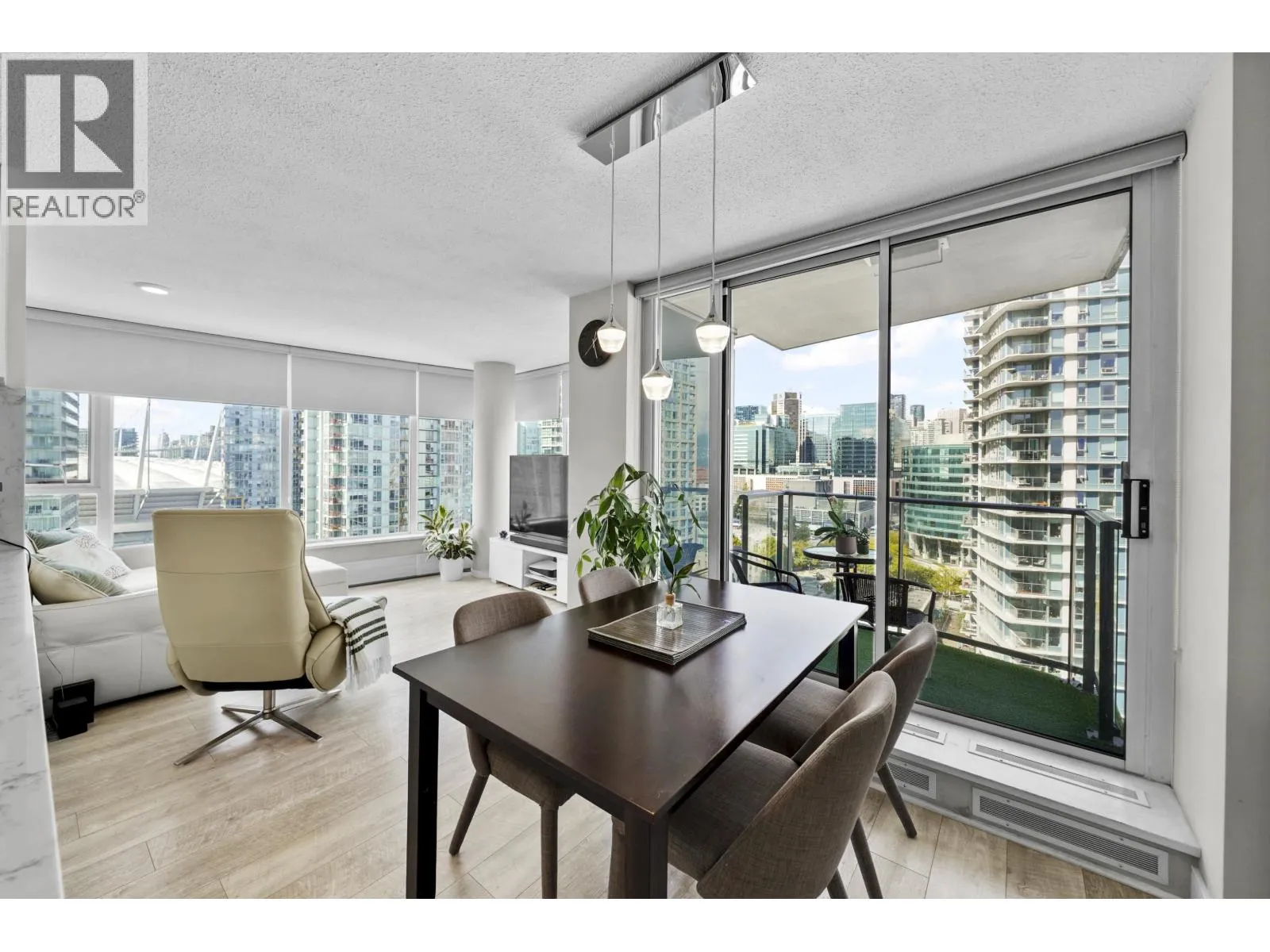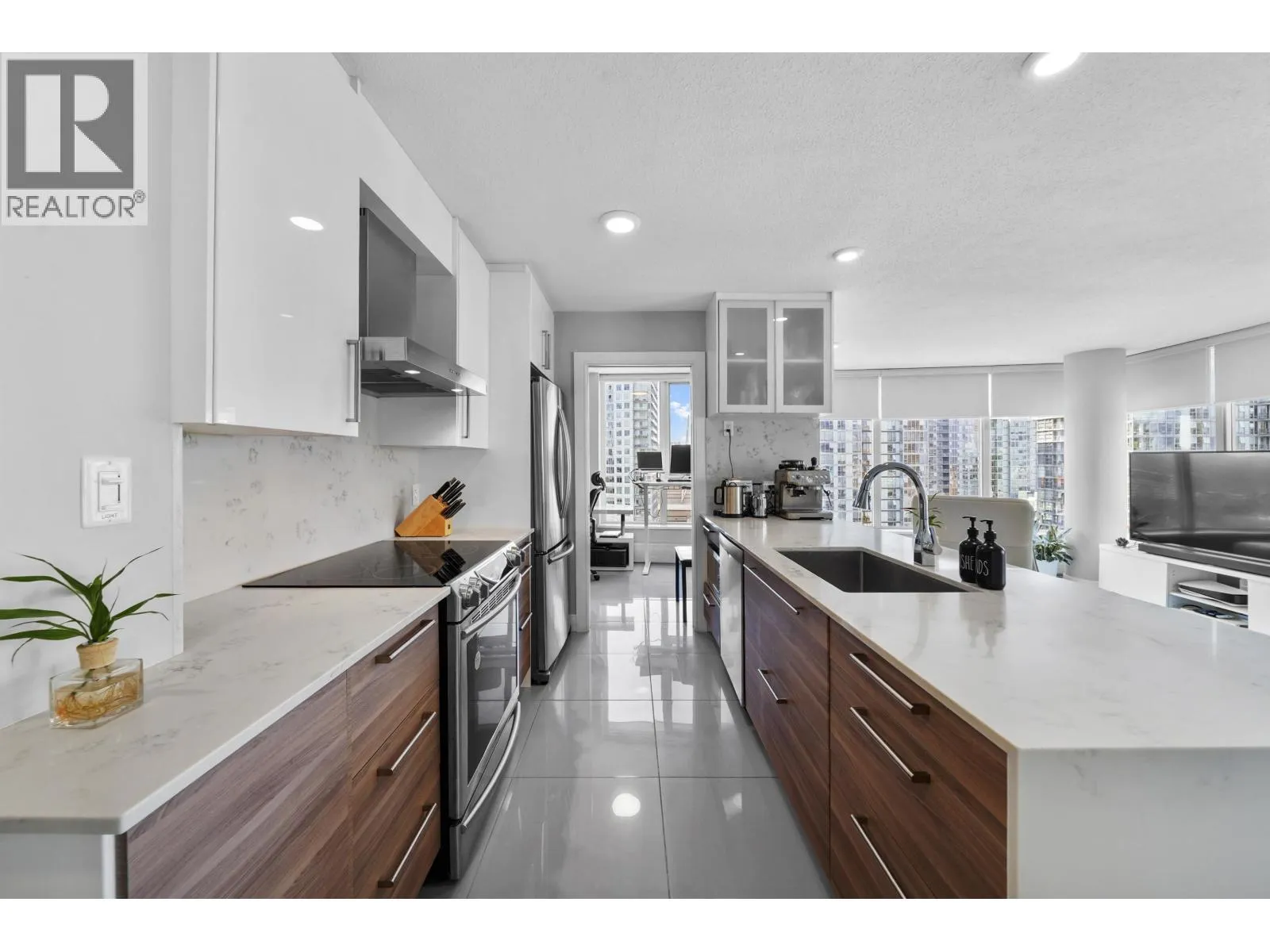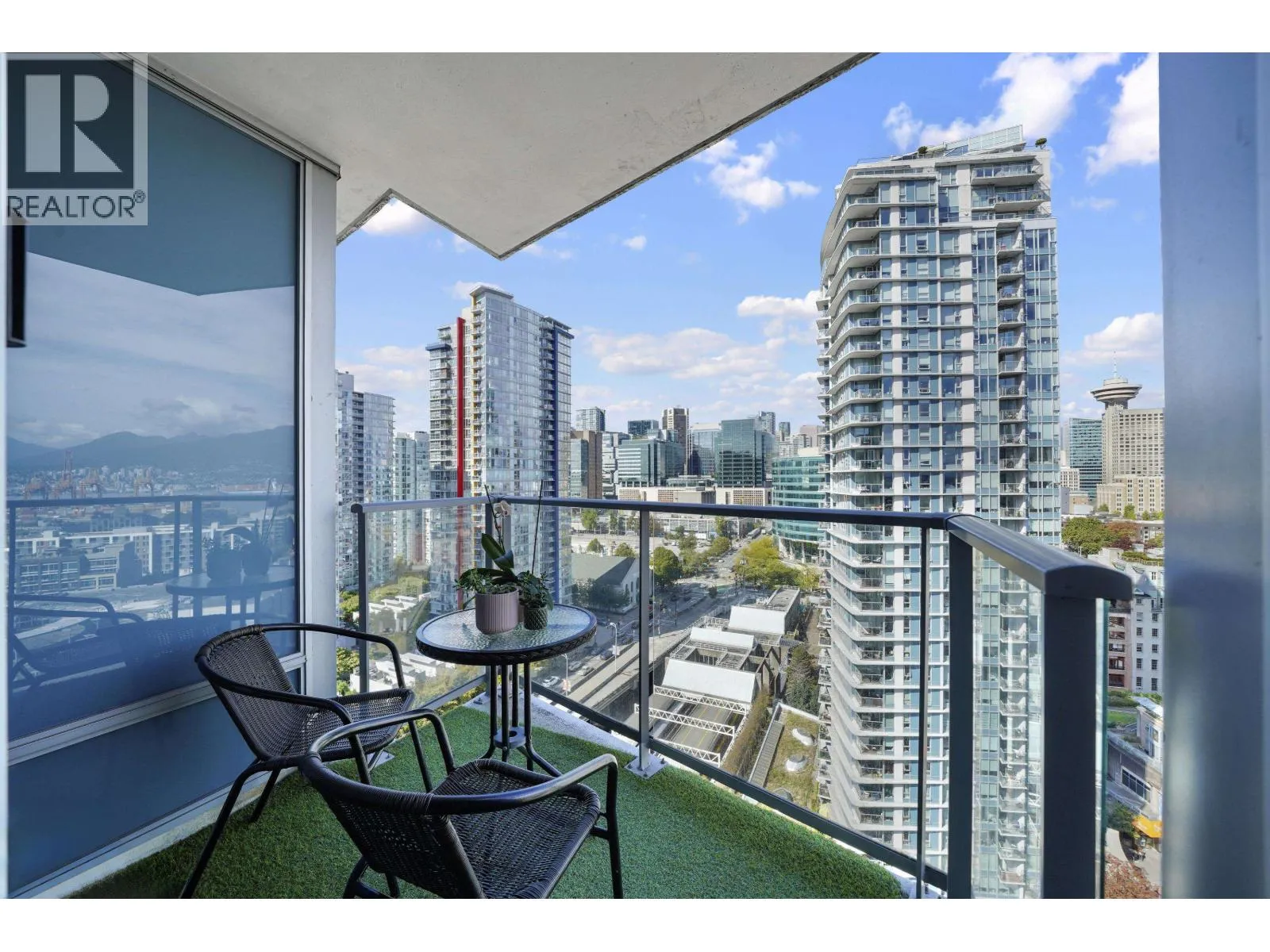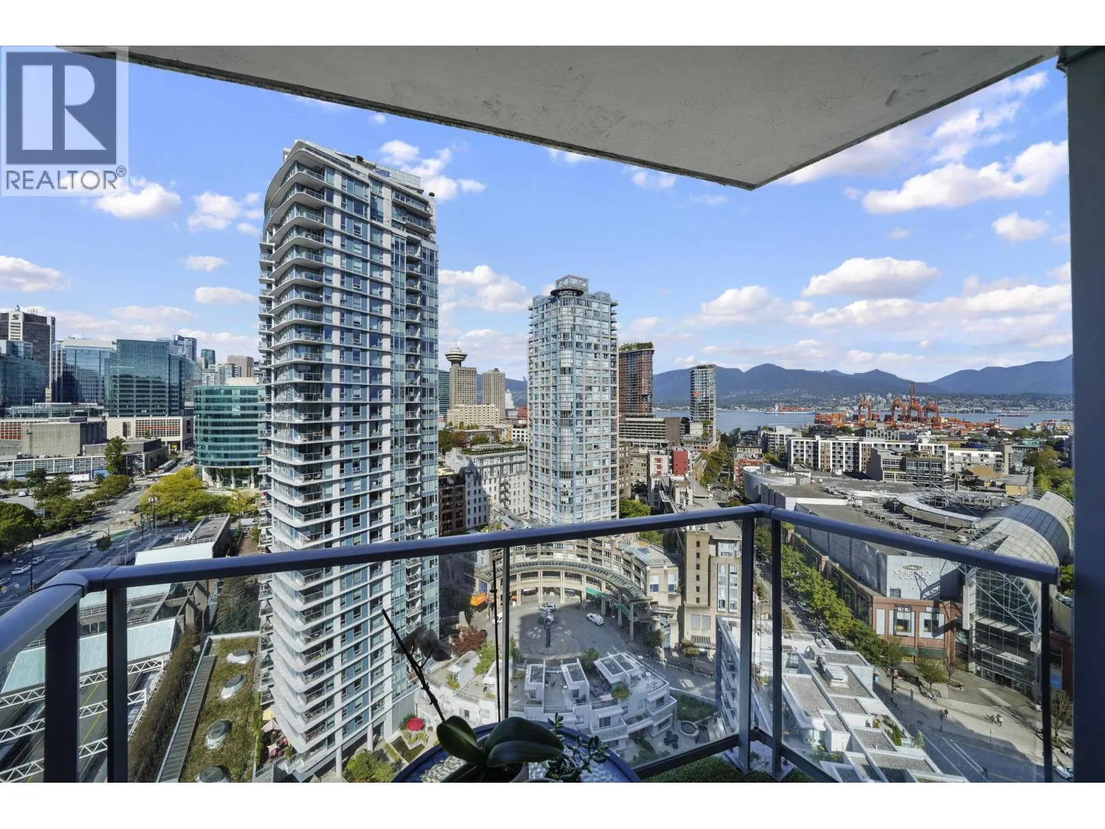 Live the good life at ESPANA! One of the few downtown Vancouver buildings that allows short-term rentals, giving owners the option to host while away; an excellent way to supplement your mortgage. This professionally renovated 2 Bed + 2 Bath home features a den converted into extra closet space and a solarium redesigned into a functional den. Enjoy a balcony with stunning North Shore mountain and Burrard Inlet views, a modern kitchen, and sleek bathrooms. Steps to the seawall, cafés, shops & transit. Resort-style amenities include 24hr concierge, 25m pool, hot tub, gym, library & party room. Includes 1 parking. Open House Sunday October 12 2-4 pm. (id:27476)