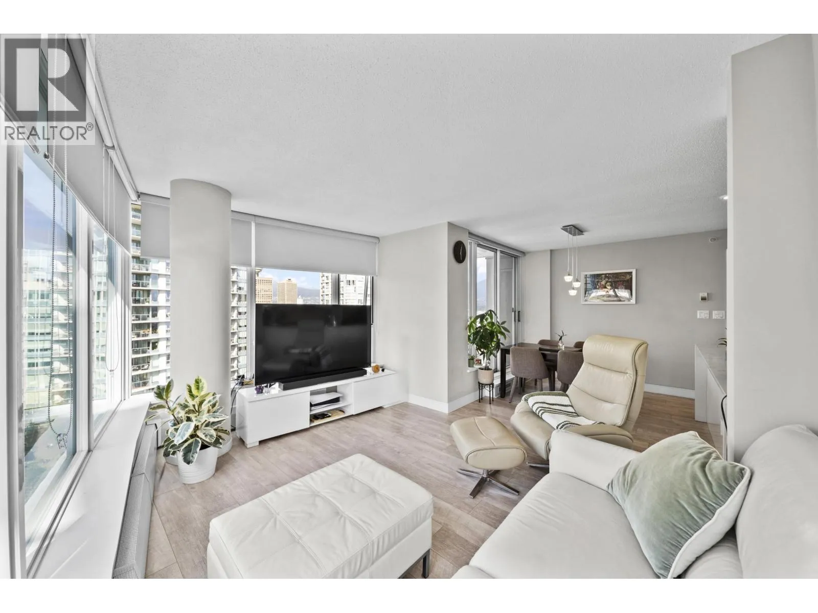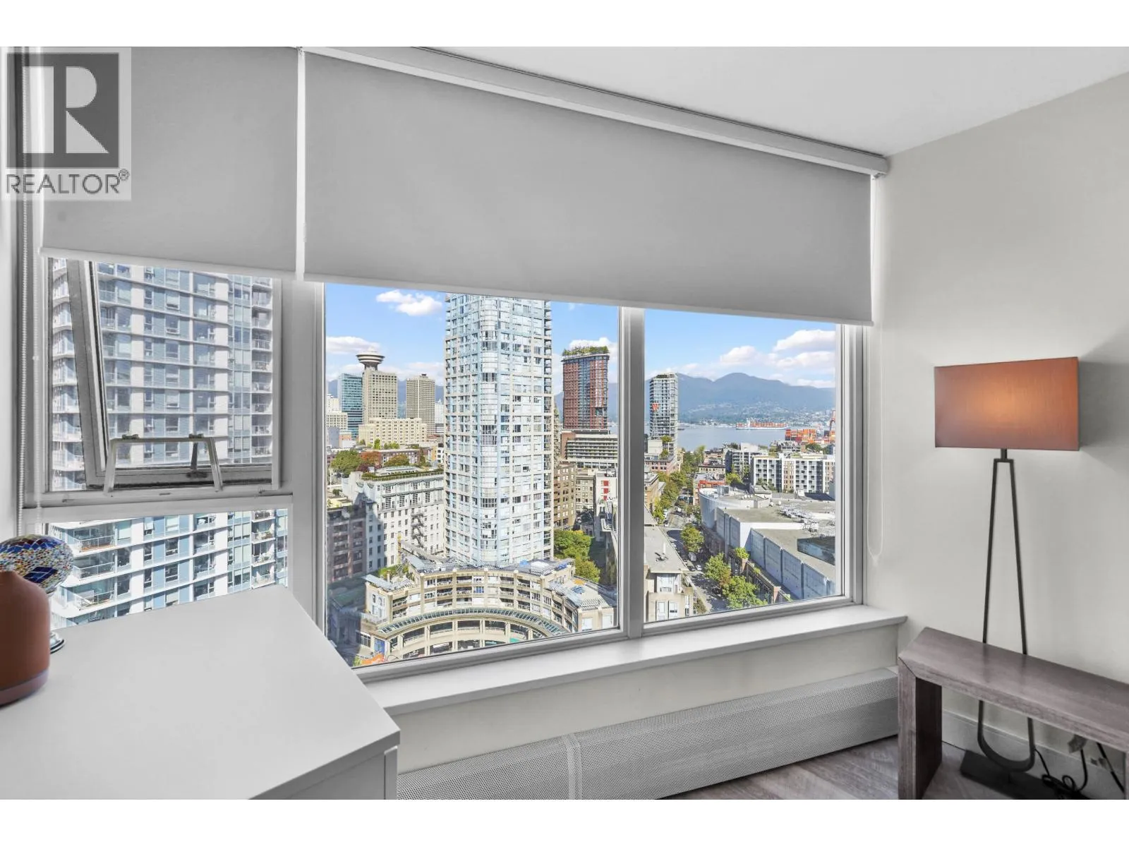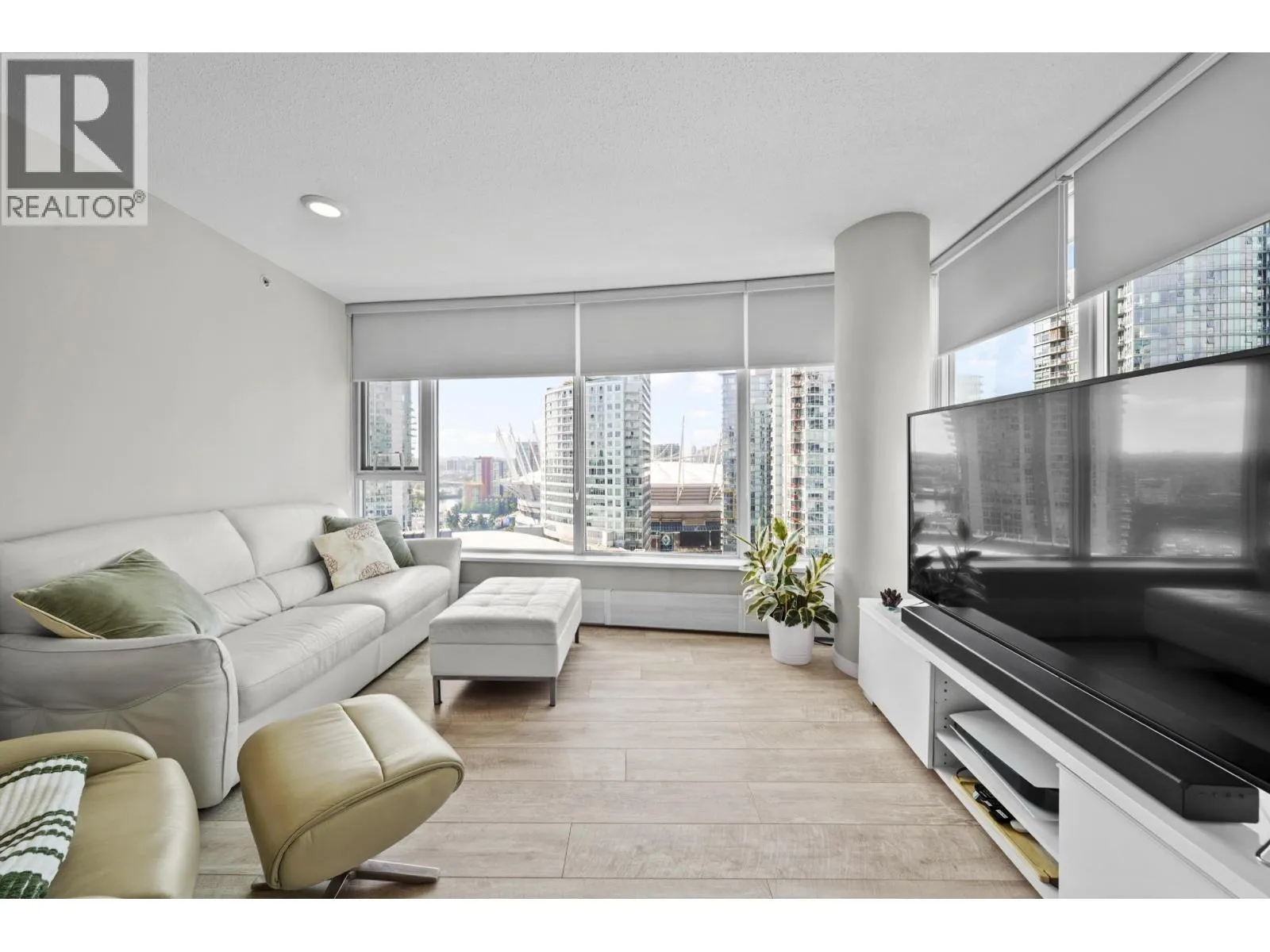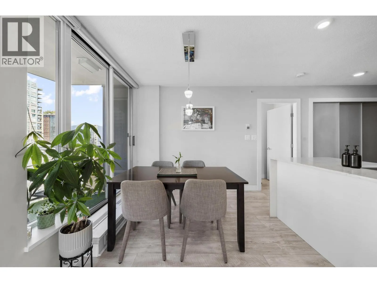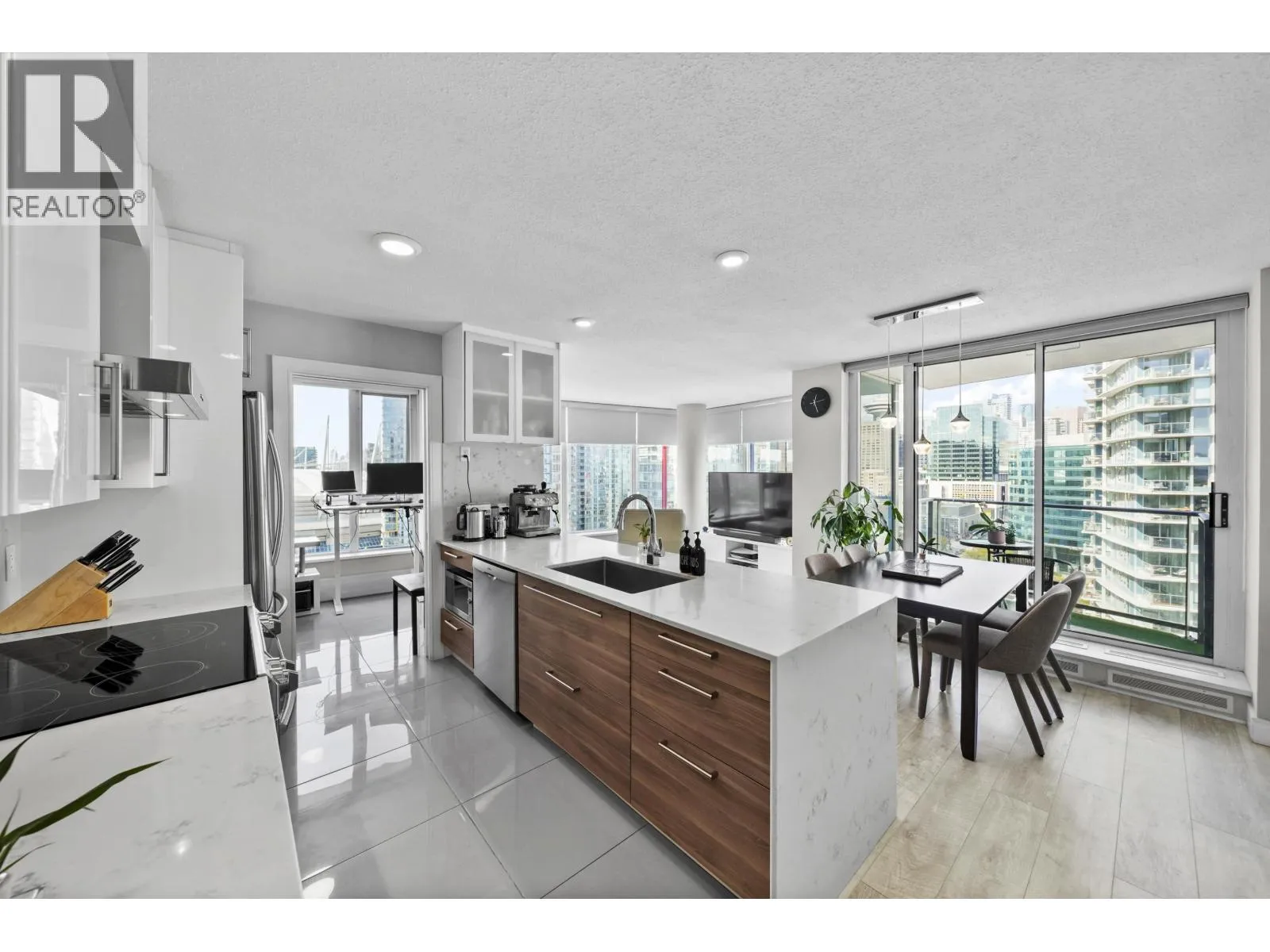 Live the good life at ESPANA! One of the few downtown Vancouver buildings that allows short-term rentals, giving owners the option to host while away; an excellent way to supplement your mortgage. This professionally renovated 2 Bed + 2 Bath home features a den converted into extra closet space and a solarium redesigned into a functional den. Enjoy a balcony with stunning North Shore mountain and Burrard Inlet views, a modern kitchen, and sleek bathrooms. Steps to the seawall, cafés, shops & transit. Resort-style amenities include 24hr concierge, 25m pool, hot tub, gym, library & party room. Includes 1 parking. Open House Sunday October 12 2-4 pm. (id:27476)