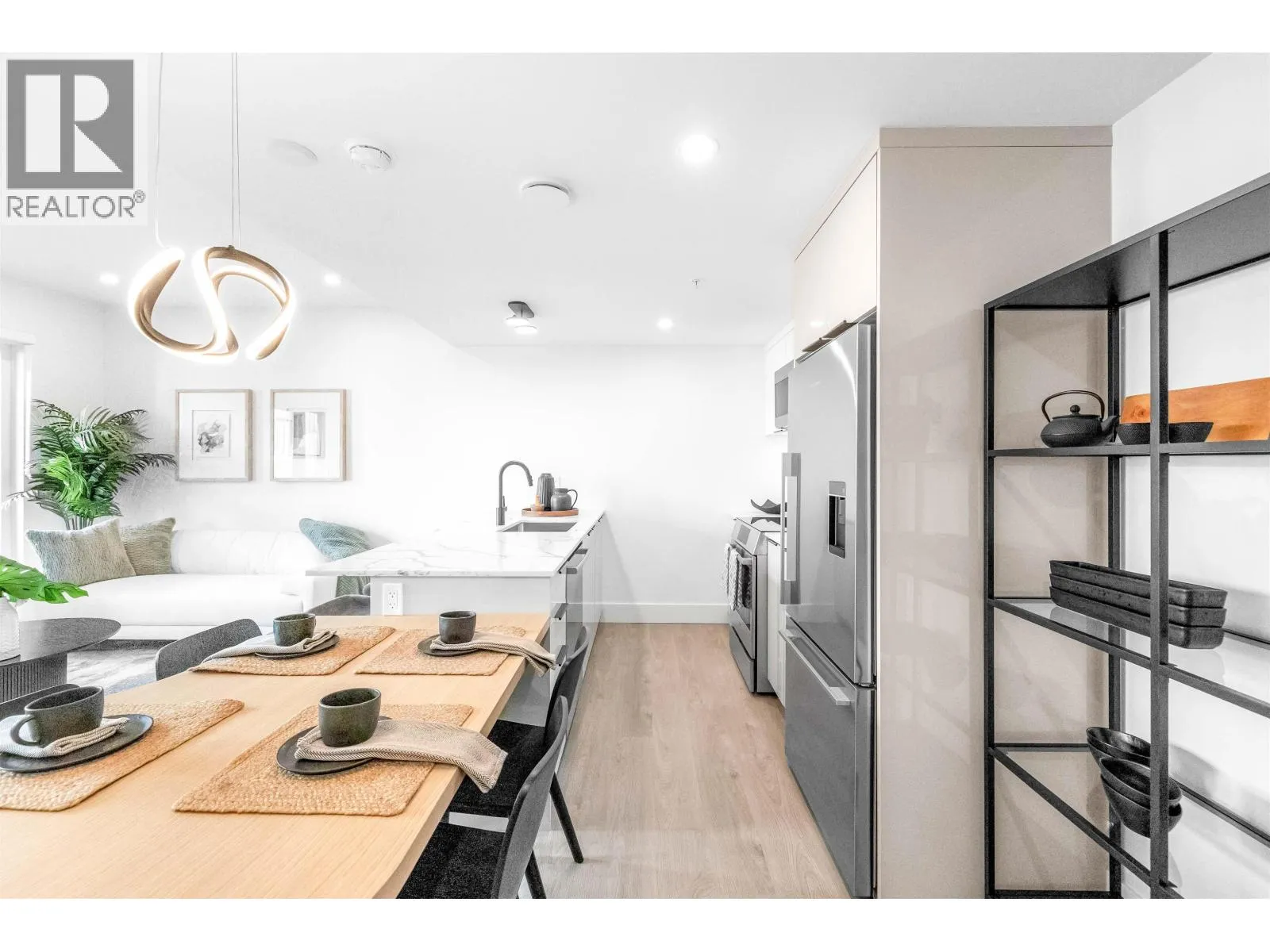 NEW PRICES! Dimex Group's 3-bedroom Passive House townhome at Lakewood combines modern design with sustainable living in Vancouver´s vibrant Commercial Drive neighborhood. Built for efficiency, it offers up to 90% savings on heating, triple-pane windows for peace and quiet, and a healthier indoor environment. The sleek kitchen includes a Fisher & Paykel fridge, Bosch appliance package, & quartz countertops. The top floor is a dedicated primary suite with a walk-in closet and private balcony-your own personal retreat. This end unit has AC roughed-in and upgrade-ready. 1 EV-ready parking stall and 1 storage locker included. Just steps to schools, parks, restaurants, transit, and the up-and-coming Nanaimo/Hastings area. Located on 1st Ave, but whisper-quiet inside. (id:27476)