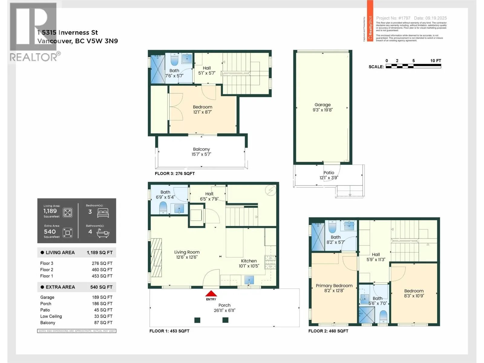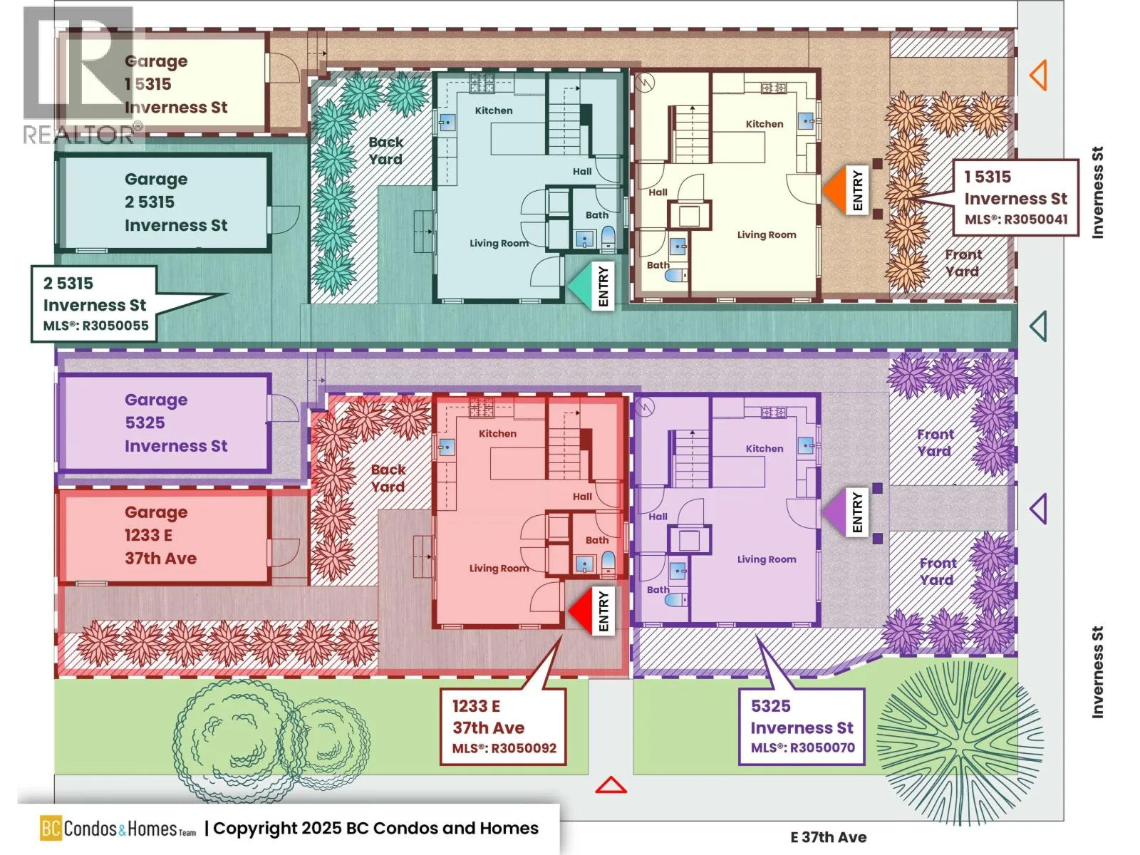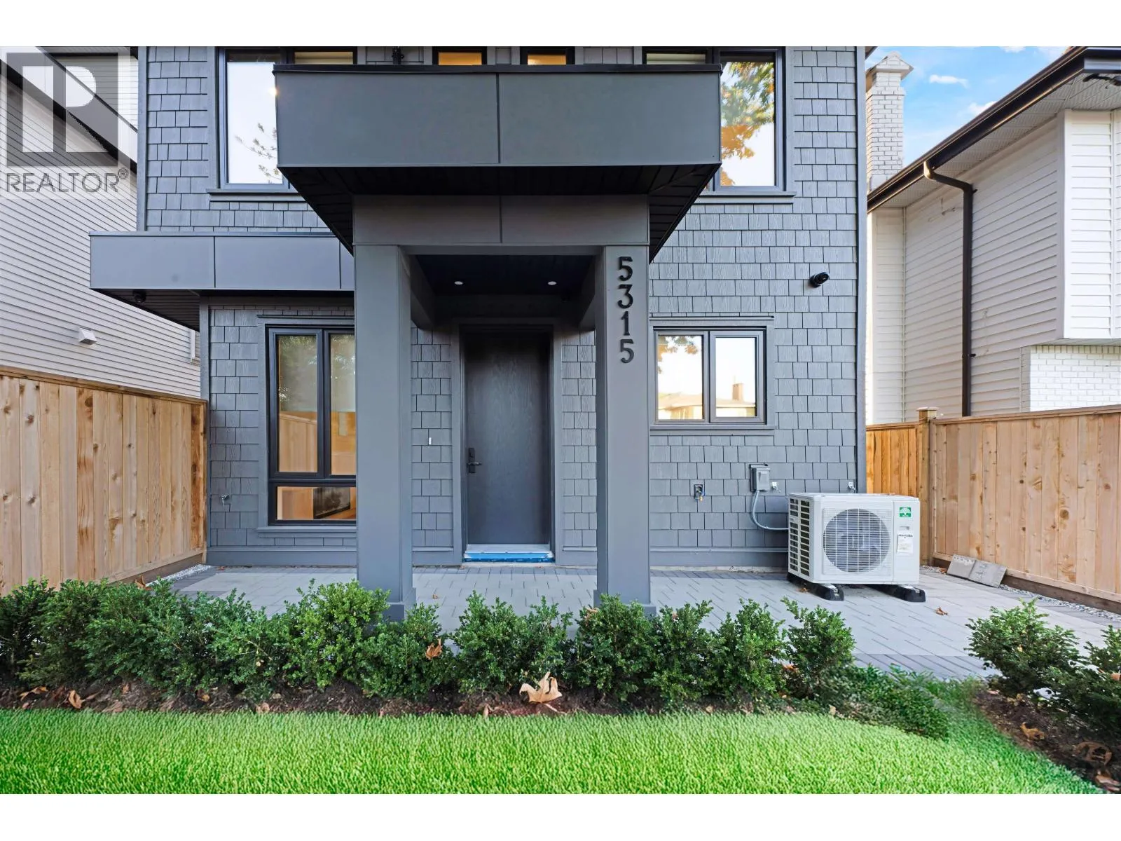 1-5315 Inverness Street, Vancouver V6X 1J6- Front unit - Lot 1 - SP EPS113373 units next door also on MLS. 1,189 sqft, located at the corner of 37th & Inverness in the Knight area, this brand-new front entrance 1/2 duplex offers 3 bed + 4 bath across three levels. Thoughtfully designed and virtually staged, it blends modern style with everyday comfort. The main floor feat high ceilings, fireplace, and large sliding doors to a private fenced yard. The kitchen is equipped with Fisher & Paykel appl, custom cabinetry, and detailed millwork. Upstairs, the bright primary suite includes a spa-inspired 3-pce ensuite, alongside a second bed. The top floor offers a spacious third bed, full 3-pce bath, and a balcony with mountain views. Highlights include AC, EV-ready garage, crawl space storage, and quality finishes throughout. In John Oliver Secondary & Sir Alexander Mackenzie Elementary catchments. Virtually staged and available for immediate occupancy. OH Sat 1-3pm/Sun 2-4PM (id:27476)