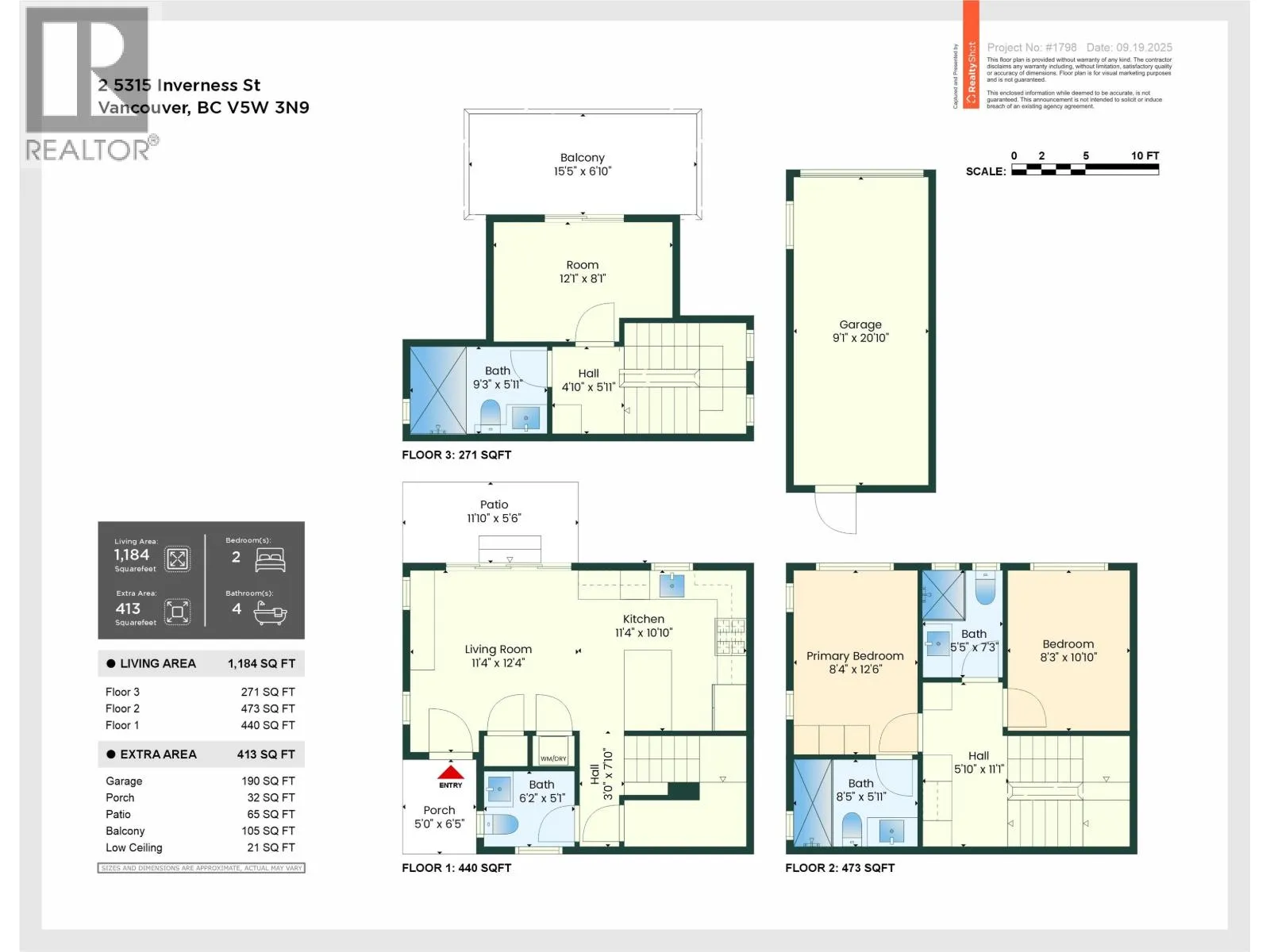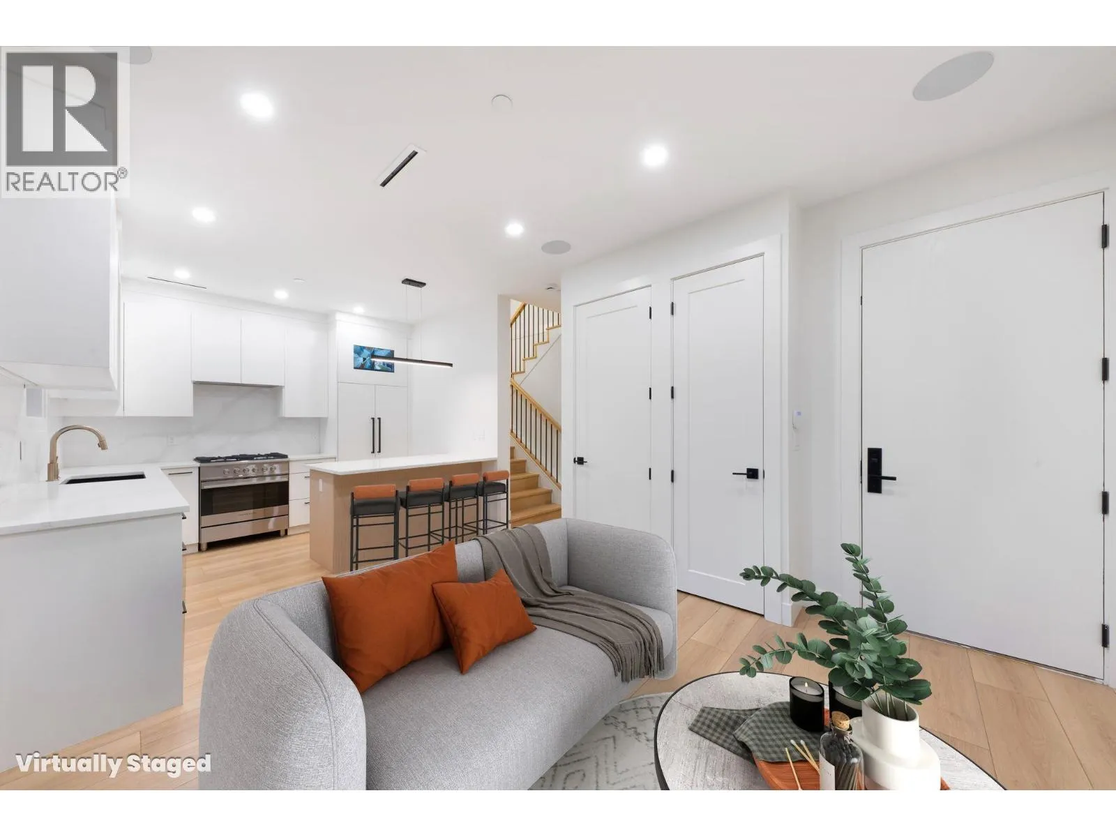 2-5315 Inverness Street, Vancouver V6X 1J6- Back unit - Lot 2 - SP EPD11337 3 units next door also on MLS. 1,186 sqft, located at the corner of 37th & Inverness in the Knight area, this brand-new side entrance 1/2 duplex offers 3 bed + 4 bath across three levels. Thoughtfully designed and virtually staged, it blends modern style with everyday comfort. The main floor feat high ceilings, fireplace, and large sliding doors to a private fenced yard. The kitchen is equipped with Fisher & Paykel appl, custom cabinetry, and detailed millwork. Upstairs, the bright primary suite includes a spa-inspired 3-pce ensuite, alongside a second bed. The top floor offers a spacious third bed, full 3-pce bath, and a balcony with mountain views. Highlights include AC, EV-ready garage, crawl space storage, and quality finishes throughout. In John Oliver Secondary & Sir Alexander Mackenzie Elementary catchments. Virtually staged and available for immediate occupancy. (id:27476)