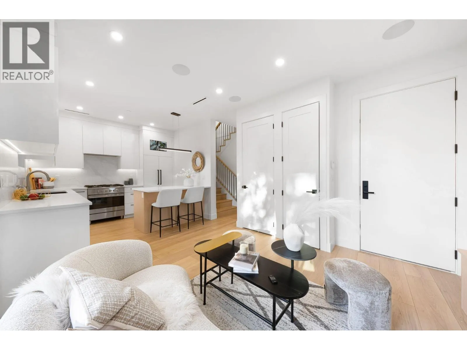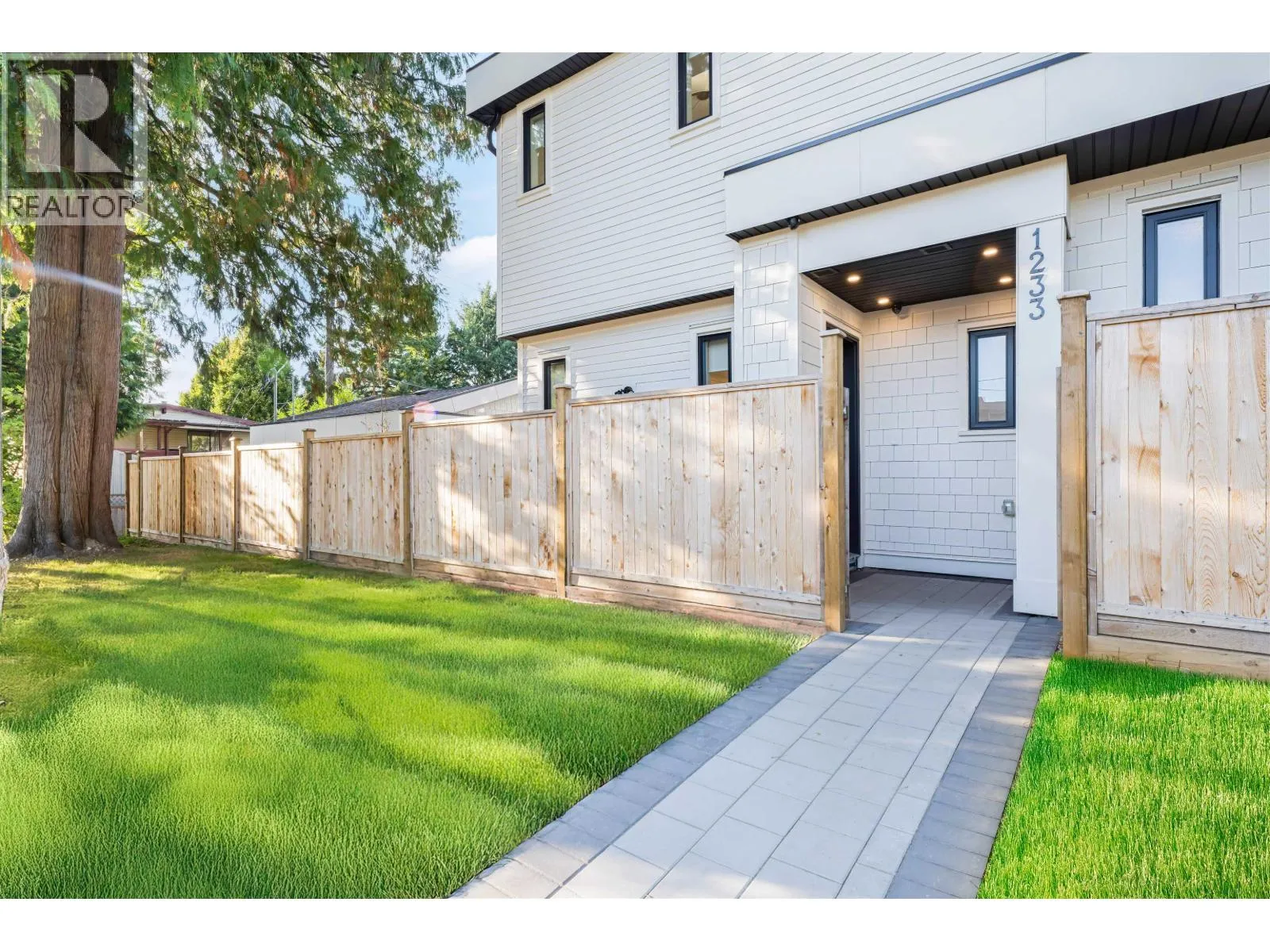 2-1233 E 37th Avenue, Vancouver V5W 3N9- Side Unit - Lot 2 - SP EPS11338 3 units next door also on MLS. 1,186 sqft, brand new front entrance 1/2 duplex at 37th & Inverness in the Knight area. This 3 bed + 4 bath home is thoughtfully designed and Professionally staged. Main floor feat high ceilings, fireplace, and large doors to a private fenced yard. Kitchen has Fisher & Paykel appl + custom millwork. Upper levels incl a bright primary w/3-pce ensuite, 2nd bed, and a 3rd bed w/mountain view balcony + full bath. Feat AC, EV-ready garage, crawl space storage, and quality finishings. John Oliver Secondary & Sir Alexander Mackenzie Elementary catchments. Move-in ready. OH Sat 1-3pm/Sun 2-4pm. (id:27476)