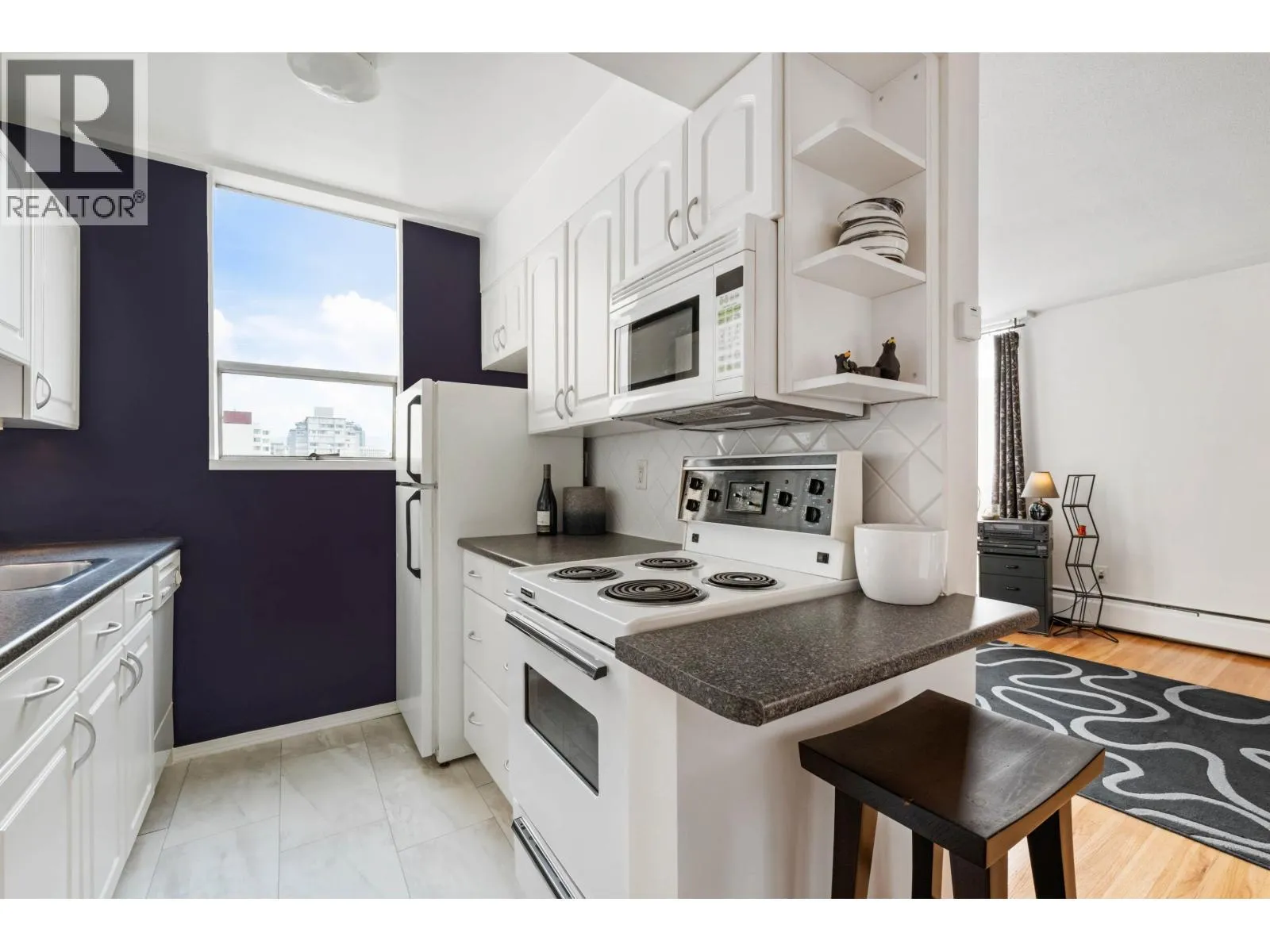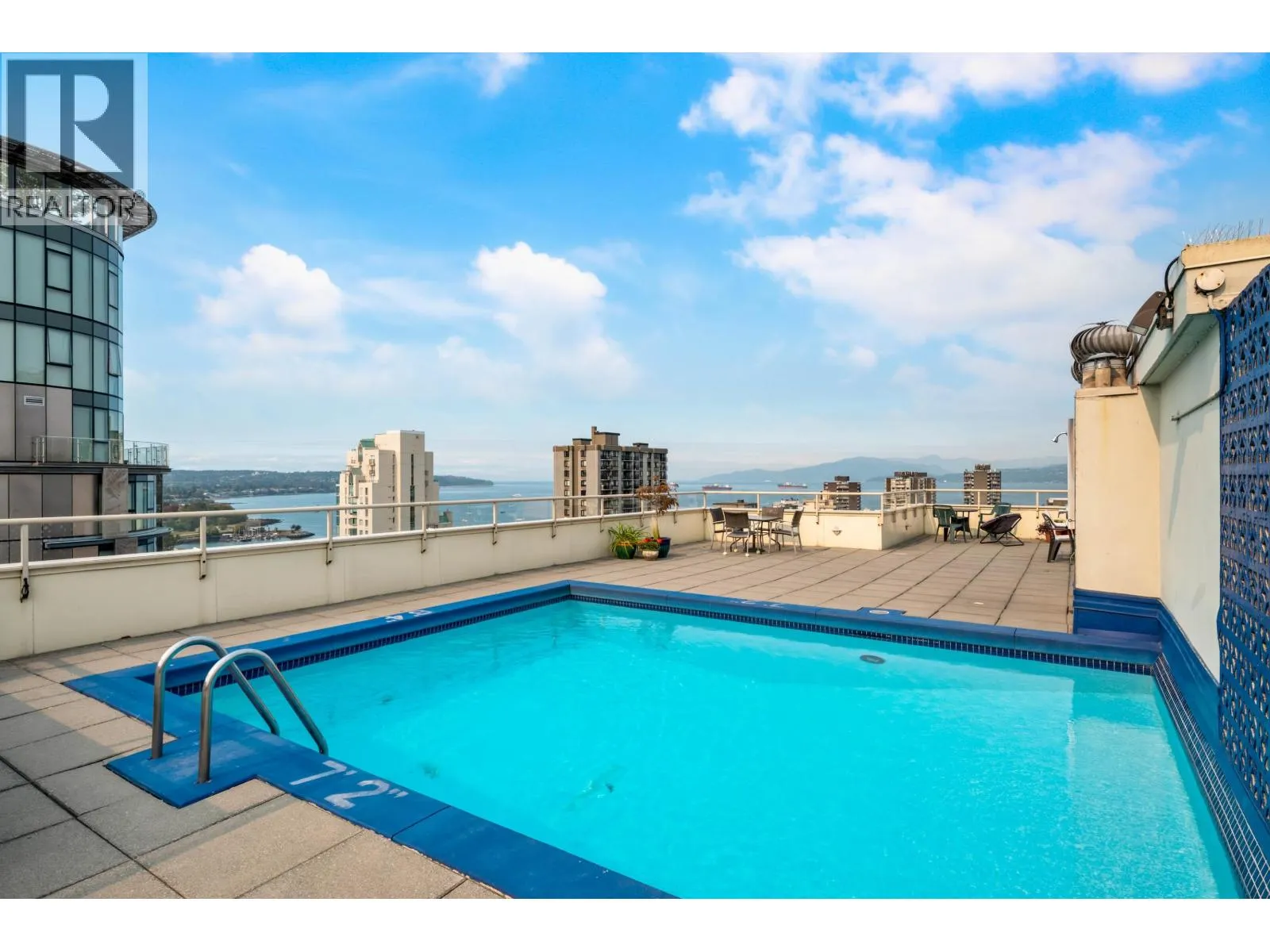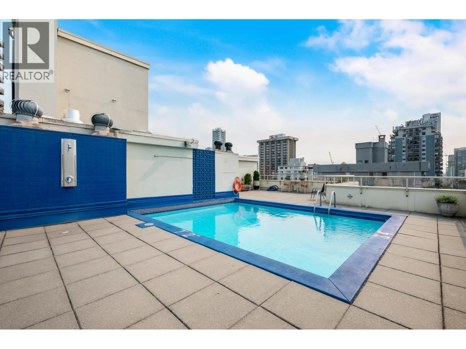Live the ultimate West End lifestyle in this 561 sqft, 1 bed, 1 bath prepaid leasehold gem! Featuring refinished hardwood floors, a renovated kitchen and bathroom, a built-in workstation, and a charming Juliet balcony, this home is move-in ready. Enjoy expansive sightlines & city views from the unit and breathtaking panoramas from the rooftop pool and deck-perfect for sunsets and summer fireworks. Amenities are plentiful, just steps from your door: Sunset Beach, the Seawall, English Bay, Stanley Park, cafés, restaurants, and shopping. Optional parking and locker, with shared laundry conveniently located across the hall. Monthly fees include taxes, heat, and hot water (hydro extra). Experience vibrant, walkable West End living at its finest-book your showing today! (id:27476)