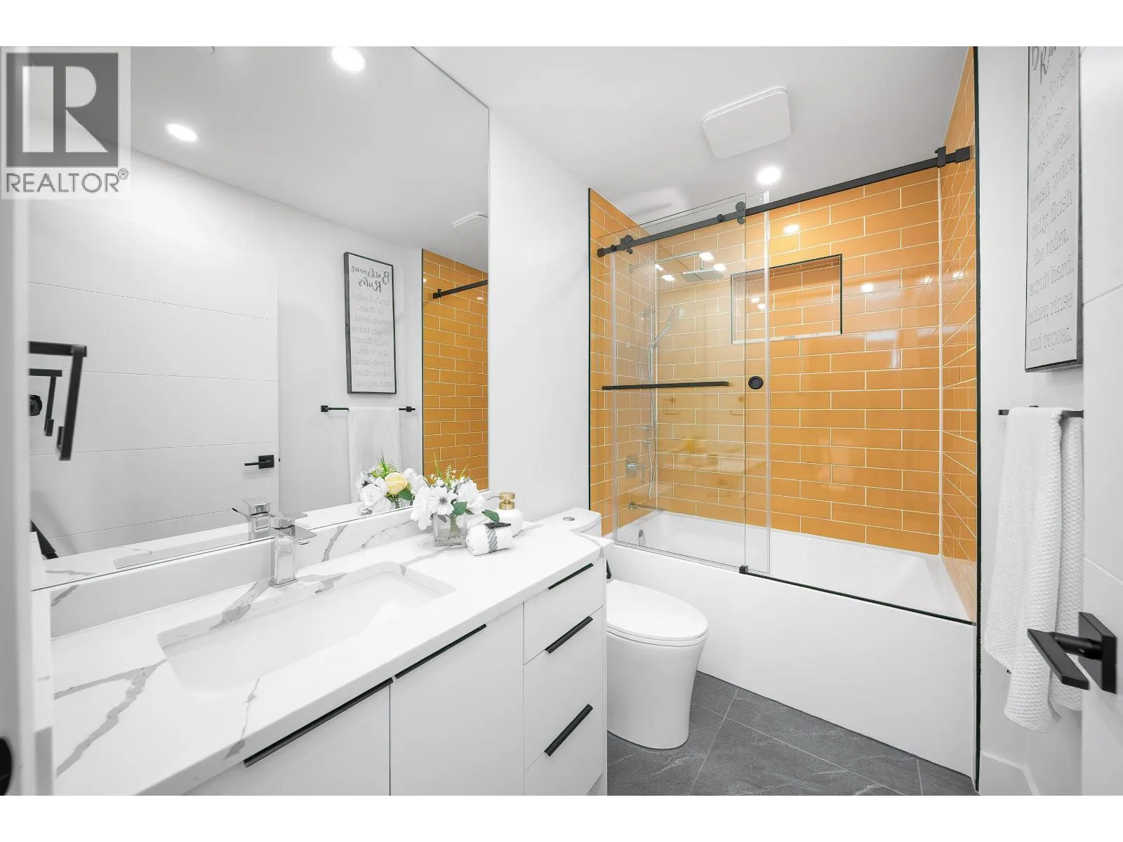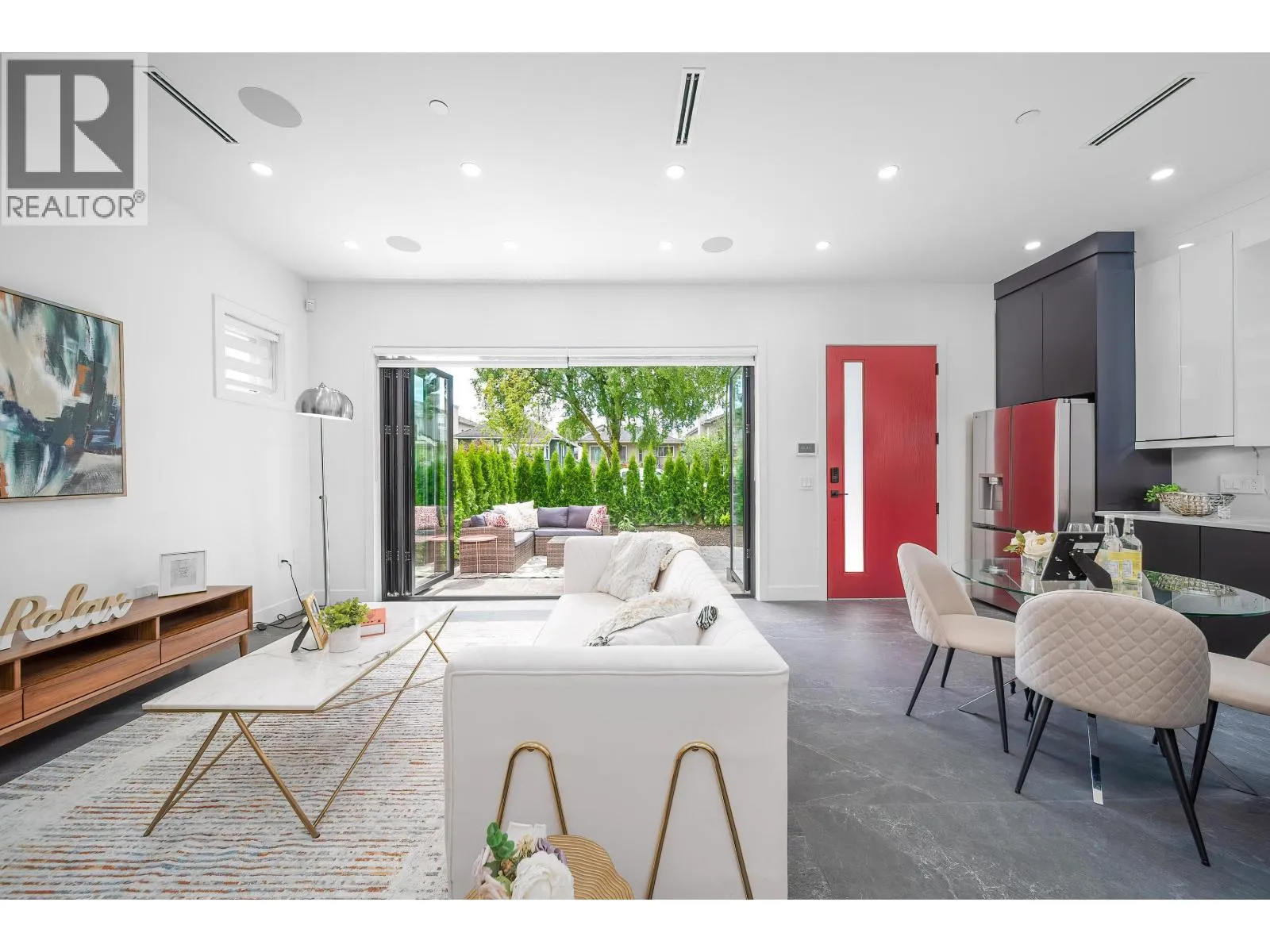 Welcome to this luxury 1/2 duplex in a prestigious neighborhood. This residence featuring 3 bedrooms plus a versatile office/den/flex room - ideal for families or professionals working from home. Thoughtfully designed with elegance and functionality, this home showcases exceptional quality, superb craftsmanship and a bright open concept layout with a built-in sound system for seamless modern living. Enjoy the impressive 10-foot ceilings on the main level, enhancing the airy and grand atmosphere. Step outside to a south-facing flat fenced yard and a private patio, perfect for relaxing or entertaining. Comfort is prioritized with A/C, HRV and radiant heat. Bonus: a huge crawl space provides generous storage. Just minutes to schools, parks, community center, library, shopping and SkyTrain. (id:27476)