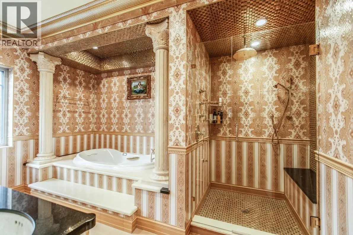 A truly world class mansion! Magnificent custom built quality home in most prestigious Shaughnessy location. This beautiful home sits on a 8848 SF lot (74x120), 5800 SF living space features 6 bedrooms & 7 bathrooms including 5 on suite large bedrooms. Owner customized built this home with all high end materials inside: western style living room has customized built vaulted ceiling with dry gold power material, made by Europe imported hardwood materials. Natural crystal chandelier. Chinese style living room featured very expensive gold phoebe handmade material vaulted ceiling with all hand painted drawings. Paintings are painted by natural stone color, very environmentally friendly & good for human's health. Close to all kinds of schools. easy access to DT Vancouver an more! Must see! (id:27476)