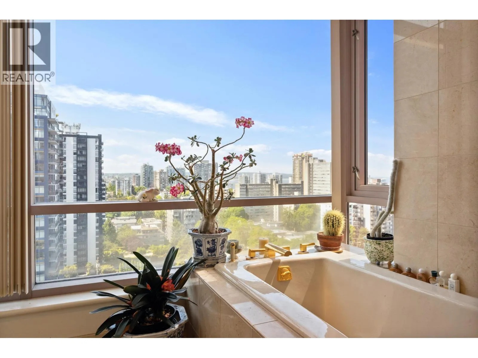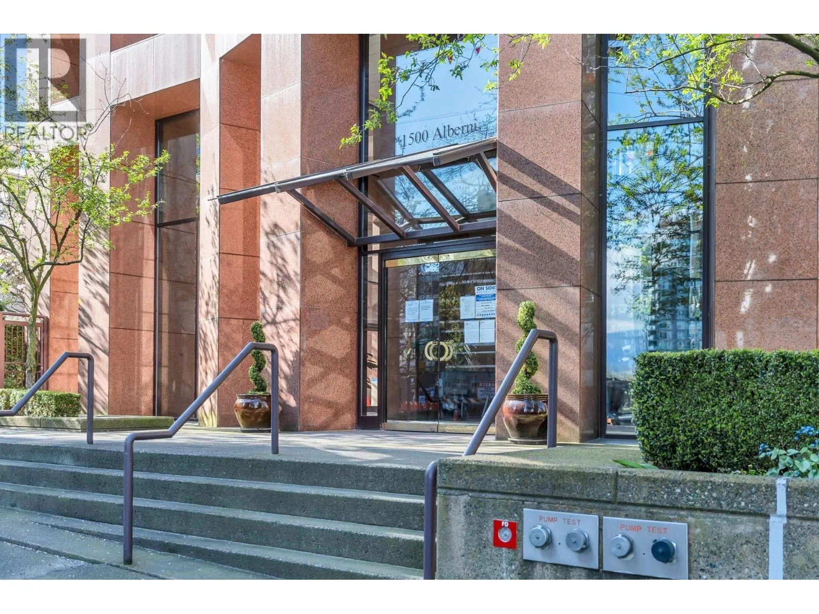 Favoured "C" unit with panoramic views to Coal Harbour, the North Shore Mountains, Stanley Park & English Bay. Designed by James Cheng, Architect, it stretches the full length of the West side of the building, The grand entrance features soaring ceilings, pink marble tilework & a full time concierge. Quality finishings include a Pogenpohl kitchen with granite countertops, wood and tile flooring, two ensuite bathrooms plus a powder room. Radiant electric heat is installed in the 9" ceilings. Relax in your bath while admiring the south facing ocean view. The den could easily be a third bedroom. Located a short walk to Robson, Denman, the Seawall along Coal Harbour & Lost Lagoon. An elegant home awaits you at the Residences at 1500 Alberni ! Bring your pet. Open Sat Nov 1st 2-4 (id:27476)